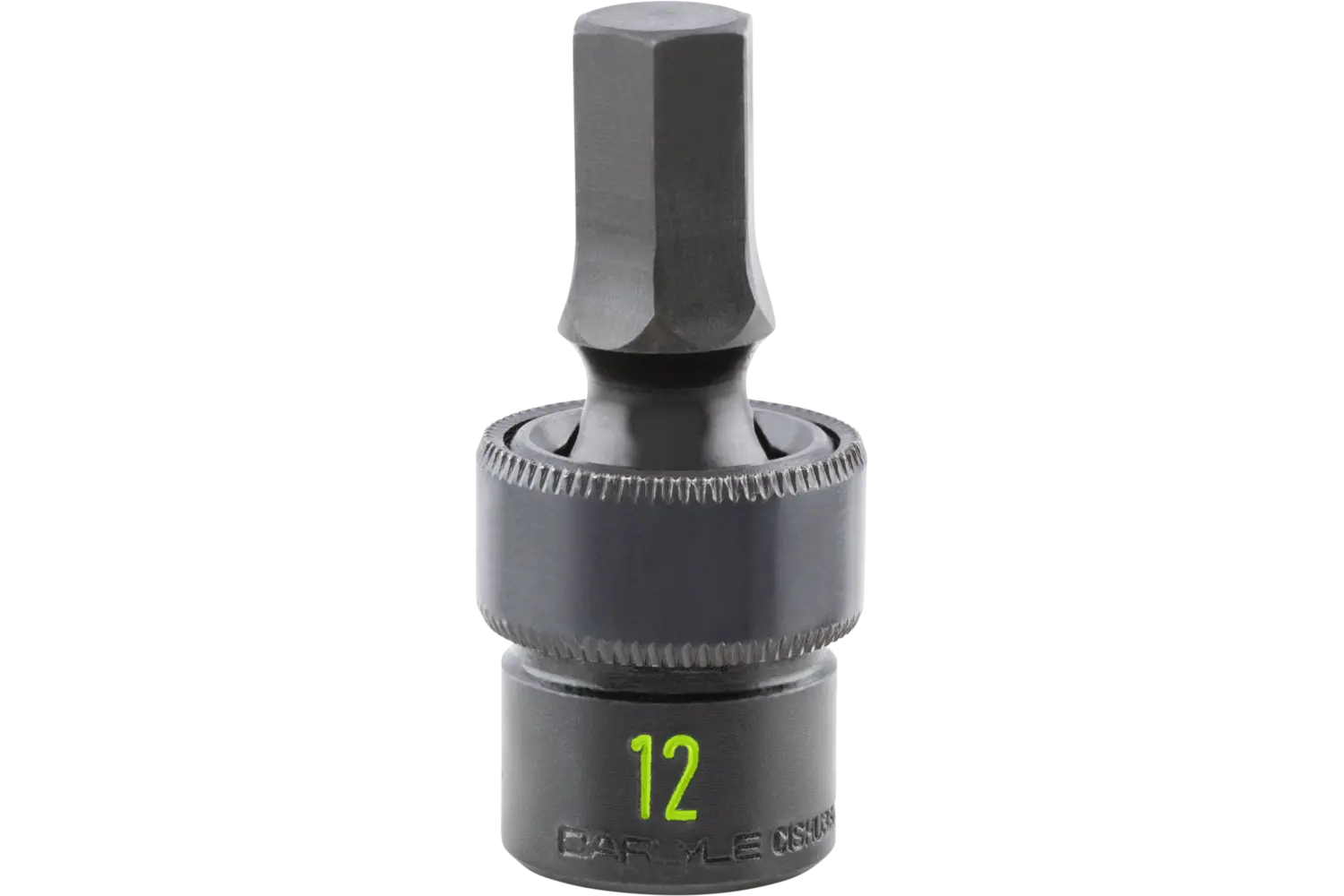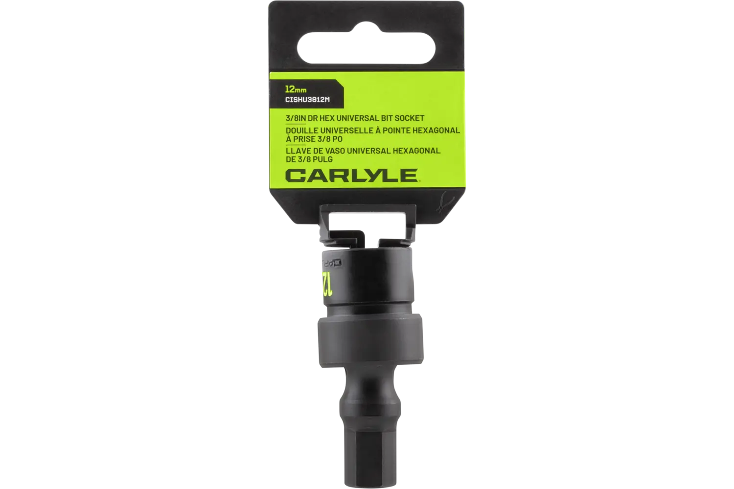 The Carlyle 3/8 in. Drive Universal Hex Bit Impact Socket - Metric is a durable tool for tough tasks. Made from chrome molybdenum alloy steel, it offers strength and reliability. The radius corner design enhances grip, while chamfered openings allow for quick fastening. Available in various sizes, this socket is built for demanding projects.