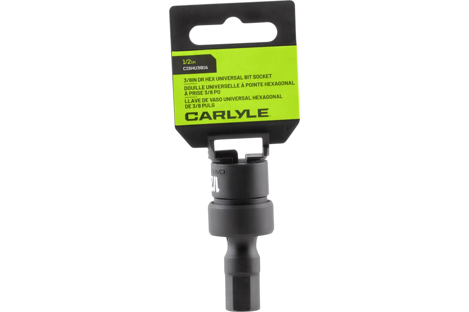The Carlyle 3/8 in. Drive Universal Hex Bit Impact Socket - SAE is a versatile tool for demanding tasks. Made from chrome molybdenum alloy steel, it provides strength and durability. The radius corner design reduces wear, while chamfered openings allow for quick fastening. Available in multiple sizes, this socket is a reliable choice for mechanics.