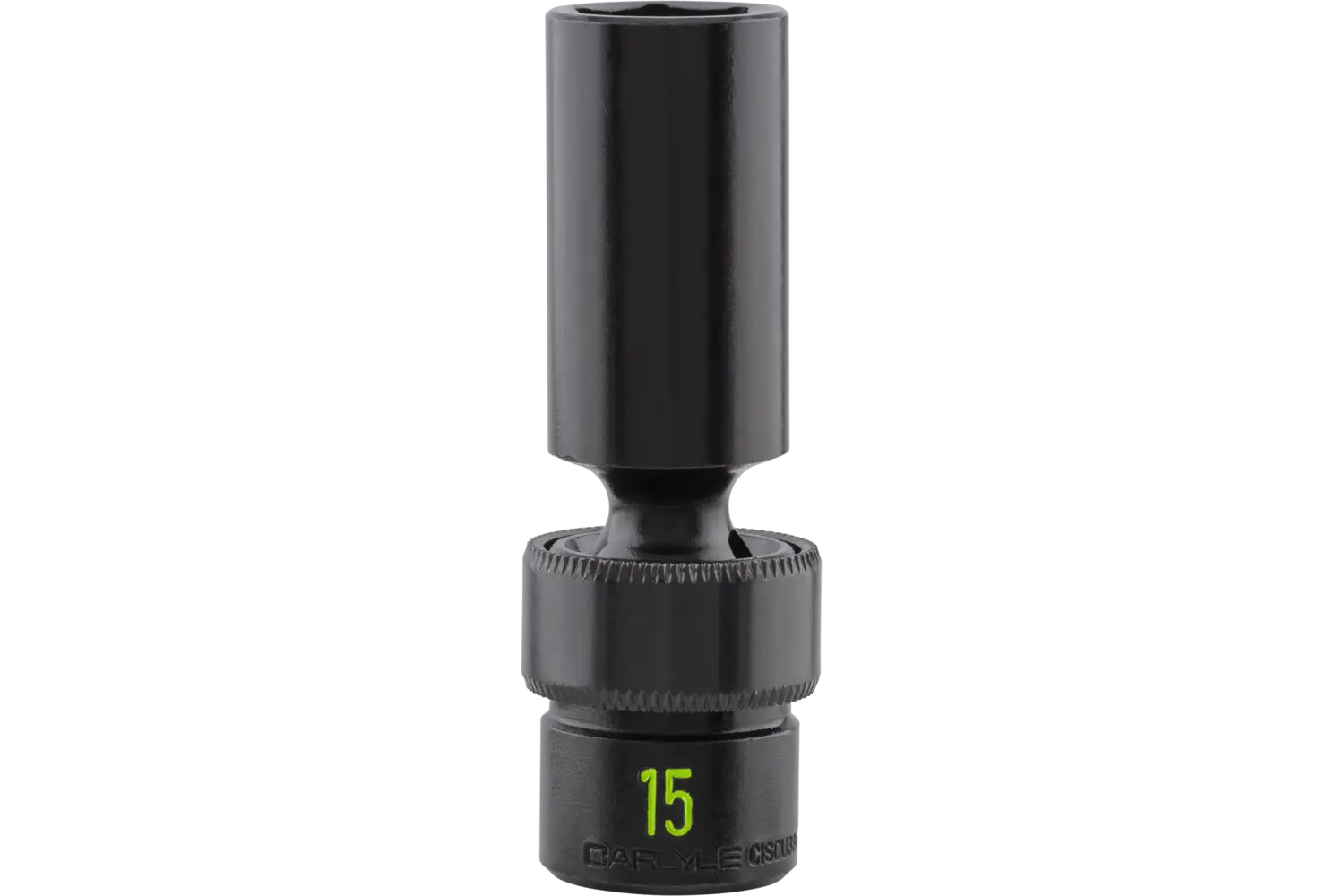 The Carlyle 3/8 in. Drive Universal Joint Impact Socket - Metric is a reliable tool for hard-to-reach areas. Crafted from chrome molybdenum alloy steel, it offers durability and precision. The radius corner design reduces wear, while chamfered openings allow for quick fastening. Finished with polished chrome, this socket is a practical choice for mechanics.