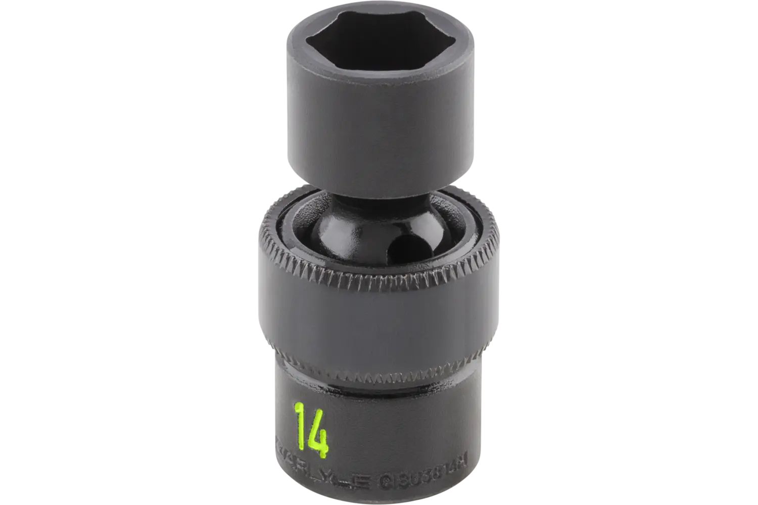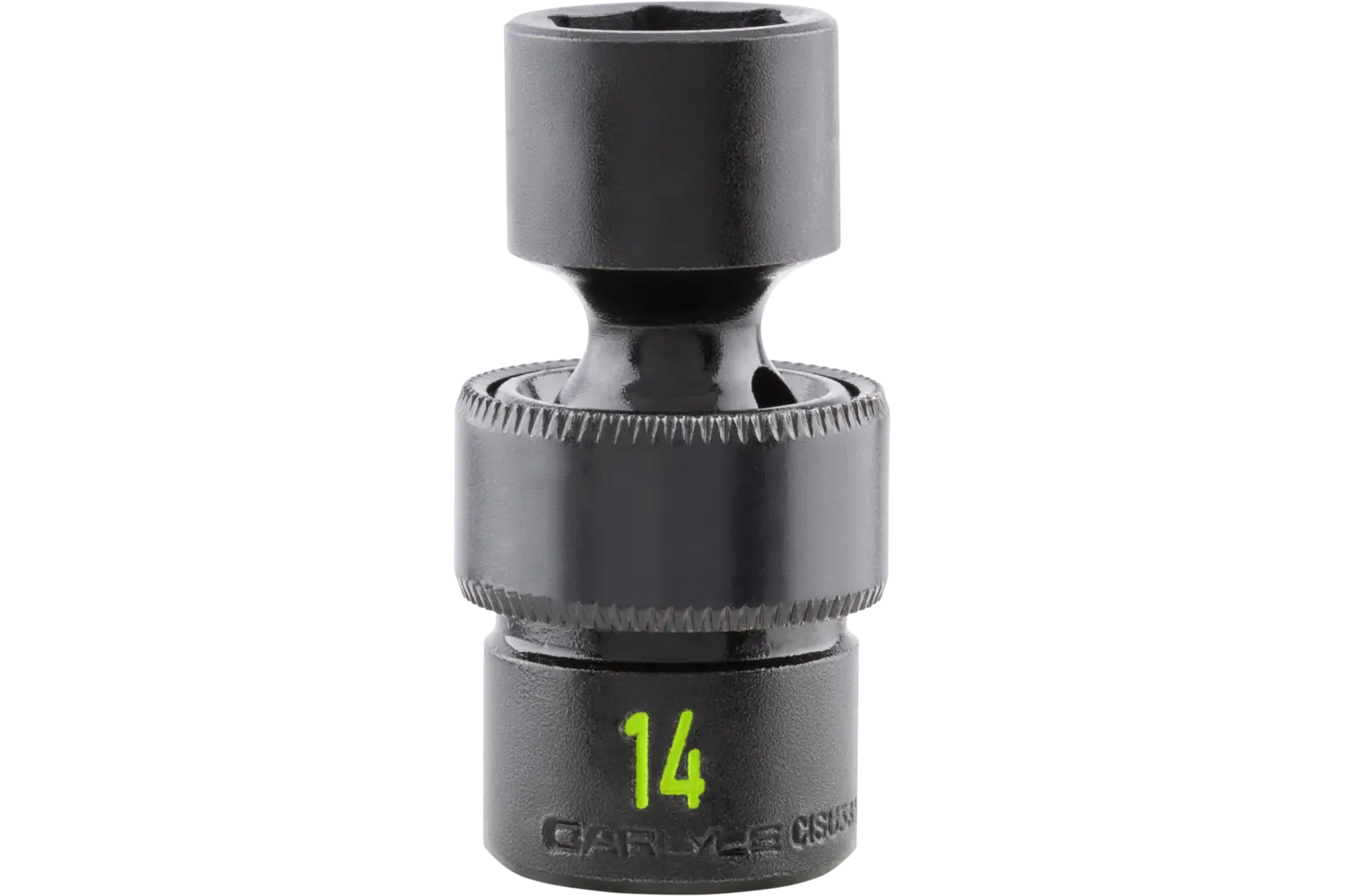 The Carlyle 3/8 in. Drive Universal Joint Impact Socket - Metric is a reliable tool for hard-to-reach areas. Crafted from chrome molybdenum alloy steel, it offers durability and precision. The radius corner design reduces wear, while chamfered openings allow for quick fastening. Finished with polished chrome, this socket is a practical choice for mechanics.