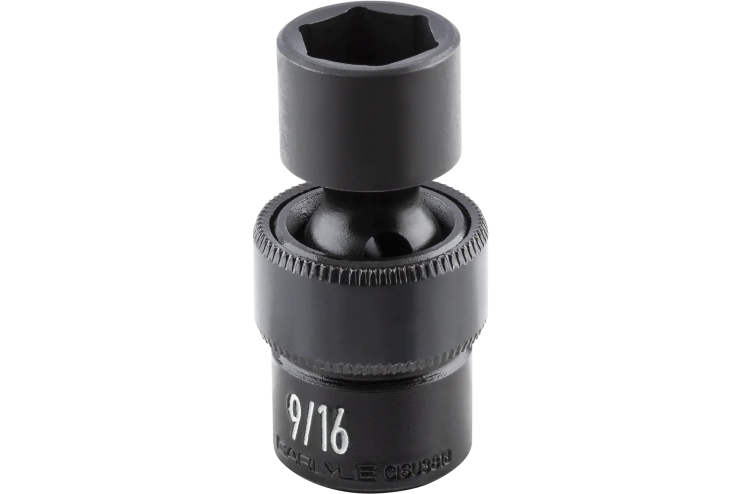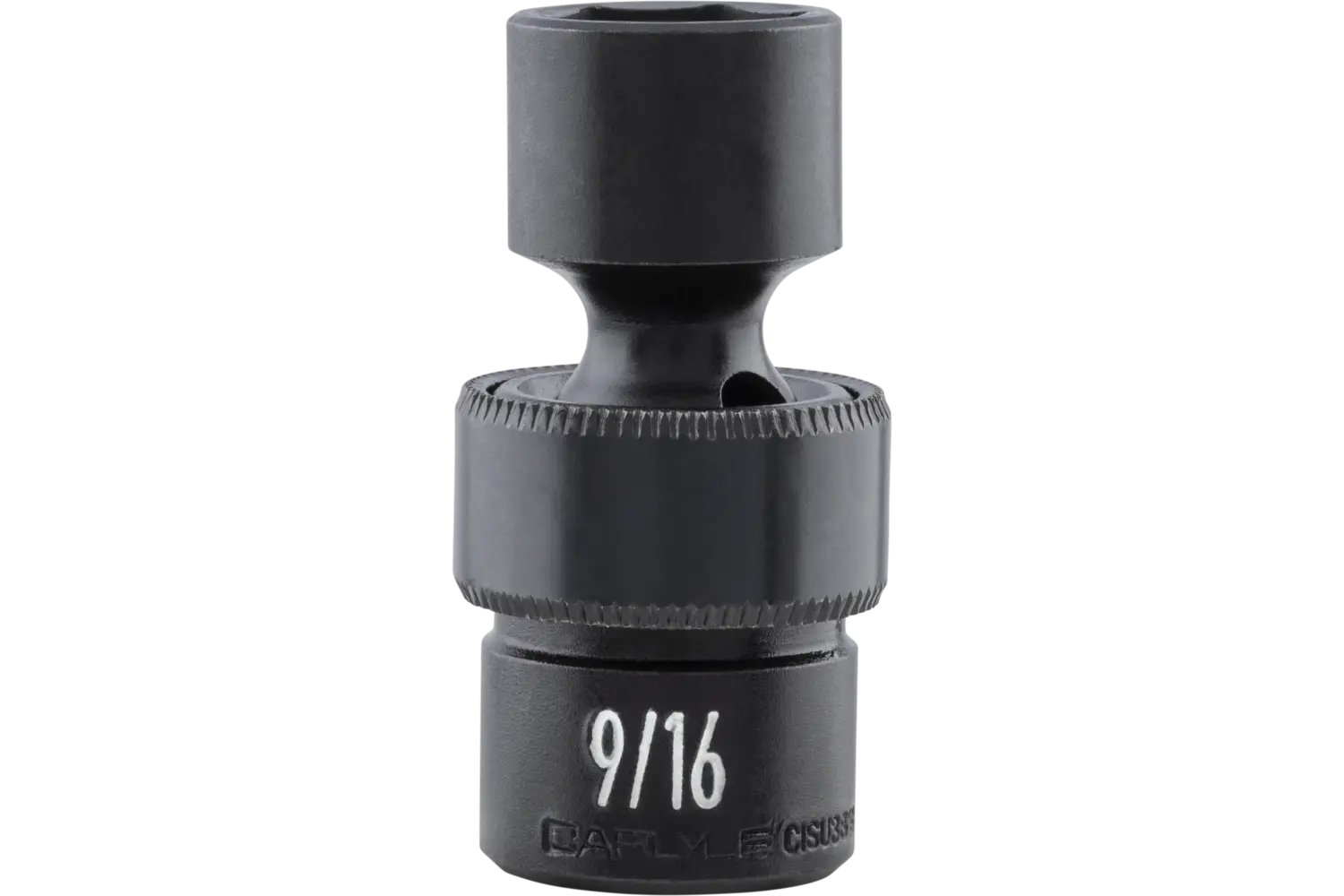 The Carlyle 3/8 in. Drive Universal Joint Impact Socket - SAE is a versatile tool for accessing tight spaces. Made from chrome molybdenum alloy steel, it offers strength and durability. The radius corner design enhances grip, while chamfered openings allow for quick fastening. With a polished chrome finish, this socket is built for demanding tasks.