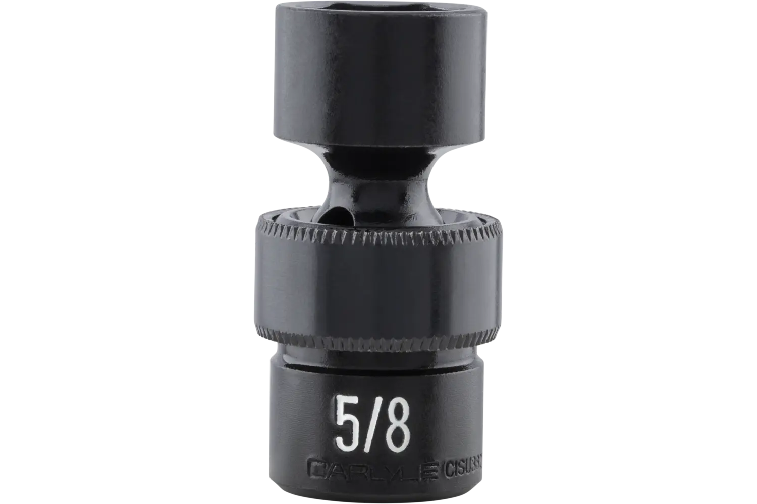 The Carlyle 3/8 in. Drive Universal Joint Impact Socket - SAE is a versatile tool for accessing tight spaces. Made from chrome molybdenum alloy steel, it offers strength and durability. The radius corner design enhances grip, while chamfered openings allow for quick fastening. With a polished chrome finish, this socket is built for demanding tasks.