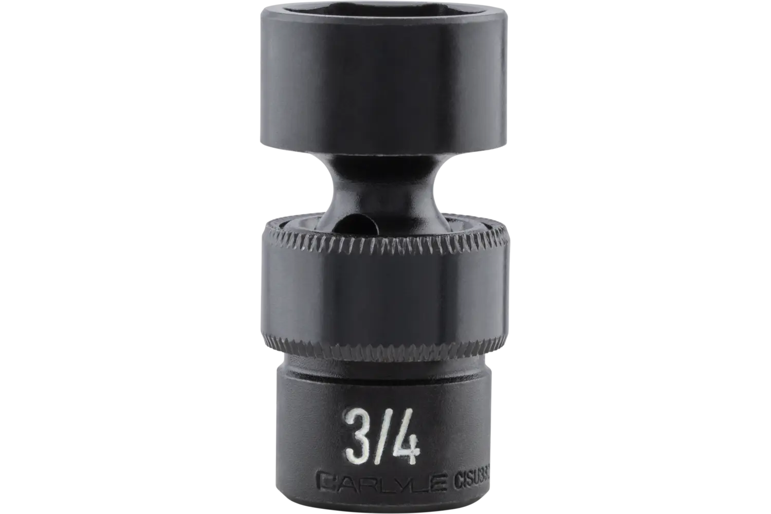 The Carlyle 3/8 in. Drive Universal Joint Impact Socket - SAE is a versatile tool for accessing tight spaces. Made from chrome molybdenum alloy steel, it offers strength and durability. The radius corner design enhances grip, while chamfered openings allow for quick fastening. With a polished chrome finish, this socket is built for demanding tasks.