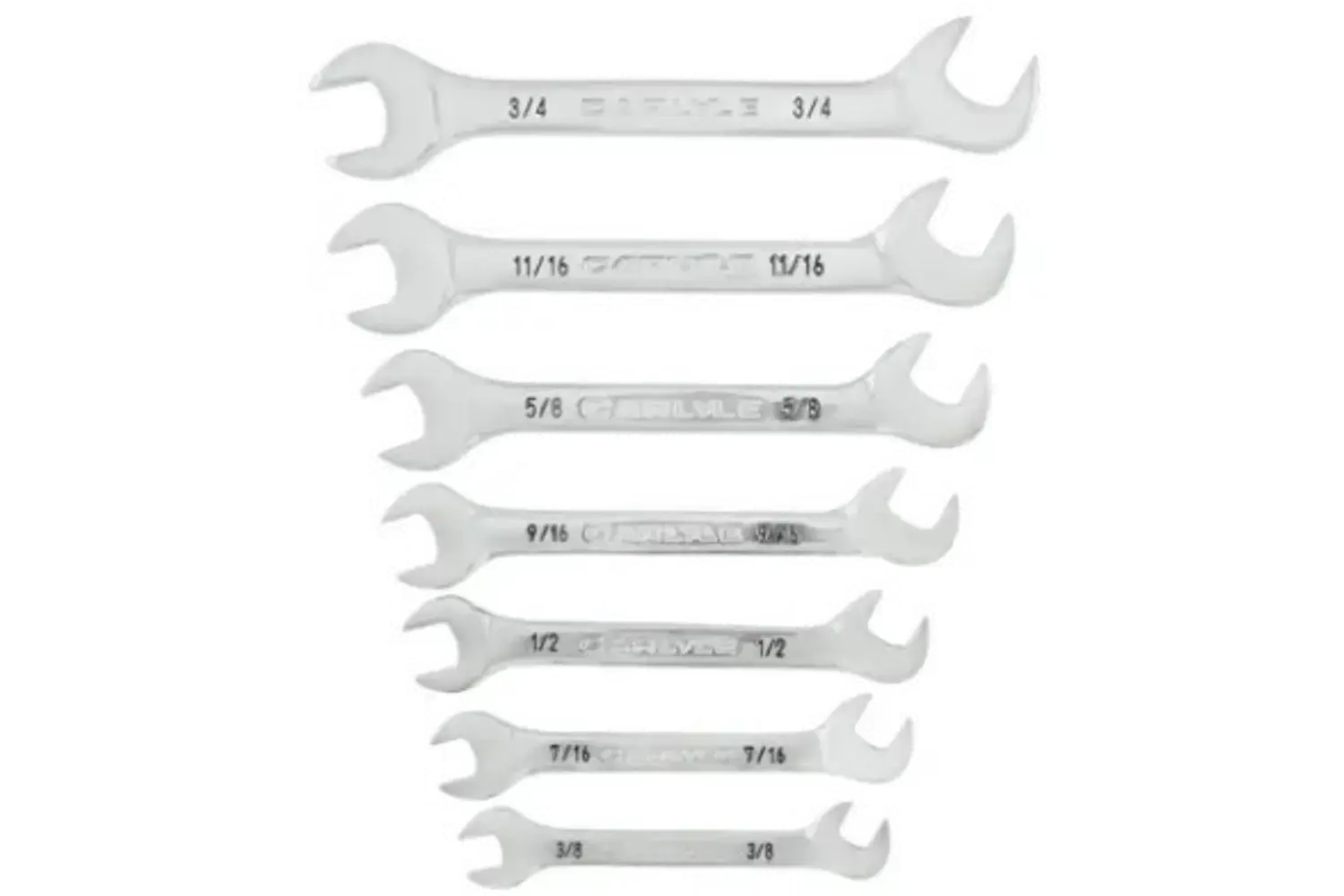 The Carlyle 7 Pc Metric Double Open End Wrench Set stands out with rugged durability thanks to heat-treated and tempered construction that holds up to heavy shop use. Each wrench features a polished chrome finish that resists corrosion and sizes etched on the side for quick, hassle-free identification. Double one-size openings deliver versatile grip, while the angled design gives greater access to tight spaces where precision counts. Available in both SAE and Metric sizes, including popular options from 7/16" up to 3/4", this set is built tough to handle whatever job demands without backing down.