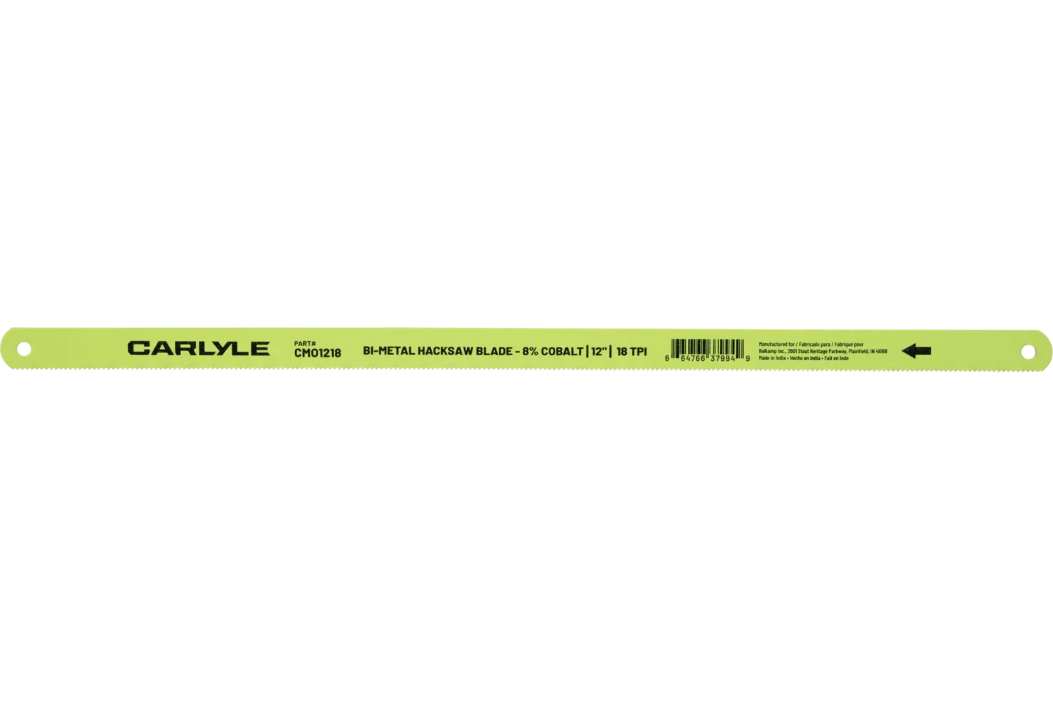 The Carlyle Bi-Metal Cobalt Hacksaw Blade is the ultimate tool for those who thrive on tackling tough jobs with precision and speed. Engineered to handle serious action, this blade achieves a cutting action that's lightning-fast. Perfect for flush cutting tasks, it can be mounted at a 45° angle, while its rugged aluminum die-cast handle and tubular steel frame provide unmatched durability. Designed for versatility, it accommodates both 10-inch and 12-inch blades, making it an essential addition to any pro mechanic or DIY enthusiast's toolkit.