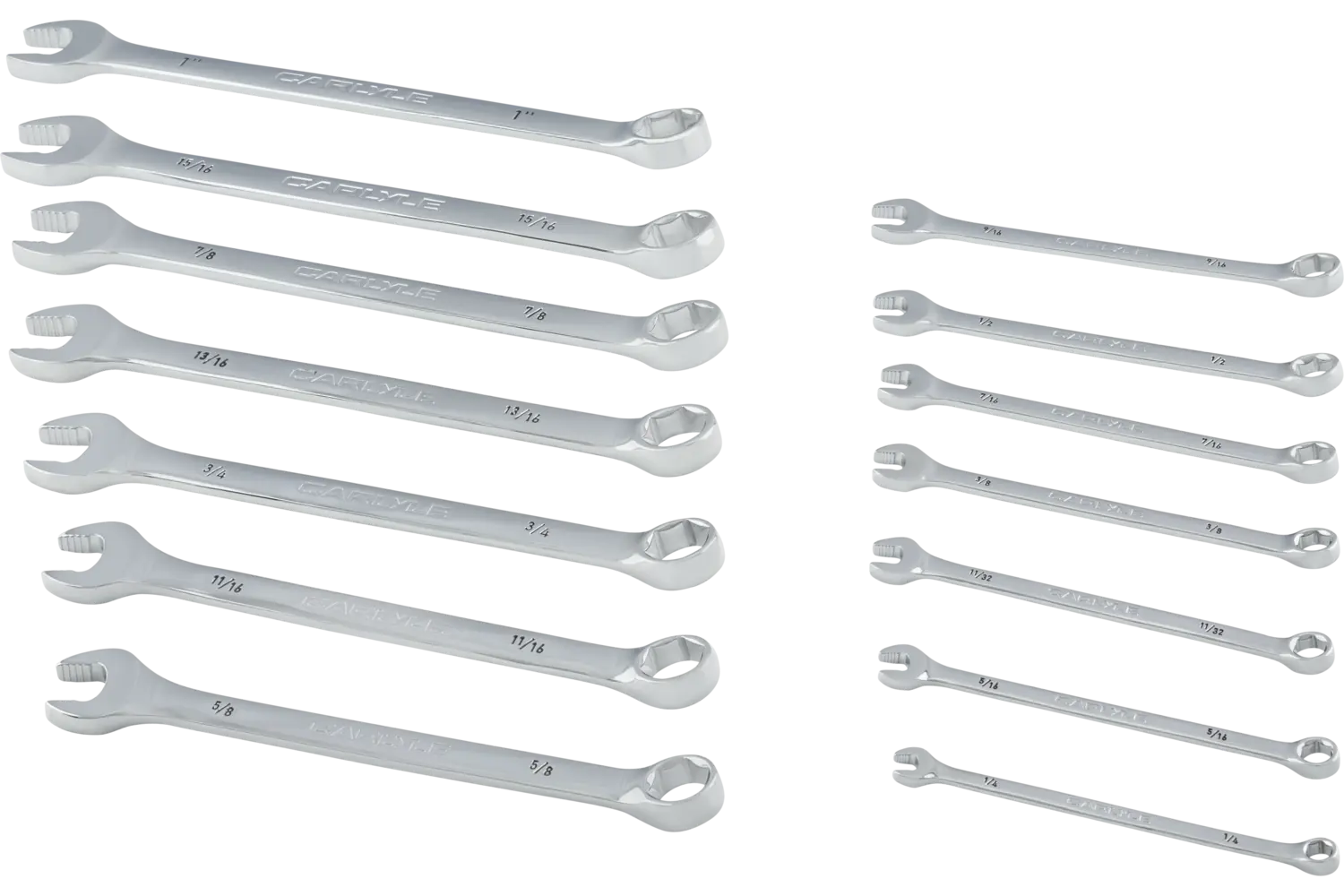 The Carlyle Combination End Wrench Set — SAE is a durable and precise toolset for automotive tasks. Its robust construction offers strength, while the polished chrome finish resists rust. This set is a practical choice for mechanics and DIY enthusiasts.