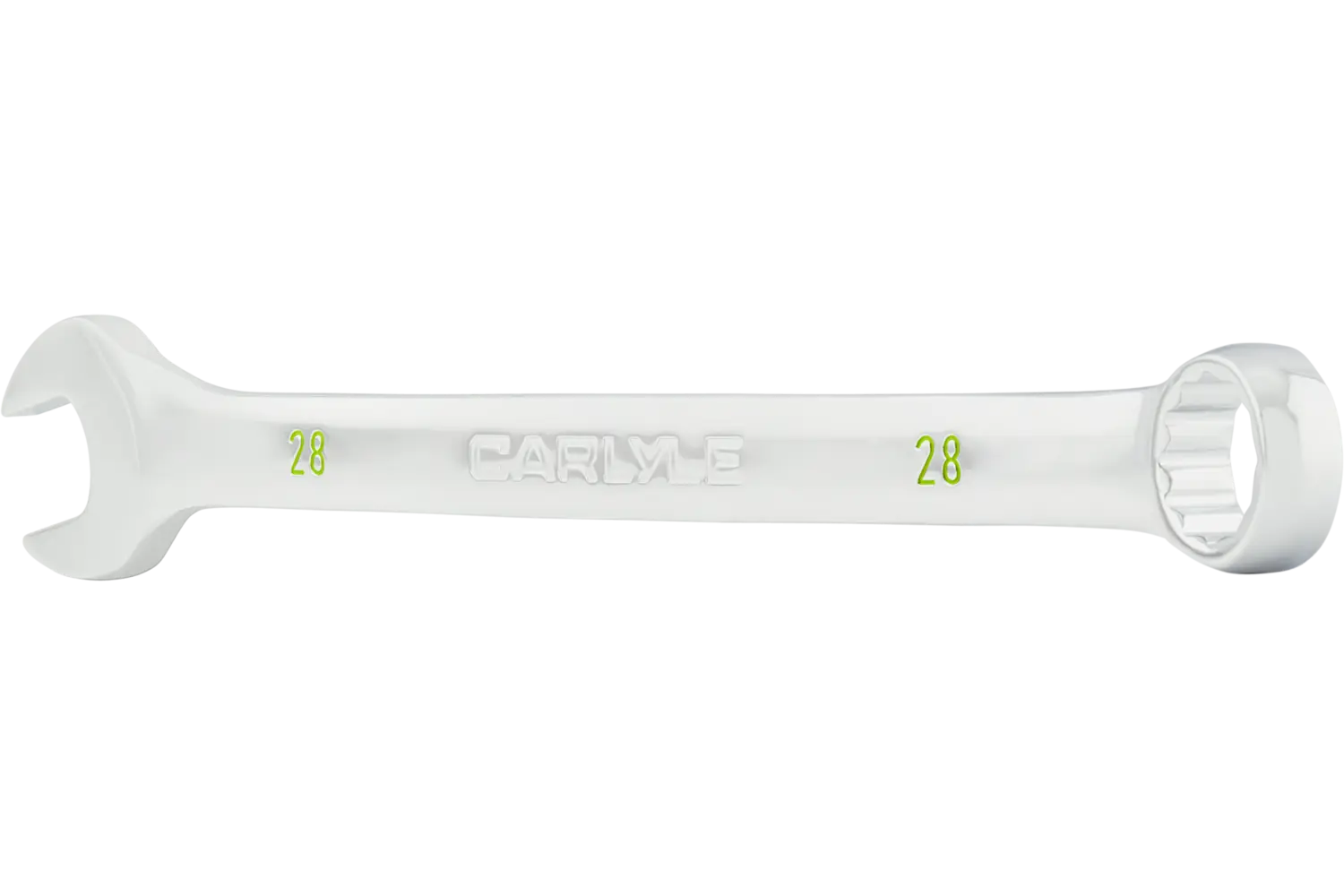 Gear up for any challenge with Carlyle Combination Wrenches - Metric, the ultimate choice for pro mechanics and DIY enthusiasts who demand toughness and ruggedness. These wrenches boast a highly polished chrome-plated finish that fiercely resists rust, while the 12-point, 15° offset box ends deliver precise fastener control, making them indispensable for any task. The non-slip jaw design cranks up the torque and turning power, perfect for those tough applications that require serious effort. Crafted from chrome vanadium high alloy steel, each wrench undergoes a precision hot-forging process with special heat treatment, providing maximum strength and durability. Available in a range of styles, from 6-point to 12-point, and options like 15° angled stubby or long beam non-slip, these wrenches cover sizes from 6mm to 24mm, offering versatility for every job. Backed by an unwavering commitment to quality, these wrenches are the technician's first choice for getting the job done right.