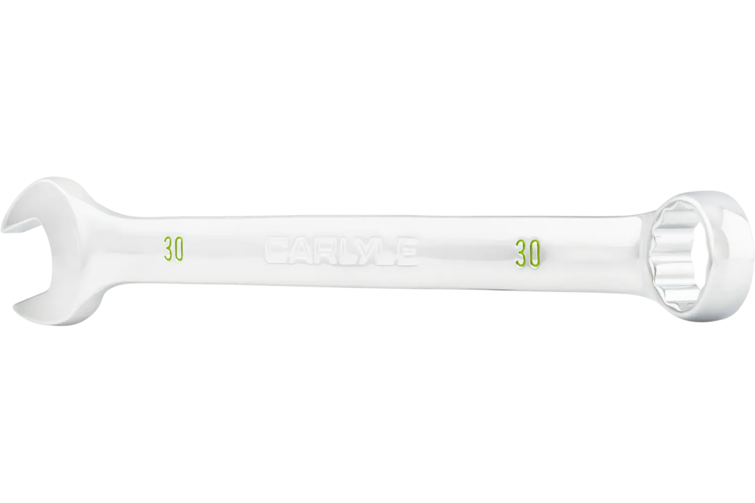 Gear up for any challenge with Carlyle Combination Wrenches - Metric, the ultimate choice for pro mechanics and DIY enthusiasts who demand toughness and ruggedness. These wrenches boast a highly polished chrome-plated finish that fiercely resists rust, while the 12-point, 15° offset box ends deliver precise fastener control, making them indispensable for any task. The non-slip jaw design cranks up the torque and turning power, perfect for those tough applications that require serious effort. Crafted from chrome vanadium high alloy steel, each wrench undergoes a precision hot-forging process with special heat treatment, providing maximum strength and durability. Available in a range of styles, from 6-point to 12-point, and options like 15° angled stubby or long beam non-slip, these wrenches cover sizes from 6mm to 24mm, offering versatility for every job. Backed by an unwavering commitment to quality, these wrenches are the technician's first choice for getting the job done right.