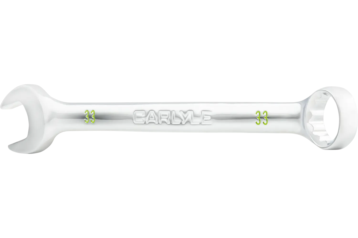 Gear up for any challenge with Carlyle Combination Wrenches - Metric, the ultimate choice for pro mechanics and DIY enthusiasts who demand toughness and ruggedness. These wrenches boast a highly polished chrome-plated finish that fiercely resists rust, while the 12-point, 15° offset box ends deliver precise fastener control, making them indispensable for any task. The non-slip jaw design cranks up the torque and turning power, perfect for those tough applications that require serious effort. Crafted from chrome vanadium high alloy steel, each wrench undergoes a precision hot-forging process with special heat treatment, providing maximum strength and durability. Available in a range of styles, from 6-point to 12-point, and options like 15° angled stubby or long beam non-slip, these wrenches cover sizes from 6mm to 24mm, offering versatility for every job. Backed by an unwavering commitment to quality, these wrenches are the technician's first choice for getting the job done right.