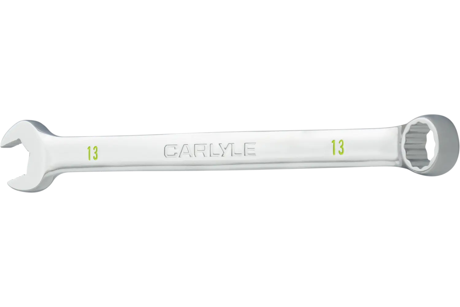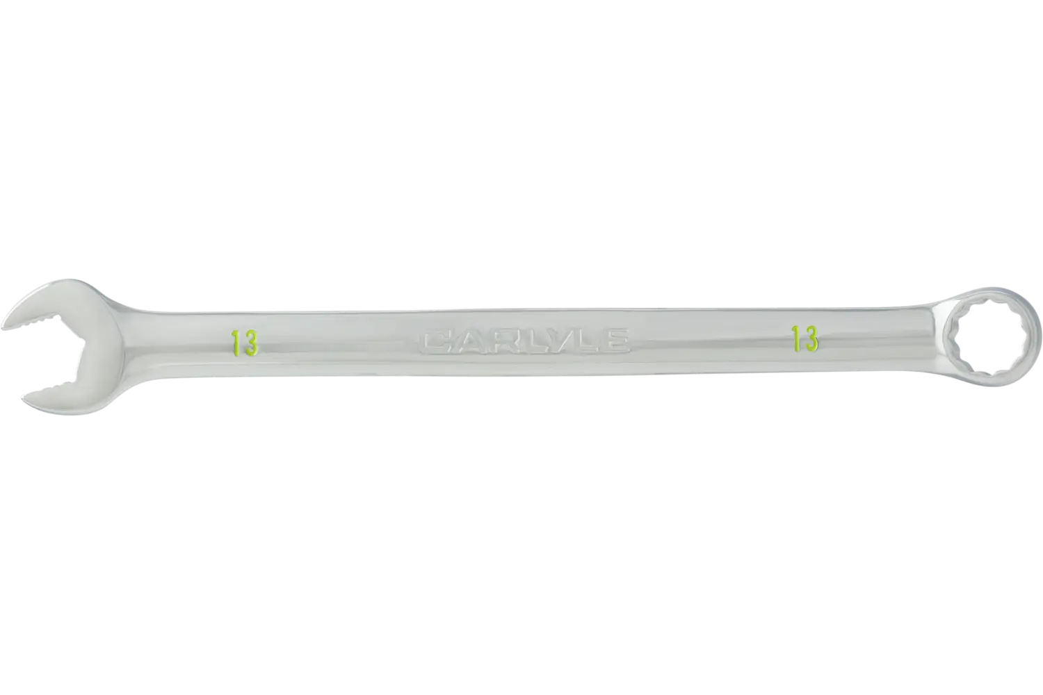 Gear up for any challenge with Carlyle Combination Wrenches - Metric, the ultimate choice for pro mechanics and DIY enthusiasts who demand toughness and ruggedness. These wrenches boast a highly polished chrome-plated finish that fiercely resists rust, while the 12-point, 15° offset box ends deliver precise fastener control, making them indispensable for any task. The non-slip jaw design cranks up the torque and turning power, perfect for those tough applications that require serious effort. Crafted from chrome vanadium high alloy steel, each wrench undergoes a precision hot-forging process with special heat treatment, providing maximum strength and durability. Available in a range of styles, from 6-point to 12-point, and options like 15° angled stubby or long beam non-slip, these wrenches cover sizes from 6mm to 24mm, offering versatility for every job. Backed by an unwavering commitment to quality, these wrenches are the technician's first choice for getting the job done right.