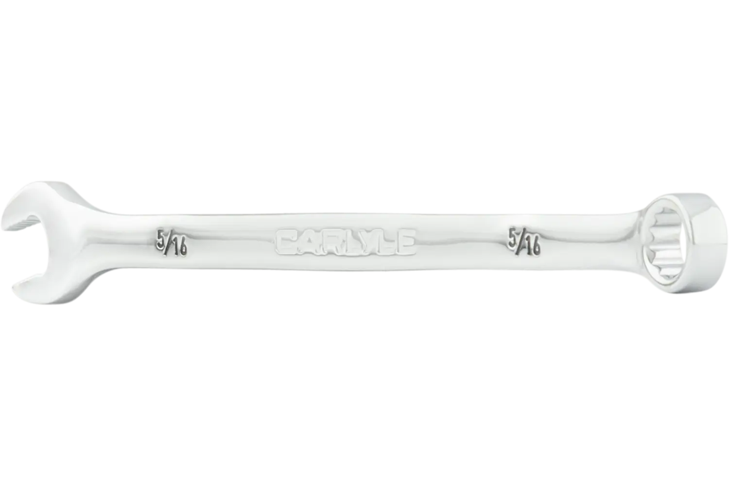 Tackle any challenge with Carlyle Combination Wrenches - SAE, designed for professional mechanics and DIYers seeking tools that are tough and reliable. Featuring a highly polished chrome-plated finish, these wrenches resist rust and maintain their sleek look, no matter the job. The 12-point, 15° offset box ends provide precise fastener control and improved access in tight spaces, while the non-slip jaw design enhances torque and turning power for demanding tasks. Built from chrome vanadium high alloy steel, each wrench is precision hot-forged and heat-treated to deliver lasting durability and strength. Available in styles like 6-point, 12-point, stubby, or long beam, these wrenches come in a variety of sizes to meet your every need. Built for versatility and reliability, they are the perfect tools to help you tackle the toughest projects with confidence.