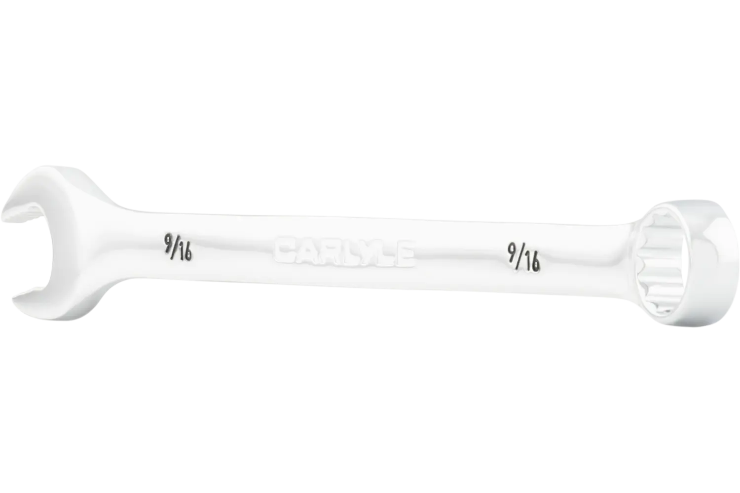 Tackle any challenge with Carlyle Combination Wrenches - SAE, designed for professional mechanics and DIYers seeking tools that are tough and reliable. Featuring a highly polished chrome-plated finish, these wrenches resist rust and maintain their sleek look, no matter the job. The 12-point, 15° offset box ends provide precise fastener control and improved access in tight spaces, while the non-slip jaw design enhances torque and turning power for demanding tasks. Built from chrome vanadium high alloy steel, each wrench is precision hot-forged and heat-treated to deliver lasting durability and strength. Available in styles like 6-point, 12-point, stubby, or long beam, these wrenches come in a variety of sizes to meet your every need. Built for versatility and reliability, they are the perfect tools to help you tackle the toughest projects with confidence.