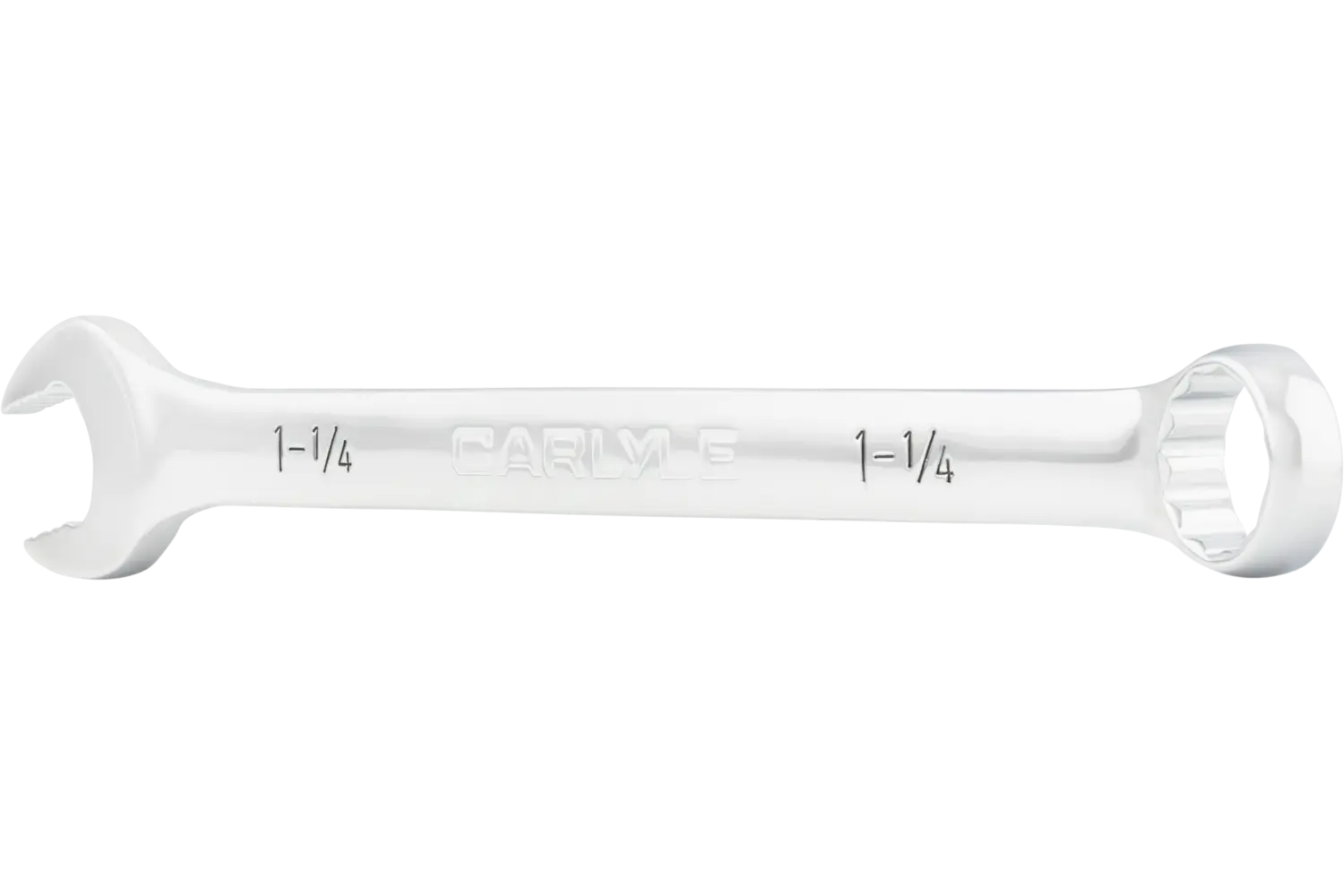 Tackle any challenge with Carlyle Combination Wrenches - SAE, designed for professional mechanics and DIYers seeking tools that are tough and reliable. Featuring a highly polished chrome-plated finish, these wrenches resist rust and maintain their sleek look, no matter the job. The 12-point, 15° offset box ends provide precise fastener control and improved access in tight spaces, while the non-slip jaw design enhances torque and turning power for demanding tasks. Built from chrome vanadium high alloy steel, each wrench is precision hot-forged and heat-treated to deliver lasting durability and strength. Available in styles like 6-point, 12-point, stubby, or long beam, these wrenches come in a variety of sizes to meet your every need. Built for versatility and reliability, they are the perfect tools to help you tackle the toughest projects with confidence.