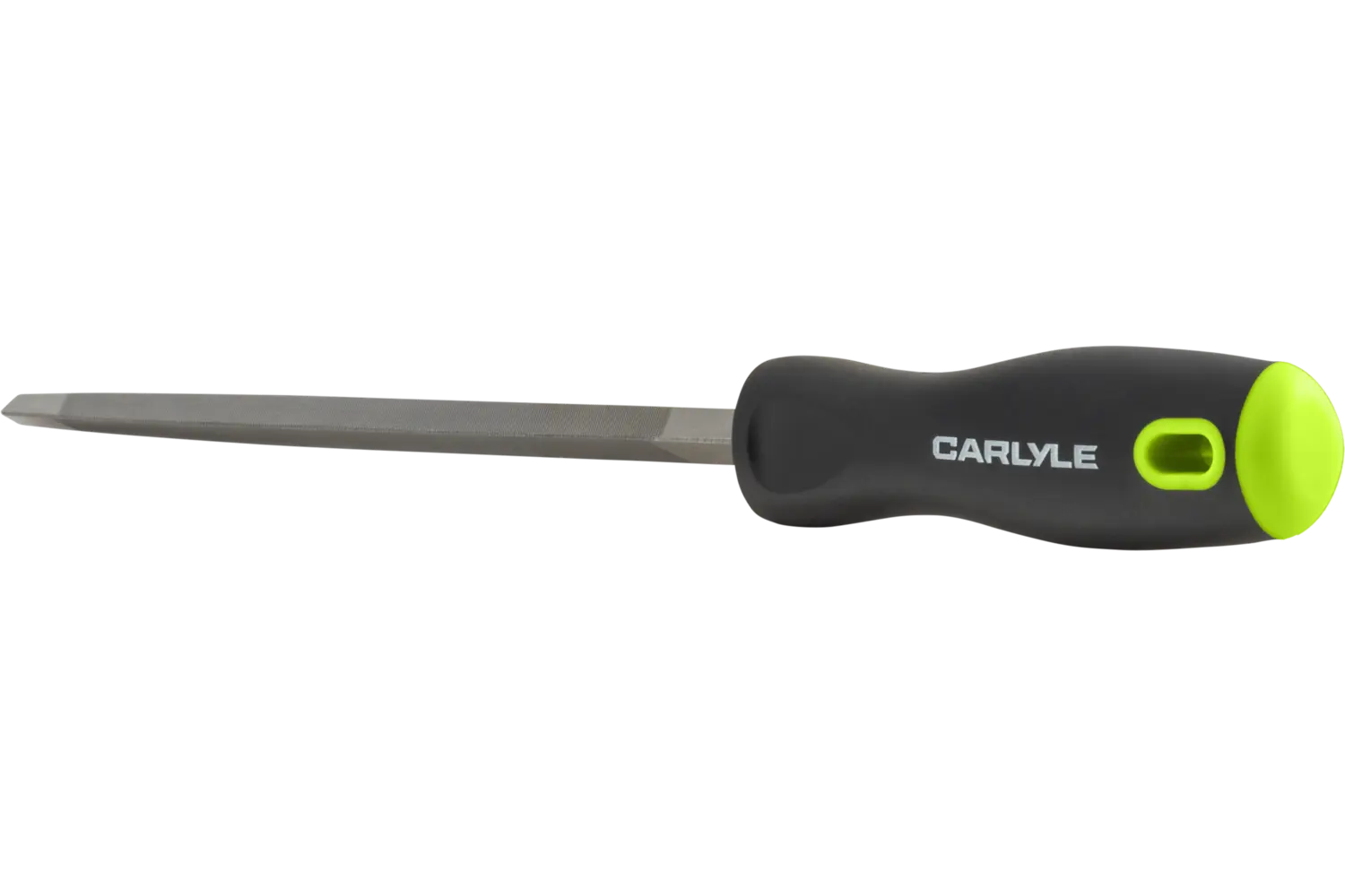 The Carlyle General Purpose File with Handle is a versatile tool for filing, rounding, and other shop tasks. Available in 8" or 7" lengths and styles such as Half Round, Mill Bastard, Round, or Slip Taper, this file is suitable for a variety of applications. The comfortable handle provides a secure grip for better control during use. Built for durability, this file is a reliable choice for mechanics and DIY enthusiasts.