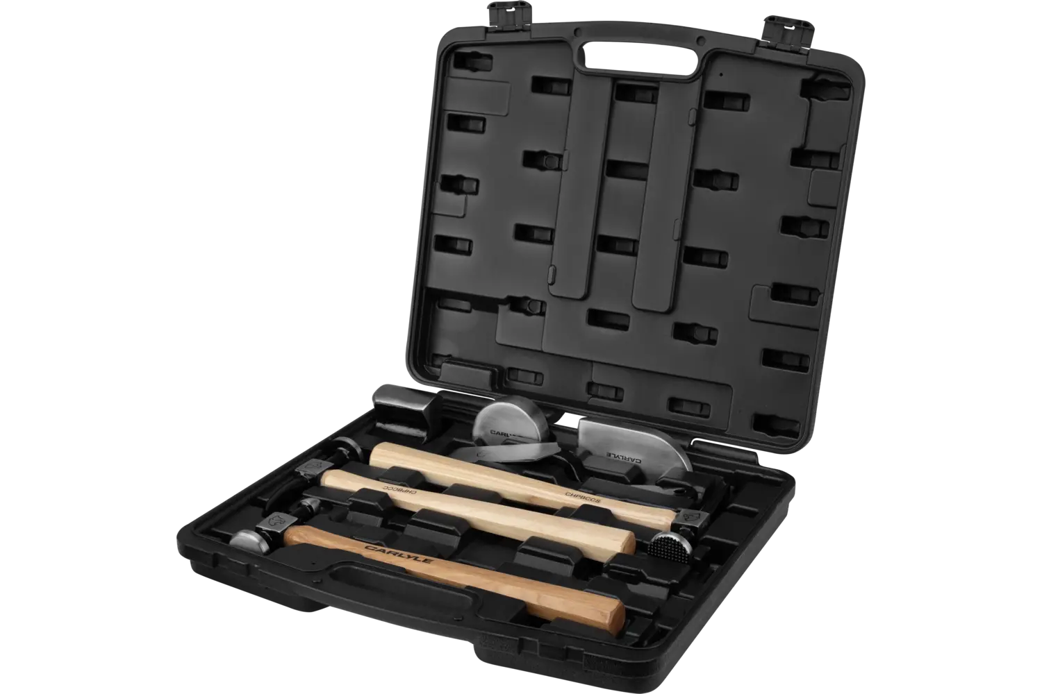 The Carlyle Hammer & Fender Set is built for pros and DIYers who demand rugged tools that deliver precision and durability. Featuring genuine hickory wood handles with a lacquer finish for a comfortable grip and long-lasting performance, this set is ready to handle the toughest bodywork jobs. The 4-piece set includes a utility pick, general-purpose pick, cross chisel curved, and door skin hammer, while the 7-piece set adds even more versatility to your toolbox. Packaged in a durable blow-molded case to keep everything secure and organized, this set is the ultimate choice for tackling fender repairs and metal shaping with confidence.