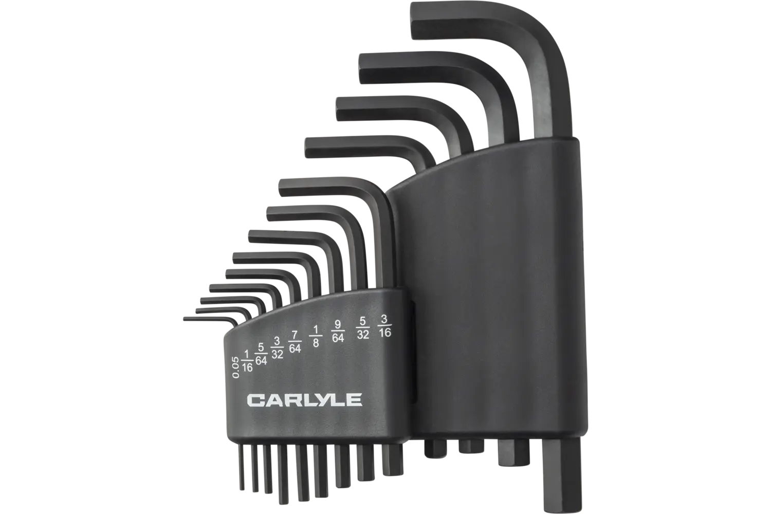 Tackle tough tasks with the Carlyle SAE Hex Key Set, designed for strength and precision in every job. Constructed from durable chrome vanadium steel with a black phosphate coating, these keys resist rust and wear even in demanding environments. Featuring long hex arms for hard-to-reach areas and short arms for tight spaces, this set offers maximum versatility. The ergonomic comfort grip handles, made from polypropylene and thermoplastic rubber, provide superior control and reduce fatigue during extended use. Each set is color-coded for easy identification and includes foldable handles for compact storage. Available in options like the 9-Piece Folding Short Arm Set, 13-Piece Long Arm Set, or 10-Piece T-Handle Set, these tools are built to handle the toughest challenges with confidence.