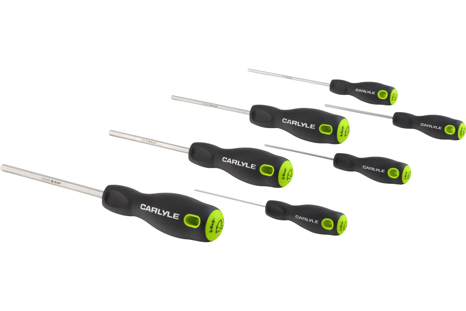 Evaluate the unmatched power of the Carlyle Hex Screwdriver Set - Metric, the ultimate tools engineered for mechanics who demand nothing less than perfection. Designed with a full hex shank, these screwdrivers provide increased torque, letting you tackle even the most stubborn fasteners with ease. These screwdrivers are crafted from SVCM special alloy material, delivering unmatched durability and a longer lifespan to dominate the toughest jobs. With magnetic tips that lock onto fasteners like a vice, you'll experience unparalleled control and efficiency during every task. The comfort grip handles are built for all-day use, reducing fatigue while giving you a firm, confident hold, and the bolster hole in the handle provides an extra boost of torque when you need it most. The satin finish not only adds a sleek, professional look, but also fortifies the tools against wear and tear, keeping them battle-ready for years to come. Whether you choose the 7-piece Hex Screwdriver Set or the 5-piece Precision Hex Screwdriver Set, you're arming yourself with tools that are precision-engineered to handle the harshest conditions.