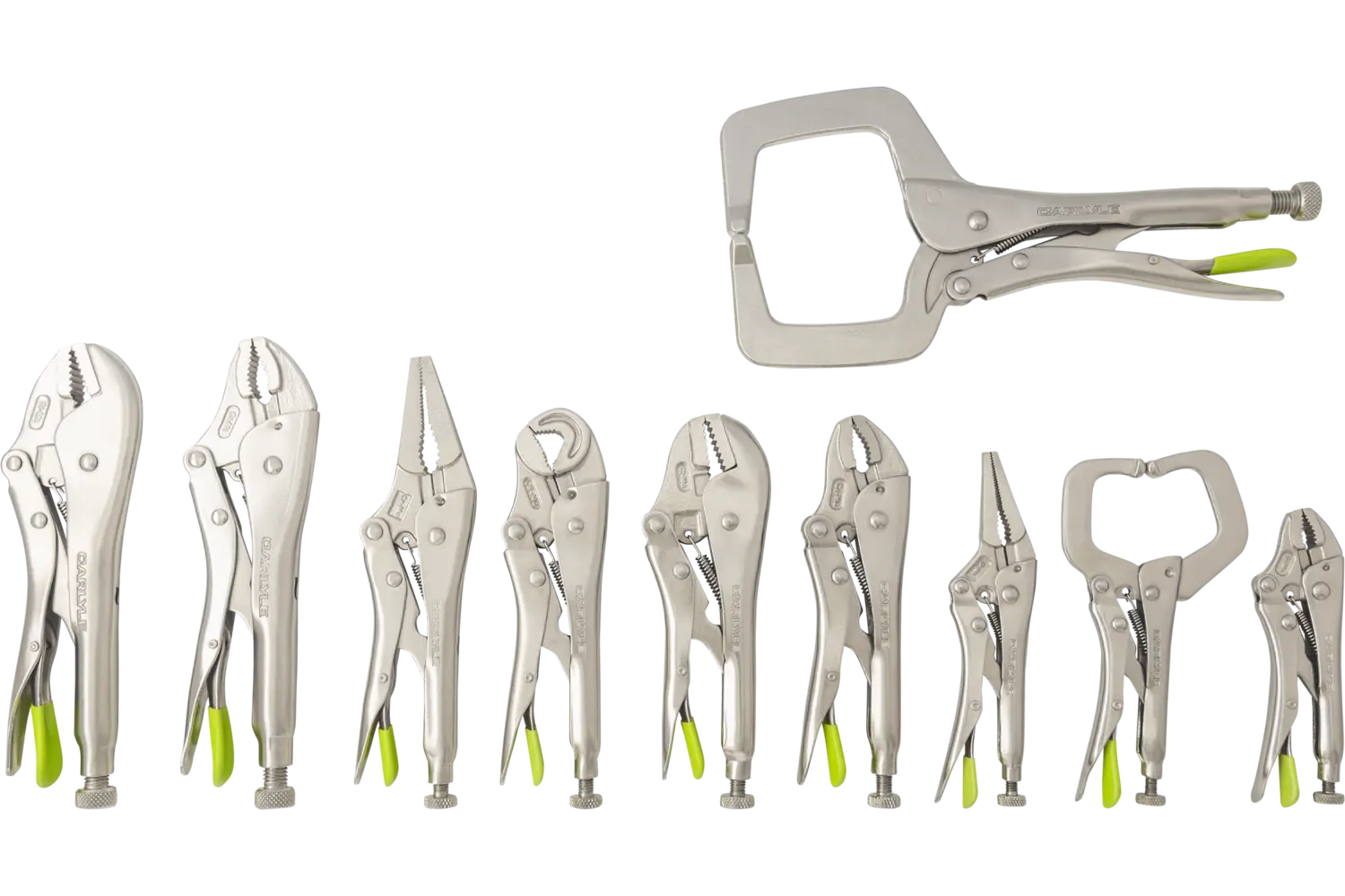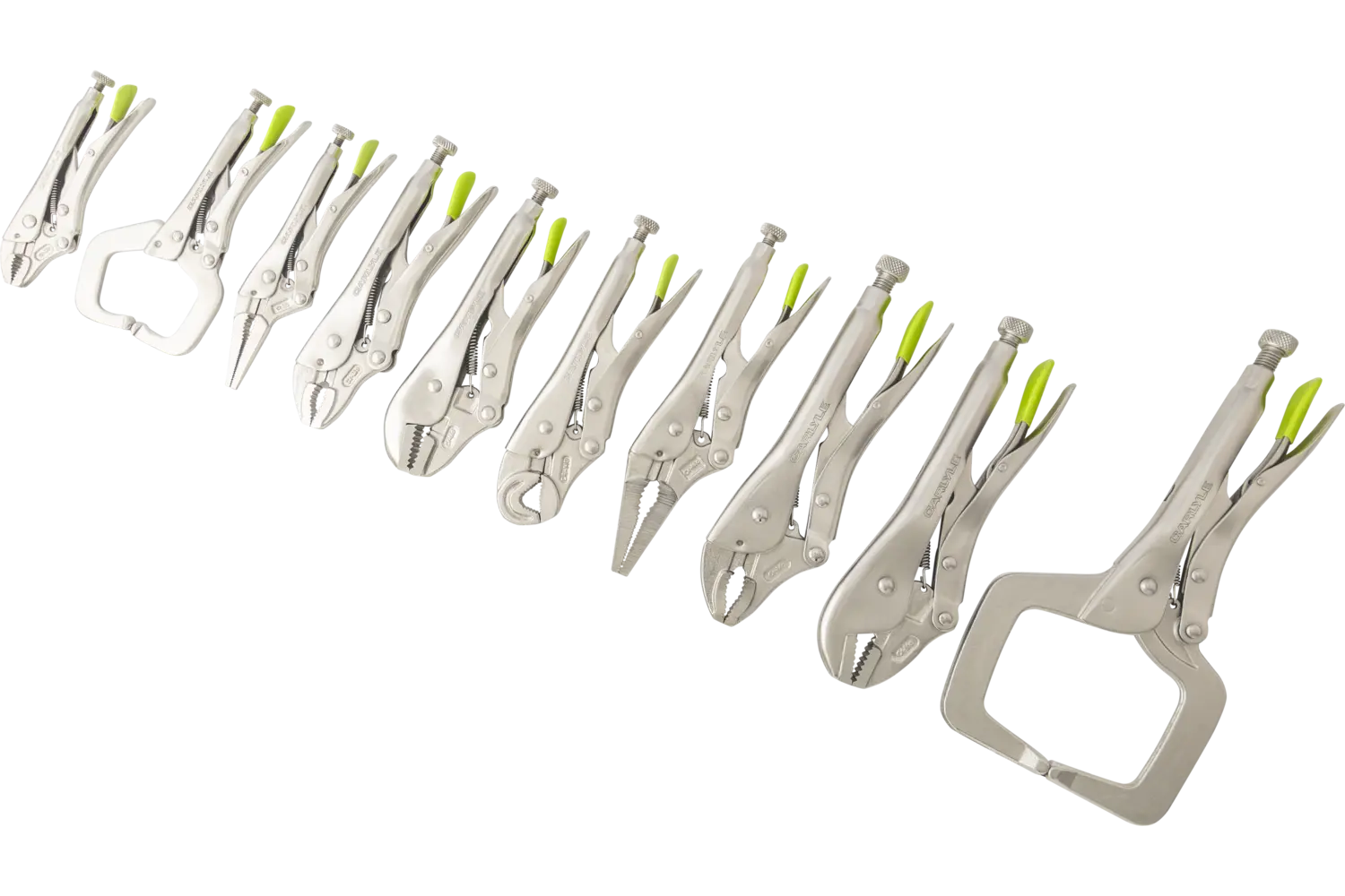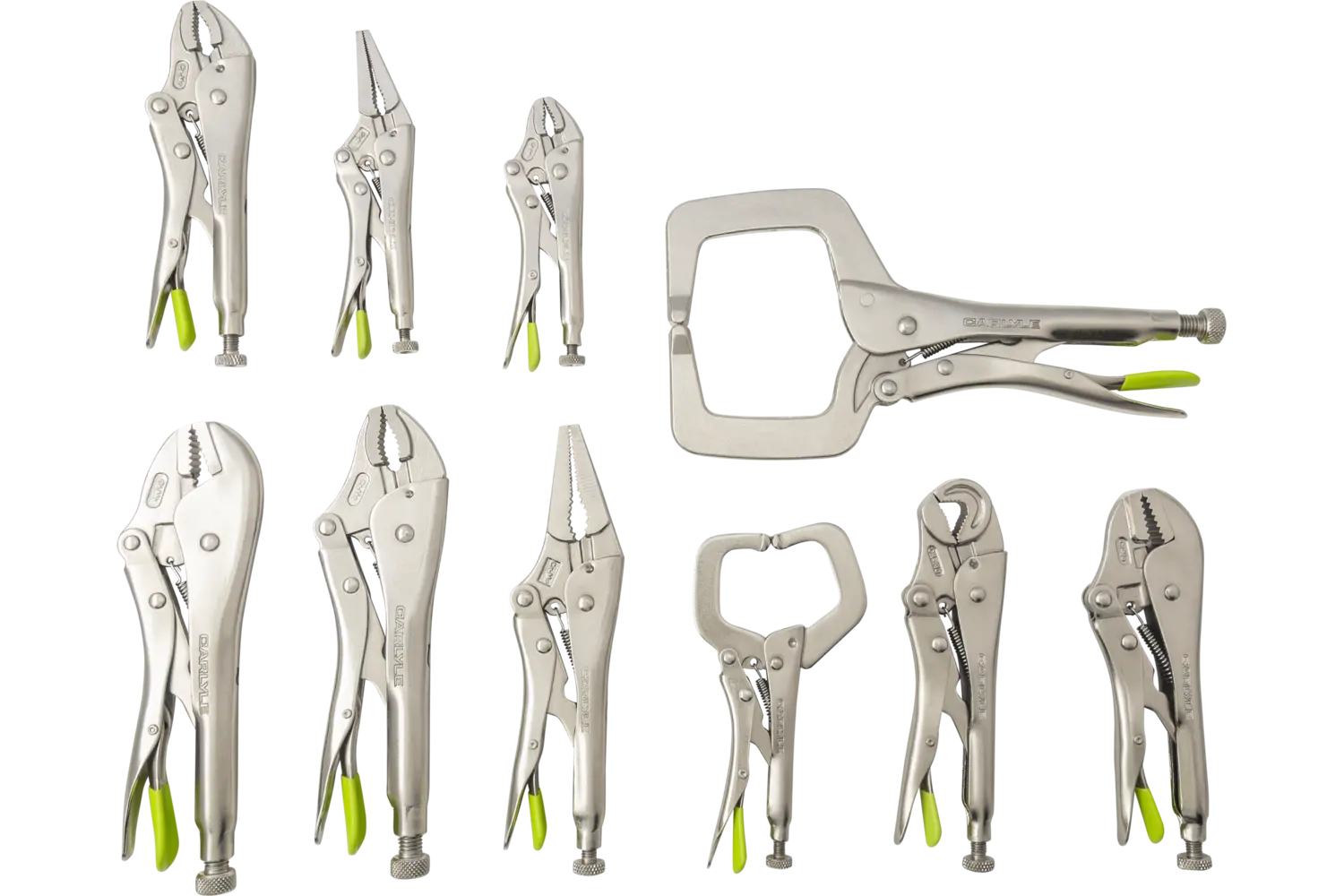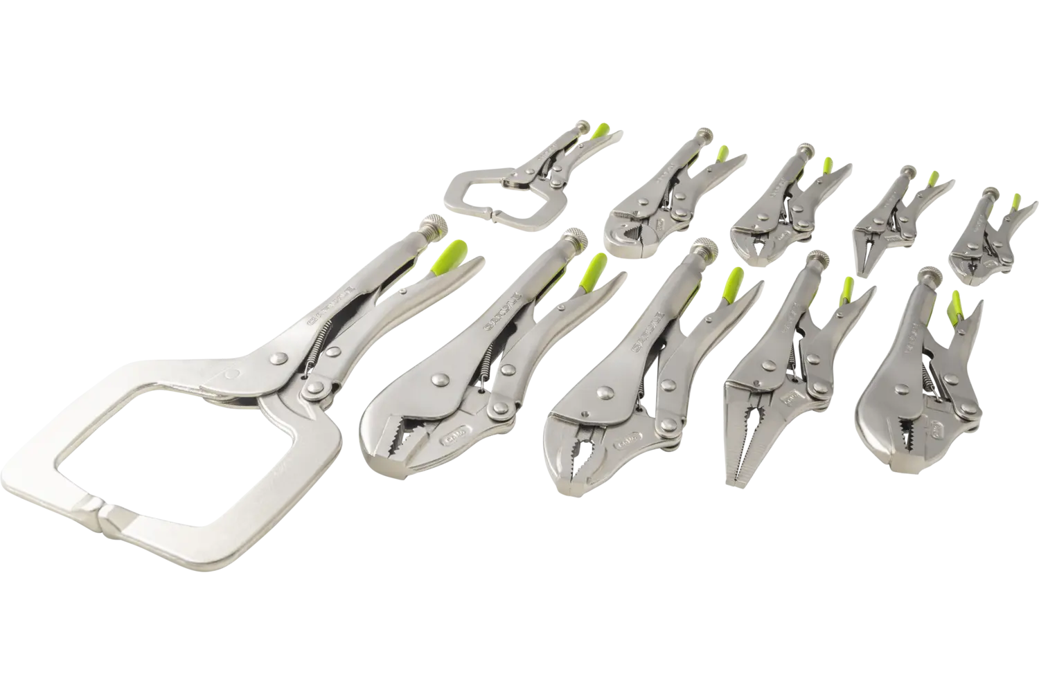 | 10in Straight Jaw Locking Plier, 10in Curved Jaw Locking Plier, 9in Long Nose Locking Plier, 7in Locking Pliers, 7in Straight Jaw Locking Plier, 7in Curved Jaw Locking Plier, 6in Long Nose Locking Plier, 6in Locking C-Clamp Plier, 5in Curverd Jaw Locking Plier , 11in Locking C-Clamp Plier | |