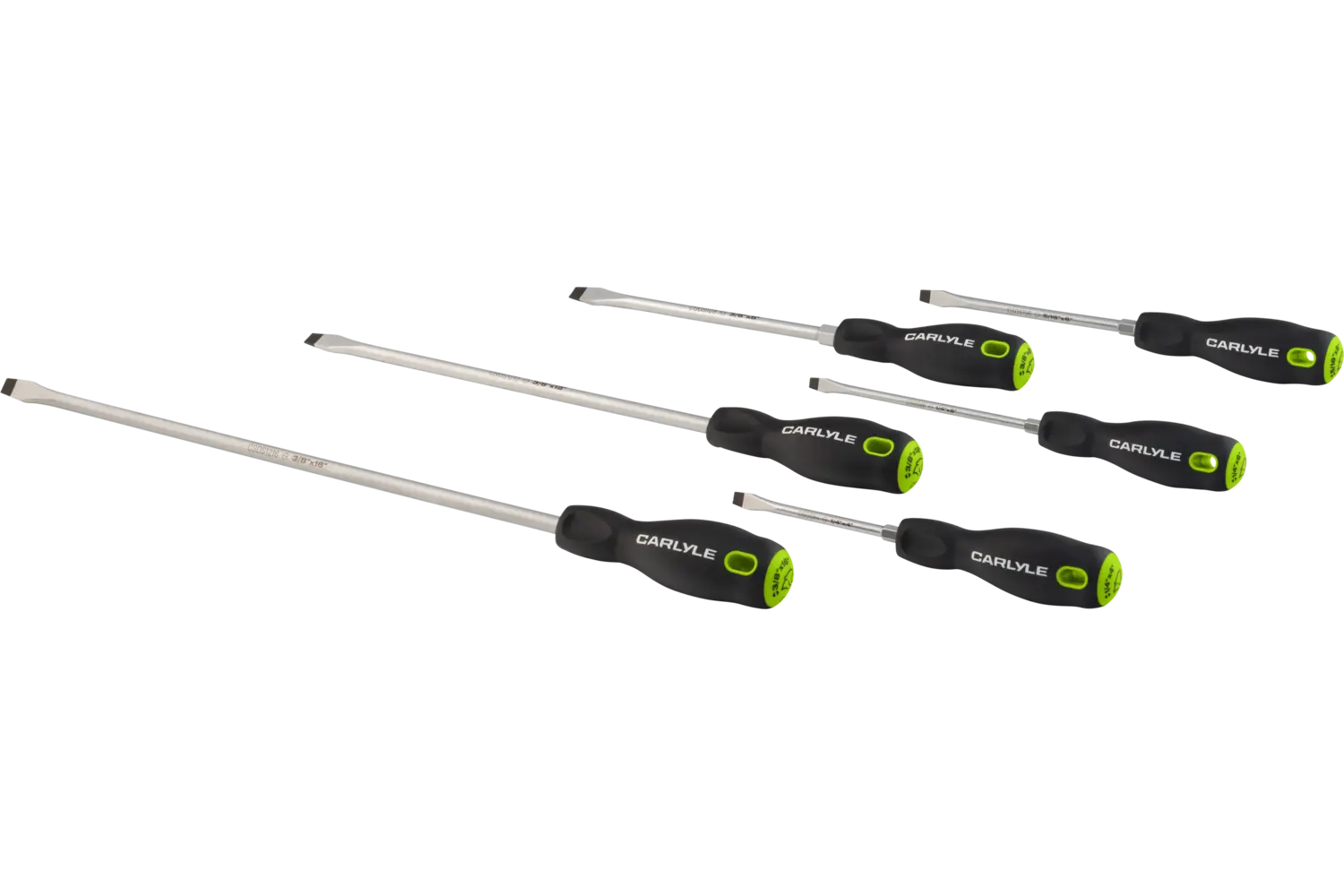 The Carlyle Phillips & Slotted Screwdriver Set is engineered for durability and precision, making it a must-have for professionals and DIY enthusiasts. Crafted from SVCM special alloy material, these screwdrivers are heat-treated and plated with a satin chrome finish for rust resistance and long-lasting performance. The magnetic tips provide superior fastener control, while the comfort-grip handles with swivel caps providing accuracy and ease of use. Designed for efficiency, this set includes low-profile screwdrivers with a 15° offset angle for accessing hard-to-reach fasteners. Complete with a tray for storage, this set is built to tackle tough tasks with confidence.