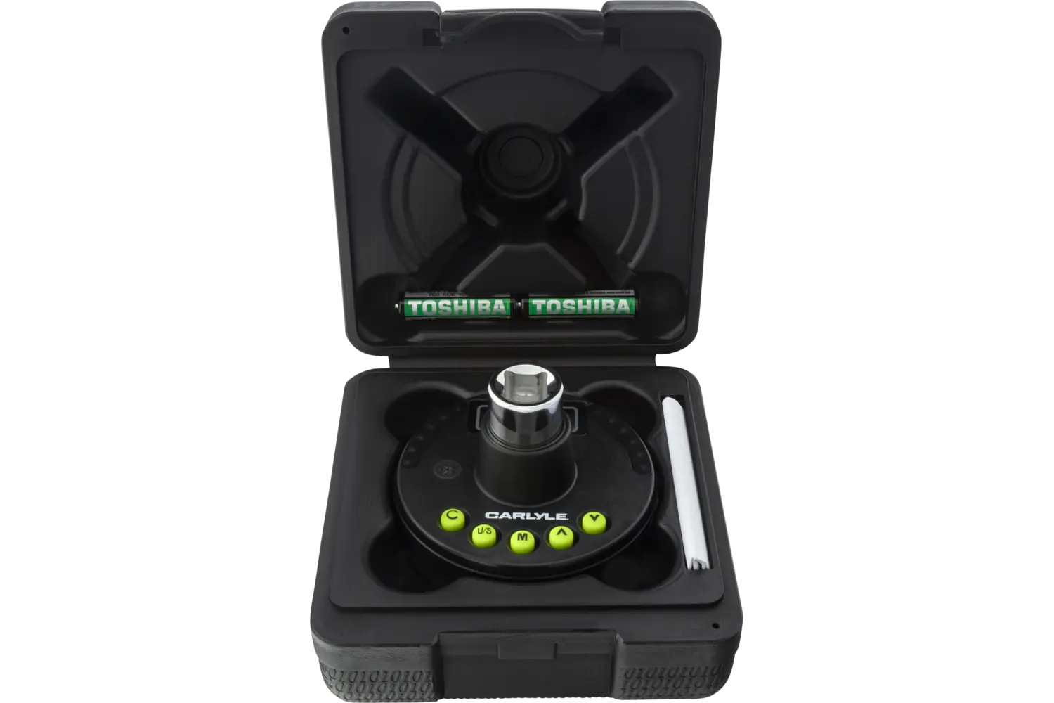 Behold the Carlyle Torque Wrenches Adapter Digital Torque, the ultimate tool for automotive technicians who value precision and durability. Engineered for those hard-to-reach areas, this torque wrench is a marvel of precision engineering, featuring digital and angle meters for exact torque application. Its memory recall function stores multiple settings, allowing for quick and convenient adjustments, while the multi-unit measurement capability lets you effortlessly switch between ft.lbs., in. lbs., N-m and kg-cm. Designed with a durable comfort grip and clear LED indicators, this Carlyle hand tool is perfect for any environment, providing audible and visual alerts for precise feedback even in low-light or tight spaces. This Carlyle Torque Wrench is crafted from superior steel and alloy, boasting a high-polish chrome finish that resists rust and wear. This professional-grade tool is a must-have for technicians ready to tackle the toughest jobs with confidence.