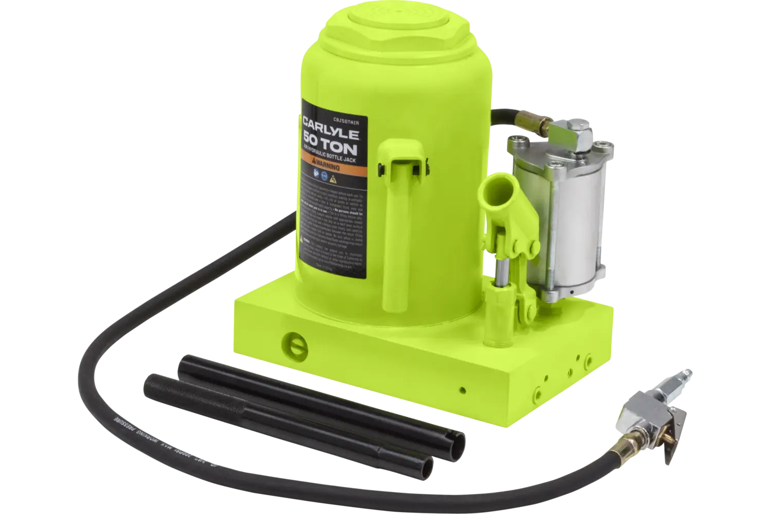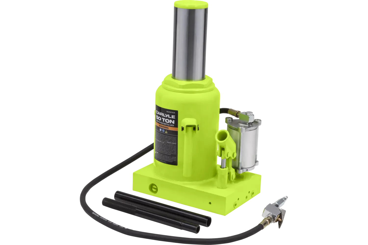 The Carlyle Air Hydraulic Bottle Jack is a durable tool for heavy-duty lifting tasks. Featuring a uni-weld cylinder and ram, it is built for strength and reliability. Available in multiple sizes, this jack is suitable for a variety of applications. With its rugged construction, it is a practical choice for mechanics and DIY enthusiasts working on demanding projects.