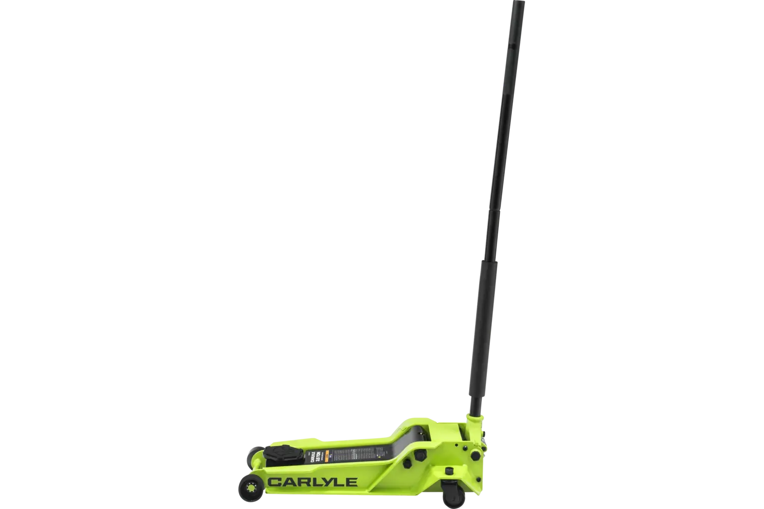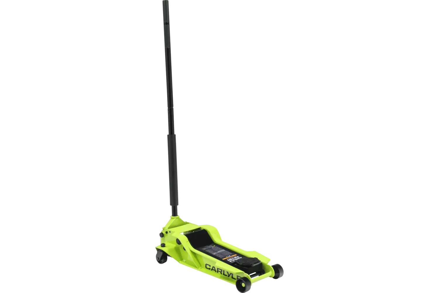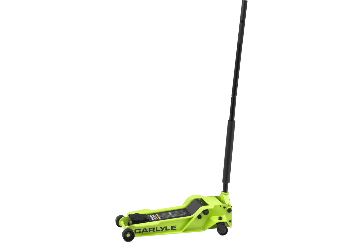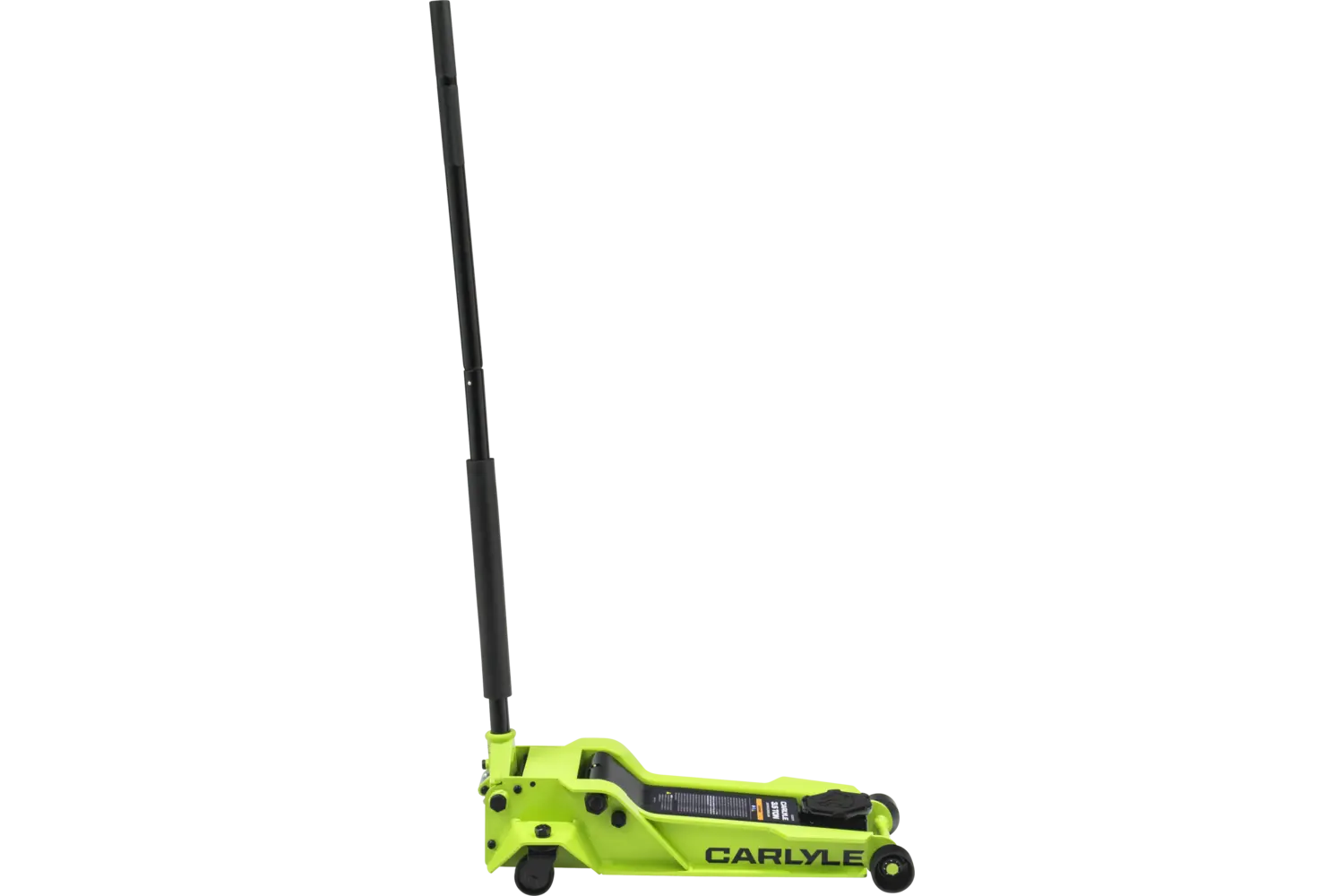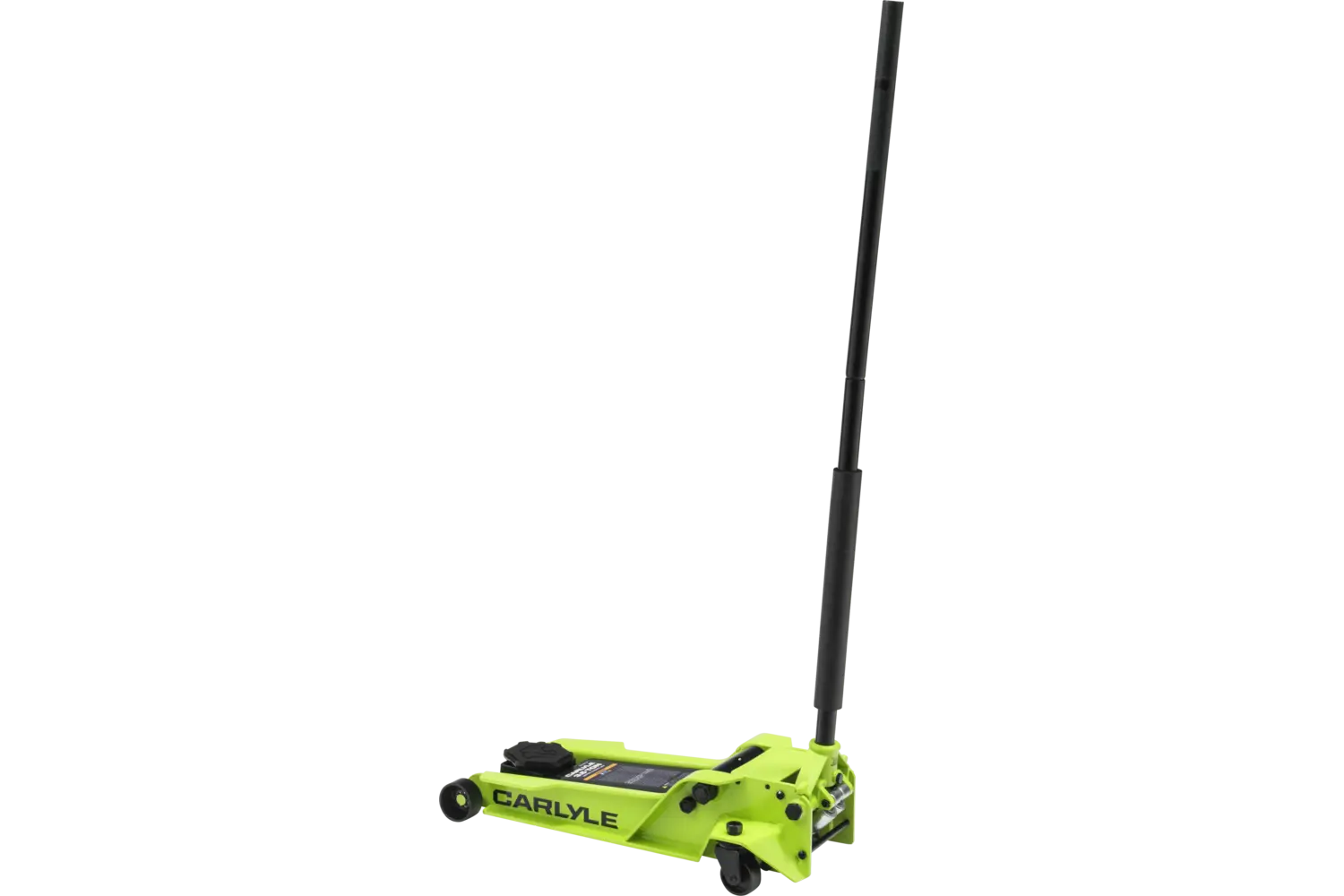 The Carlyle Hydraulic Floor Jack is a practical tool for lifting vehicles. Designed with a low-profile frame, it provides access under vehicles with low ground clearance. The long lift arm offers superior reach, while the front wheel design reduces rolling resistance. Featuring a two-piece handle and a rubber insert pad, this jack protects vehicle components during use. Available in multiple sizes, it is a reliable choice for mechanics and DIY enthusiasts.
