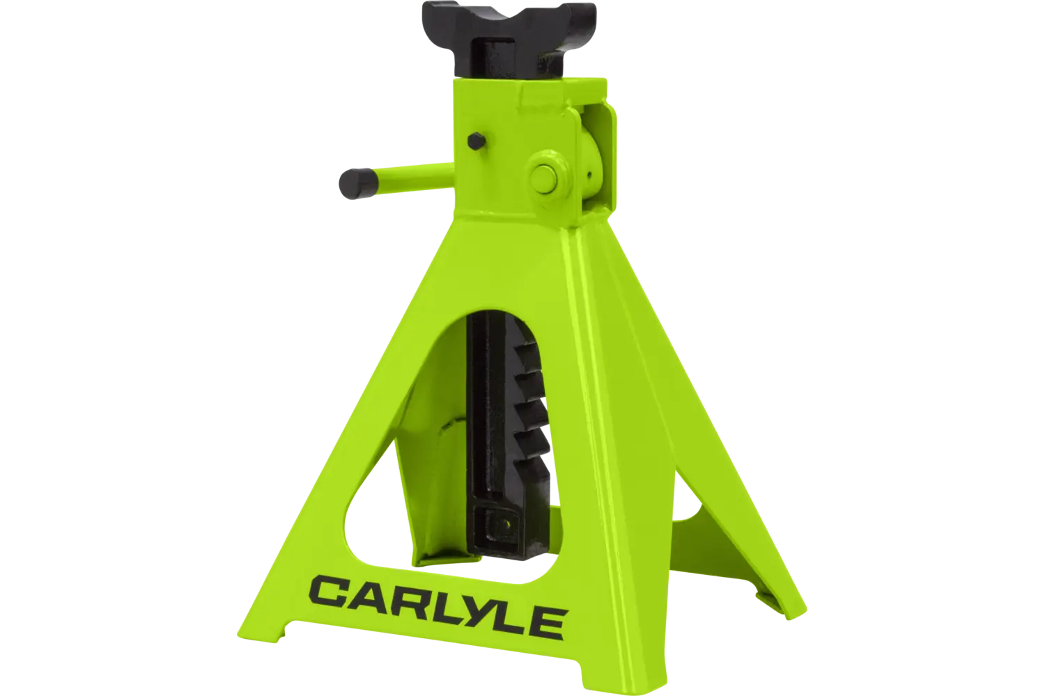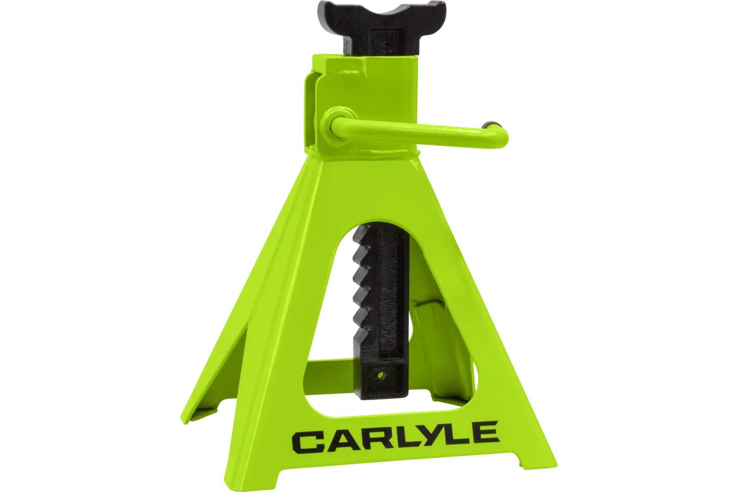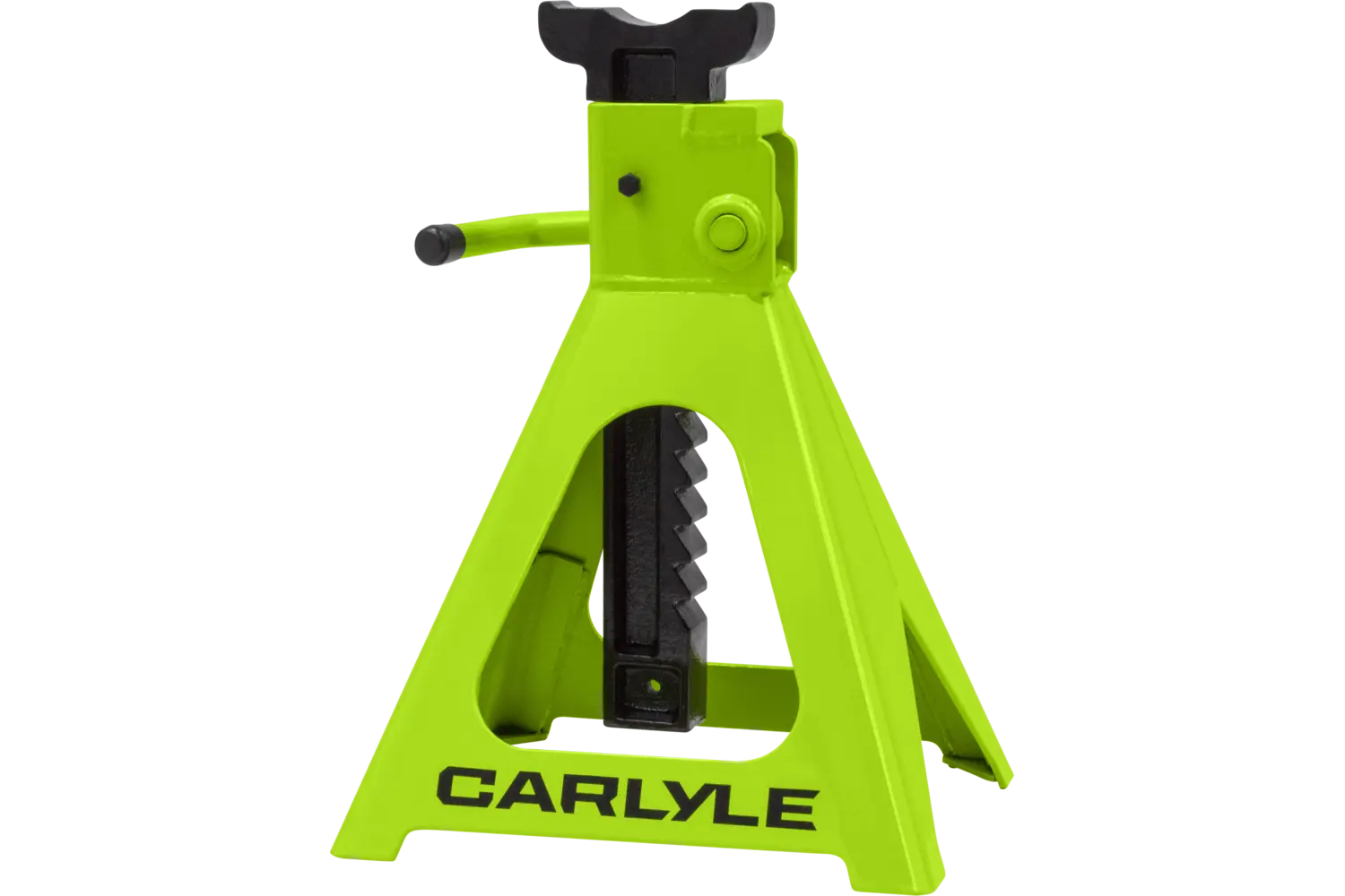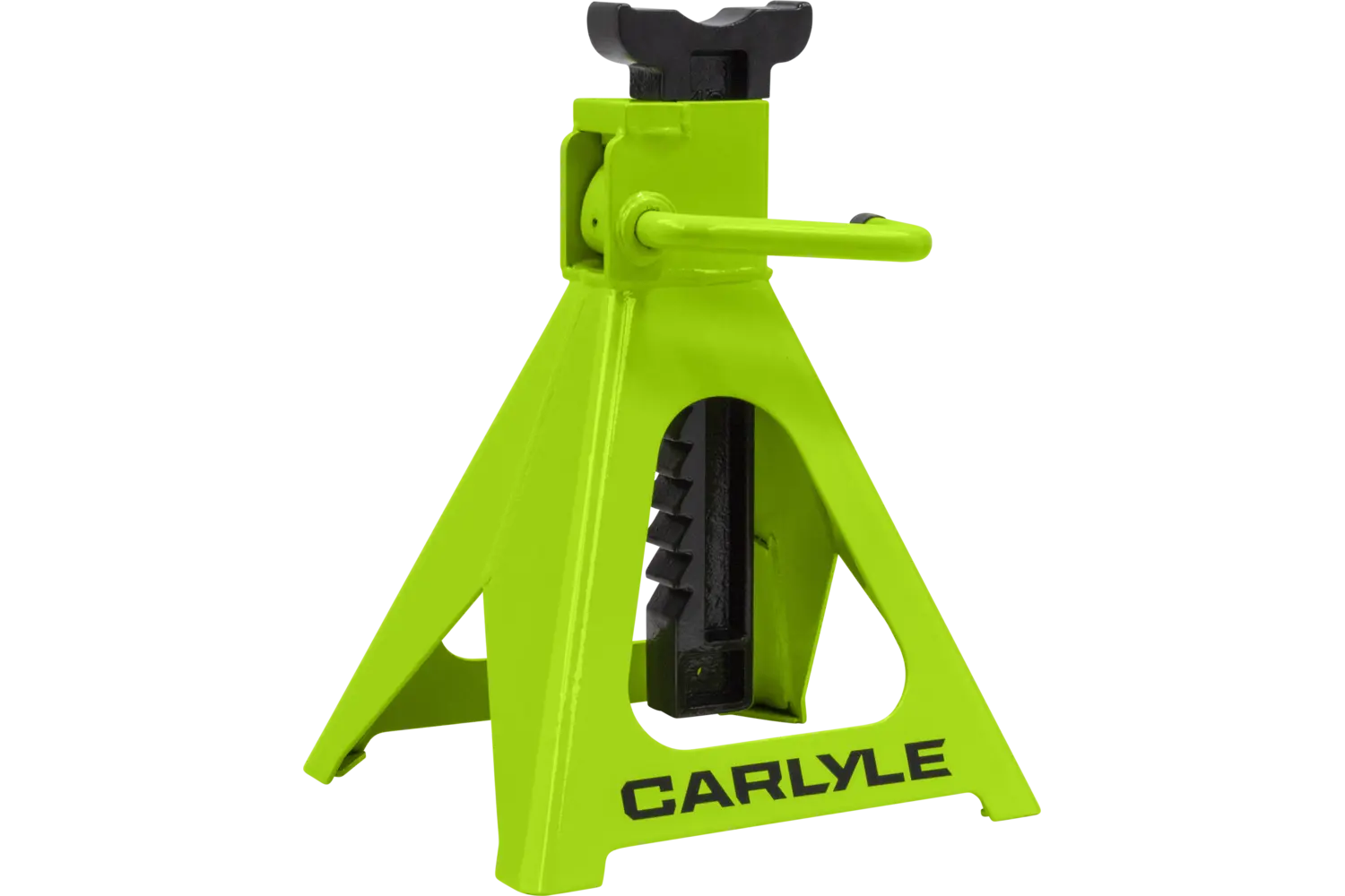 The Carlyle Ratcheting Jack Stand is a practical tool for lifting and supporting vehicles. Designed with a dual-purpose handle, it allows for easy transport and adjustments. The ratchet action height adjustment provides flexibility for different tasks. Crafted from a formed steel frame, this stand is built for stability and durability, making it a reliable addition to any garage.