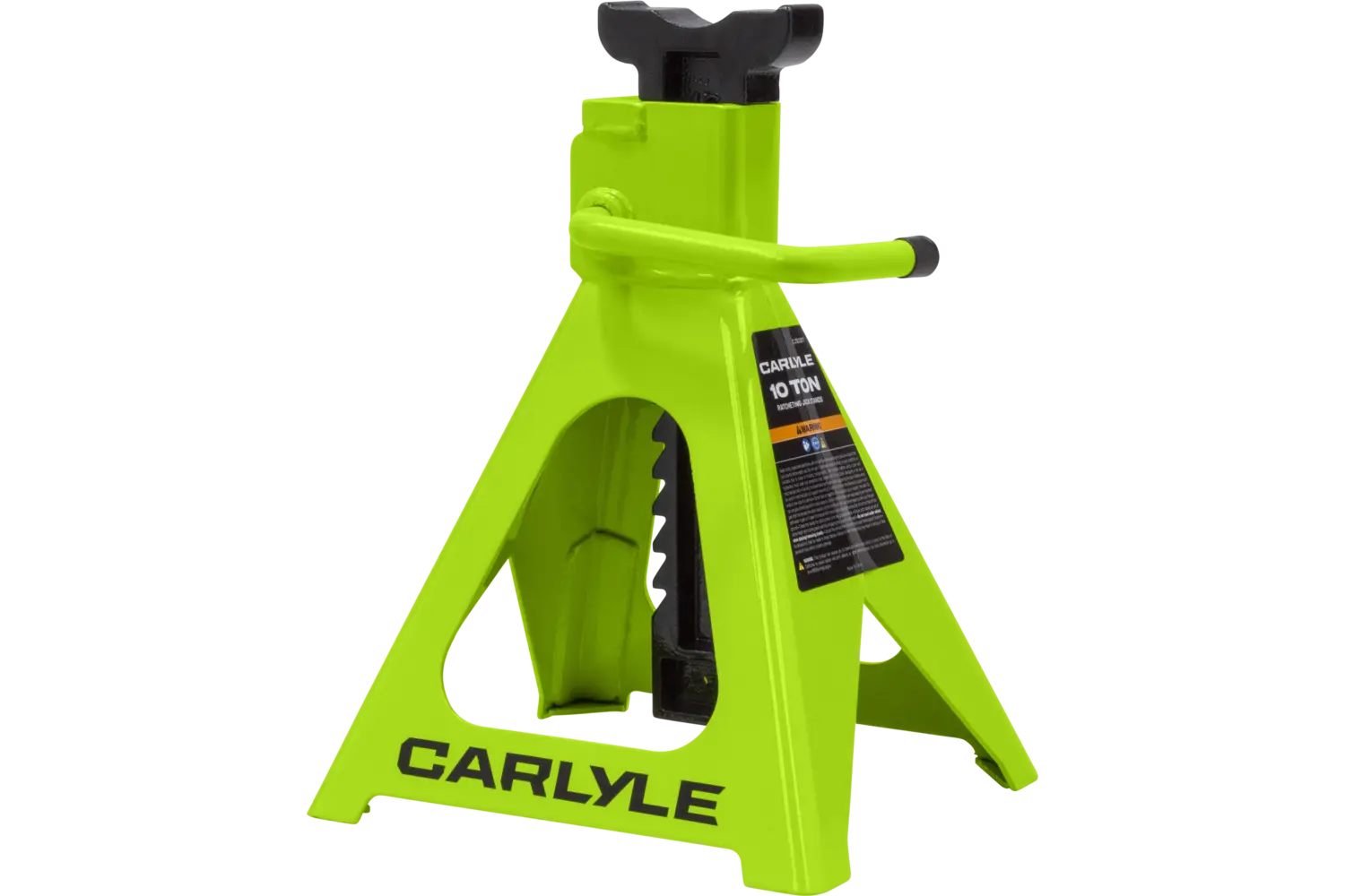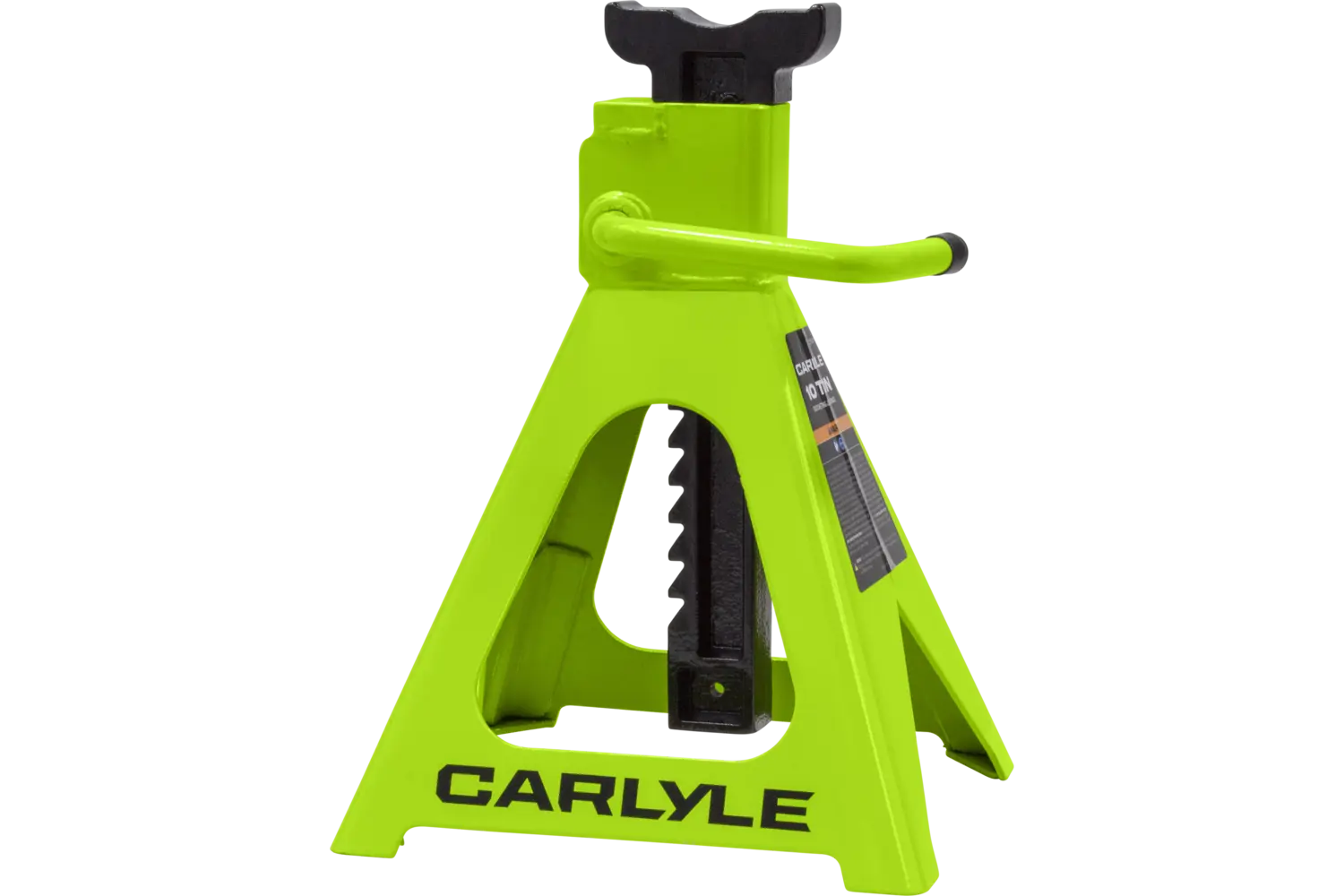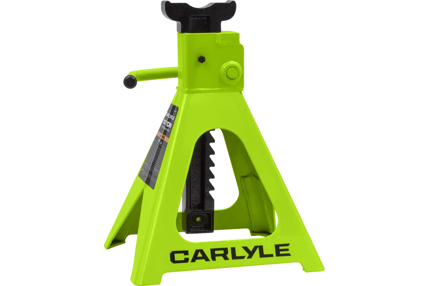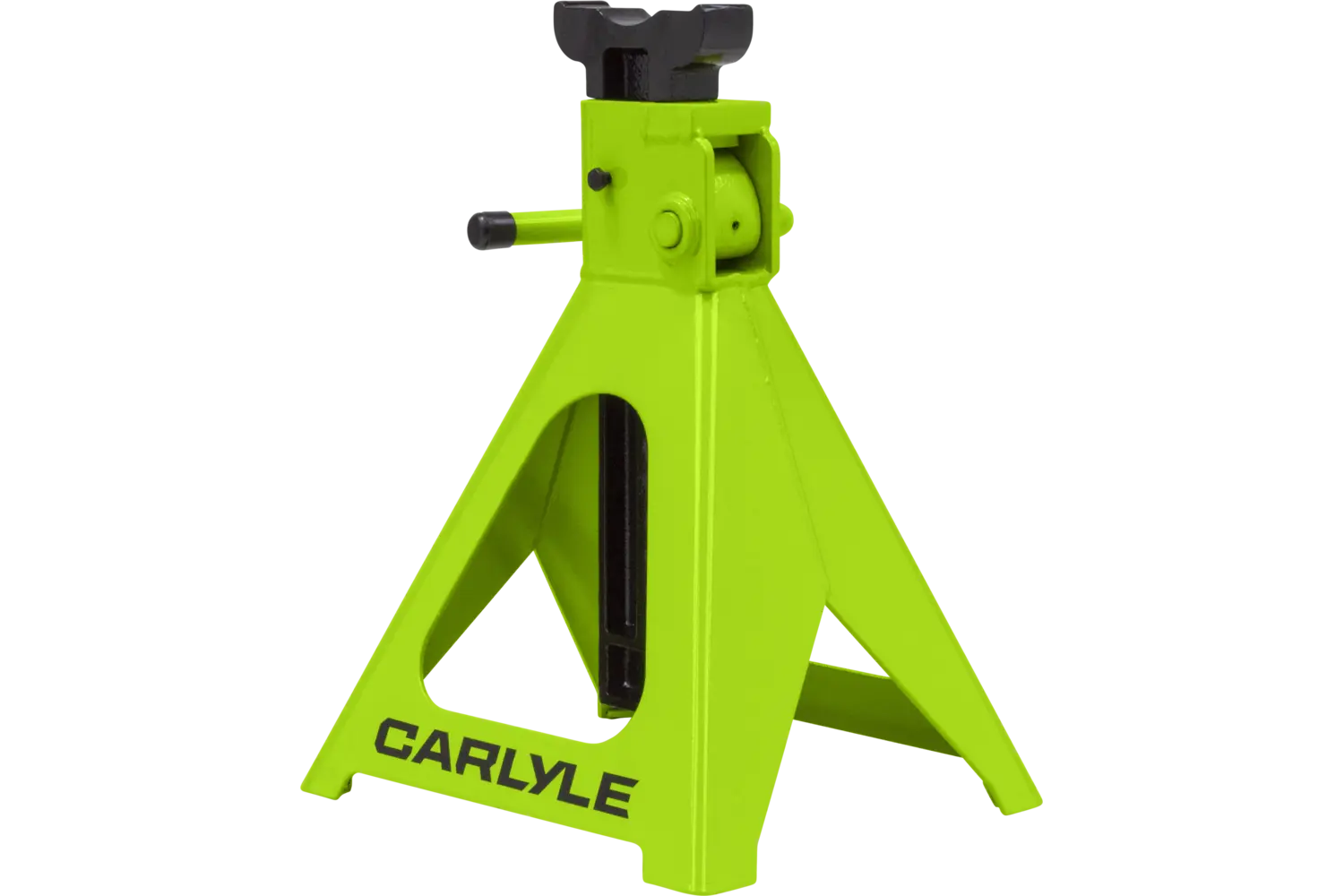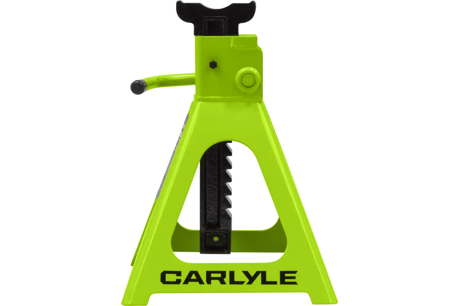 The Carlyle Ratcheting Jack Stand is a practical tool for lifting and supporting vehicles. Designed with a dual-purpose handle, it allows for easy transport and adjustments. The ratchet action height adjustment provides flexibility for different tasks. Crafted from a formed steel frame, this stand is built for stability and durability, making it a reliable addition to any garage.