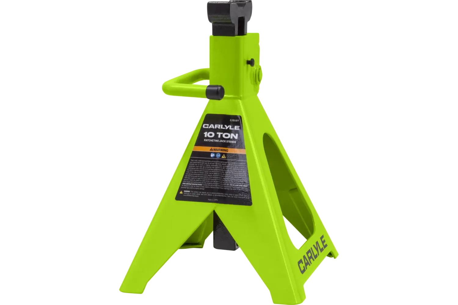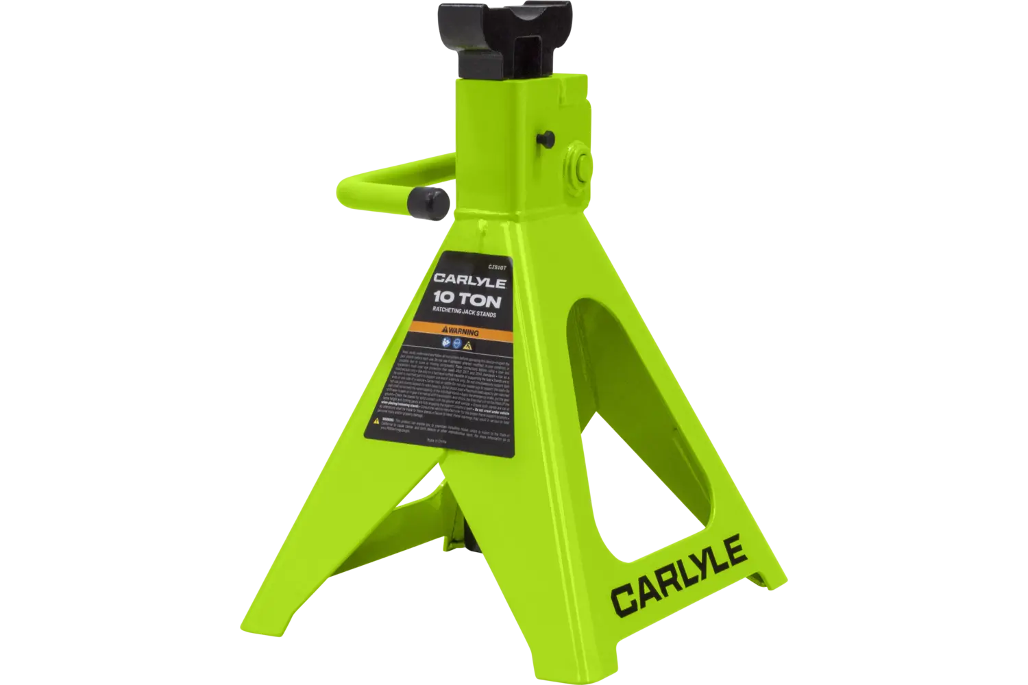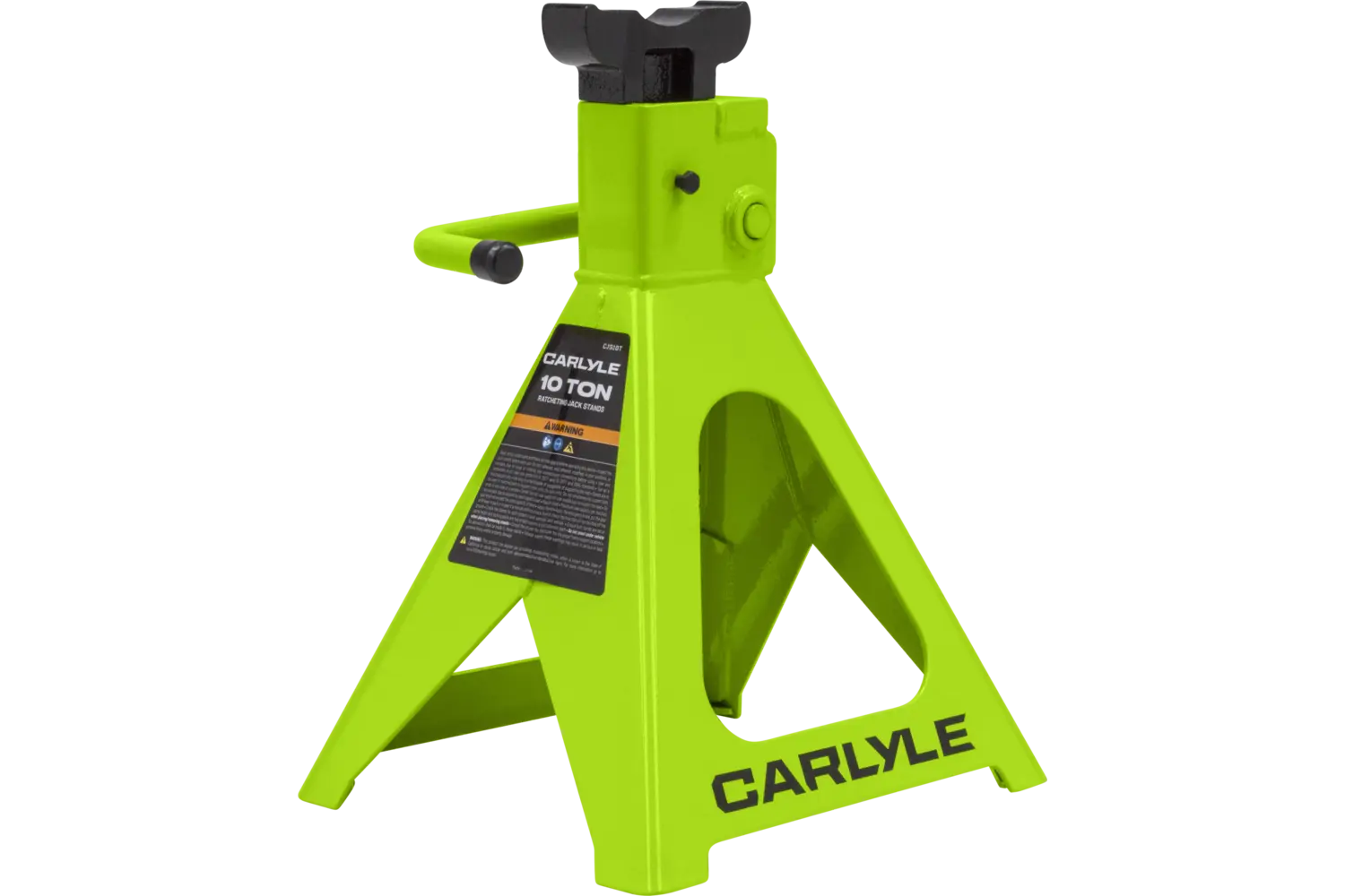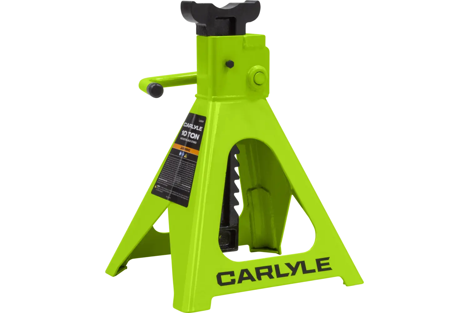 The Carlyle Ratcheting Jack Stand is a practical tool for lifting and supporting vehicles. Designed with a dual-purpose handle, it allows for easy transport and adjustments. The ratchet action height adjustment provides flexibility for different tasks. Crafted from a formed steel frame, this stand is built for stability and durability, making it a reliable addition to any garage.