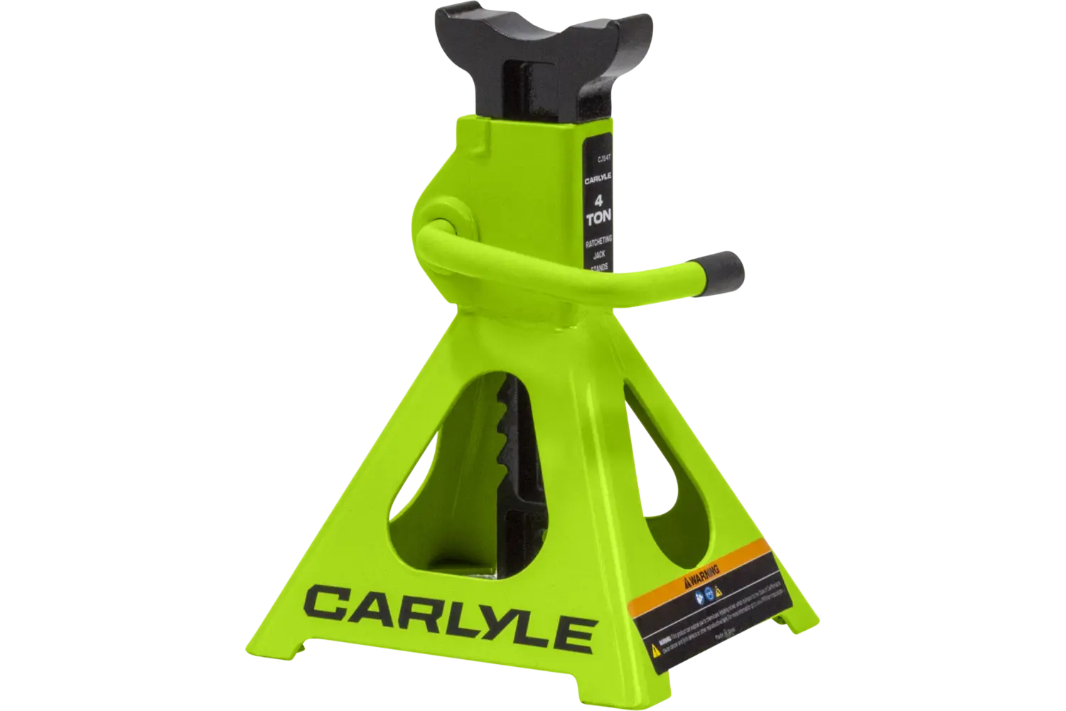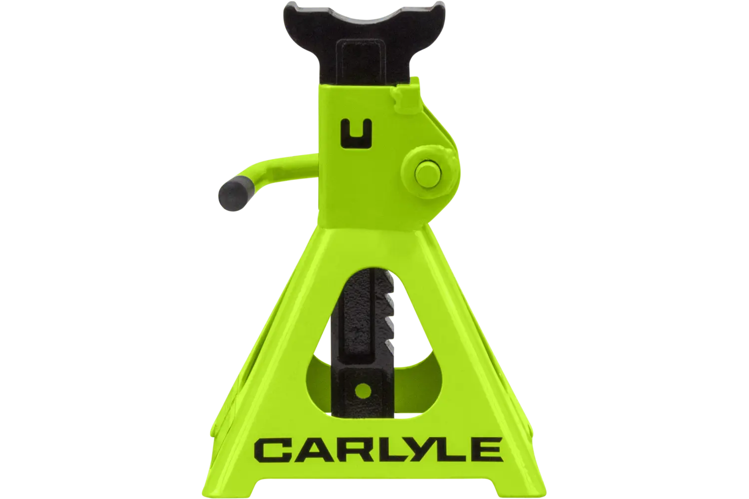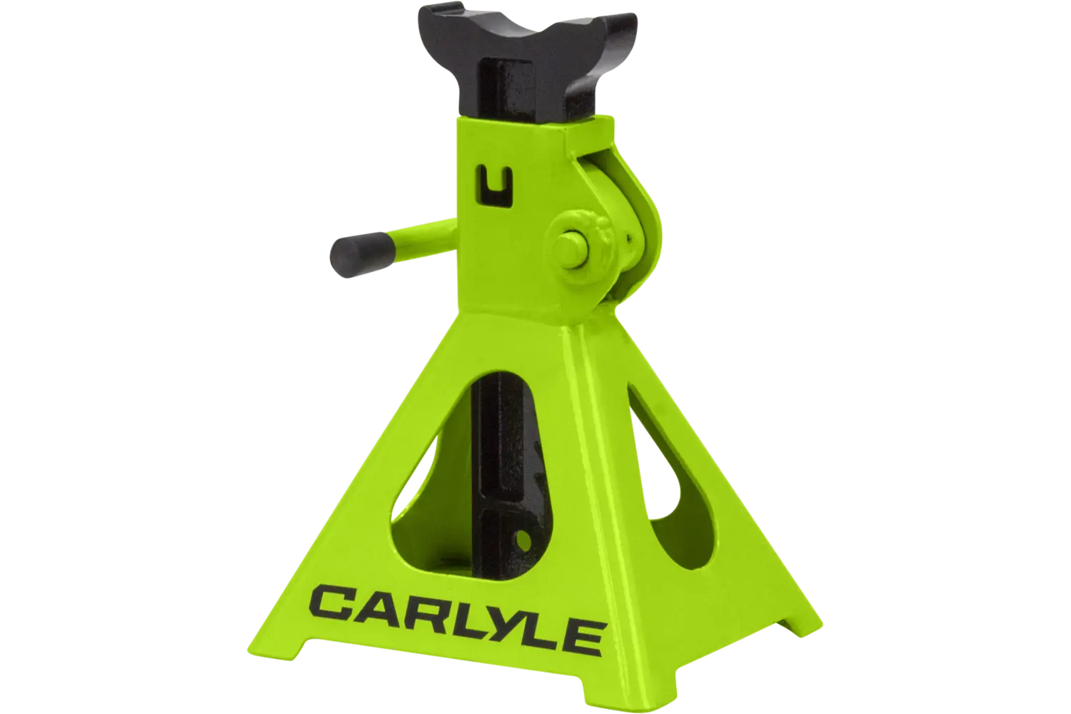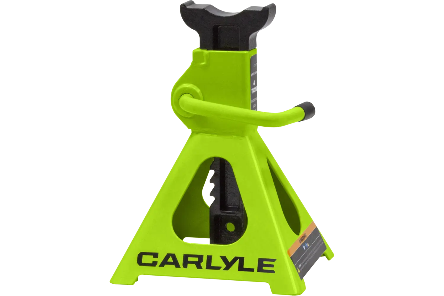 The Carlyle Ratcheting Jack Stand is a practical tool for lifting and supporting vehicles. Designed with a dual-purpose handle, it allows for easy transport and adjustments. The ratchet action height adjustment provides flexibility for different tasks. Crafted from a formed steel frame, this stand is built for stability and durability, making it a reliable addition to any garage.