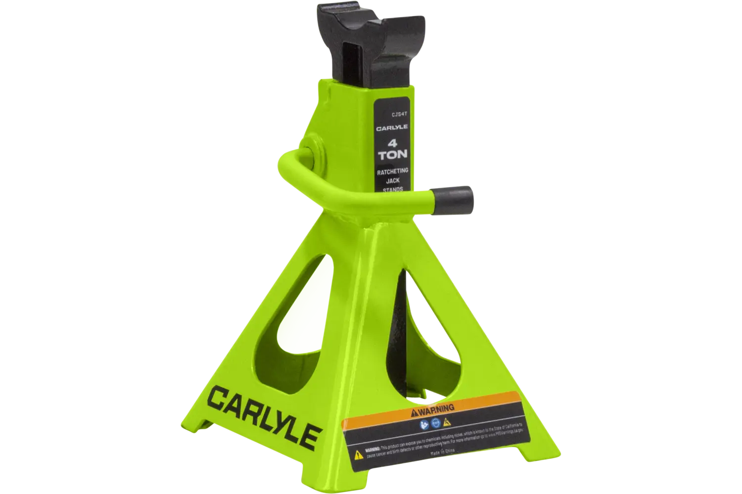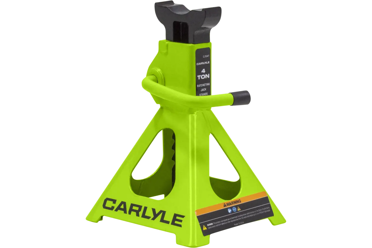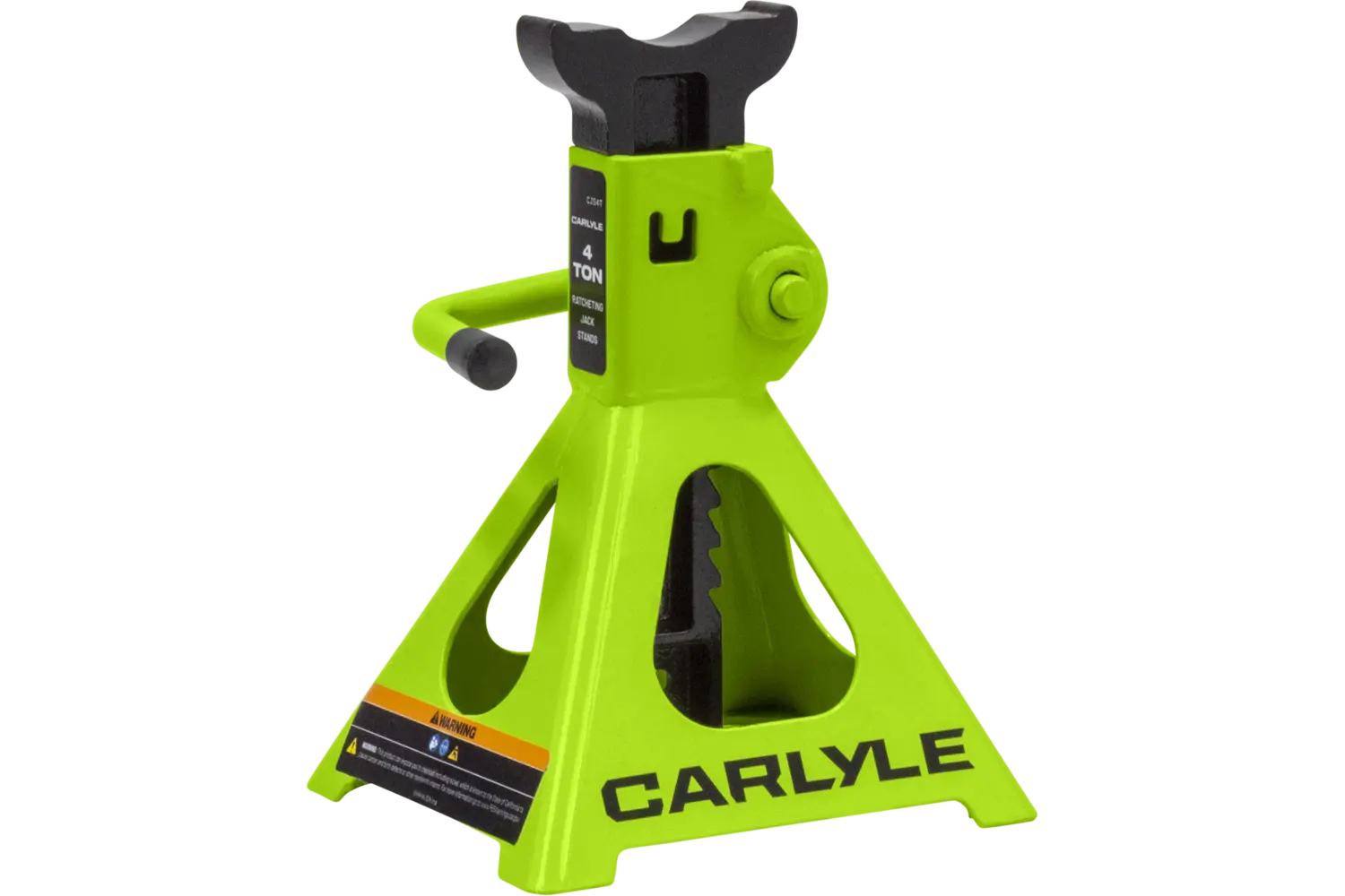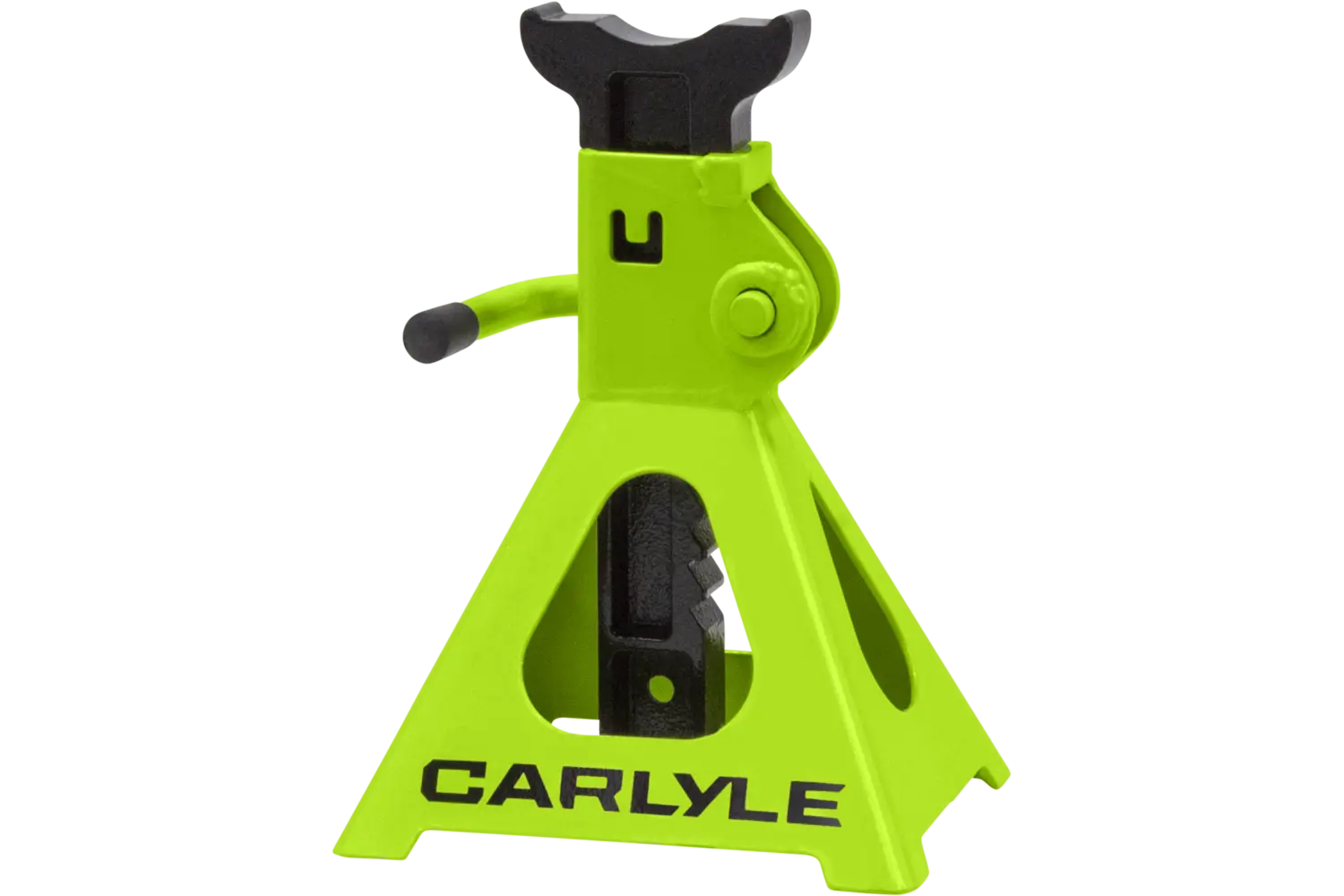 The Carlyle Ratcheting Jack Stand is a practical tool for lifting and supporting vehicles. Designed with a dual-purpose handle, it allows for easy transport and adjustments. The ratchet action height adjustment provides flexibility for different tasks. Crafted from a formed steel frame, this stand is built for stability and durability, making it a reliable addition to any garage.