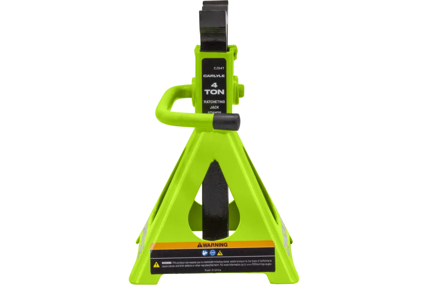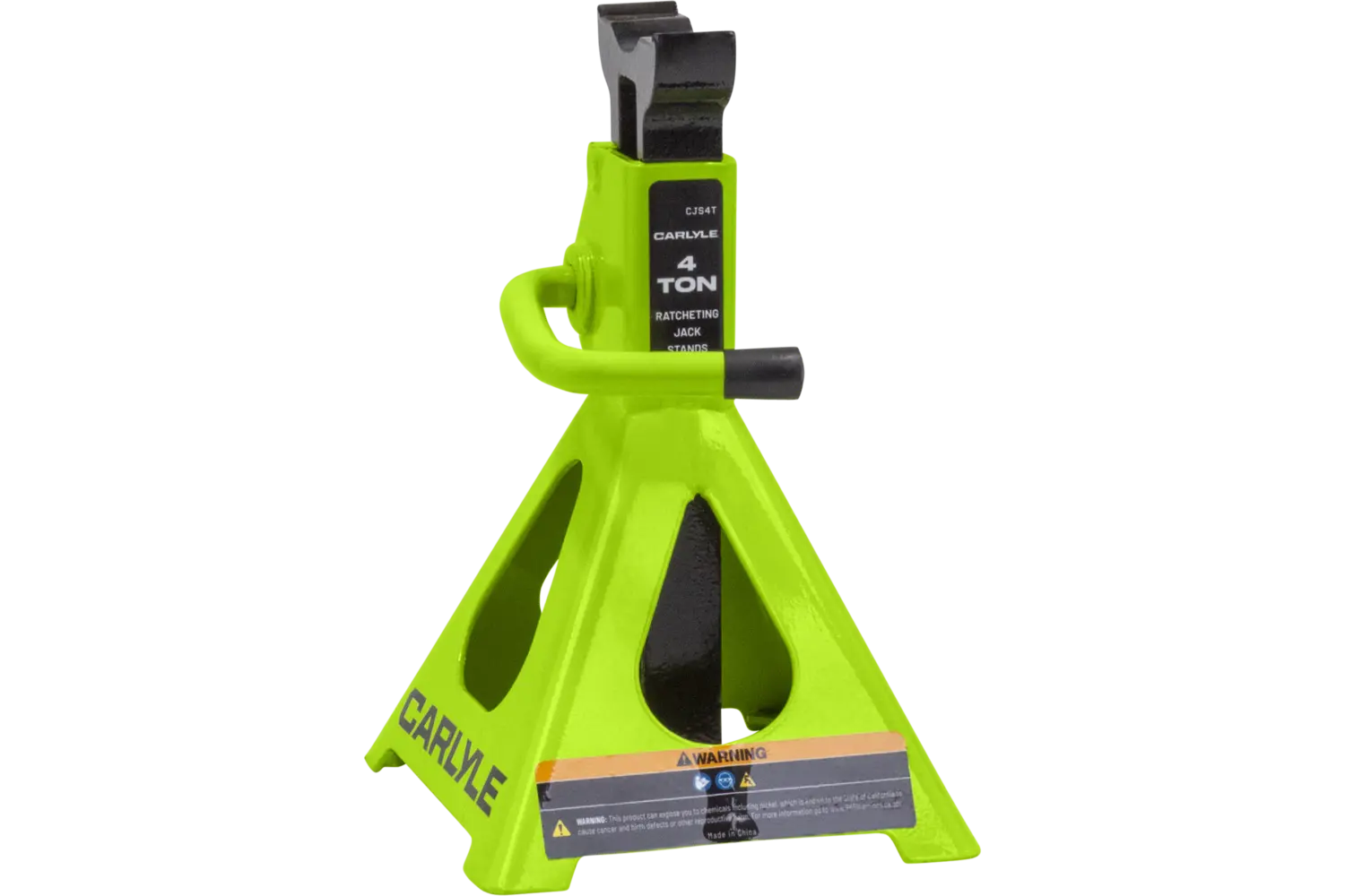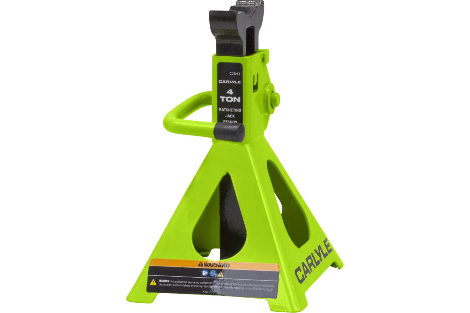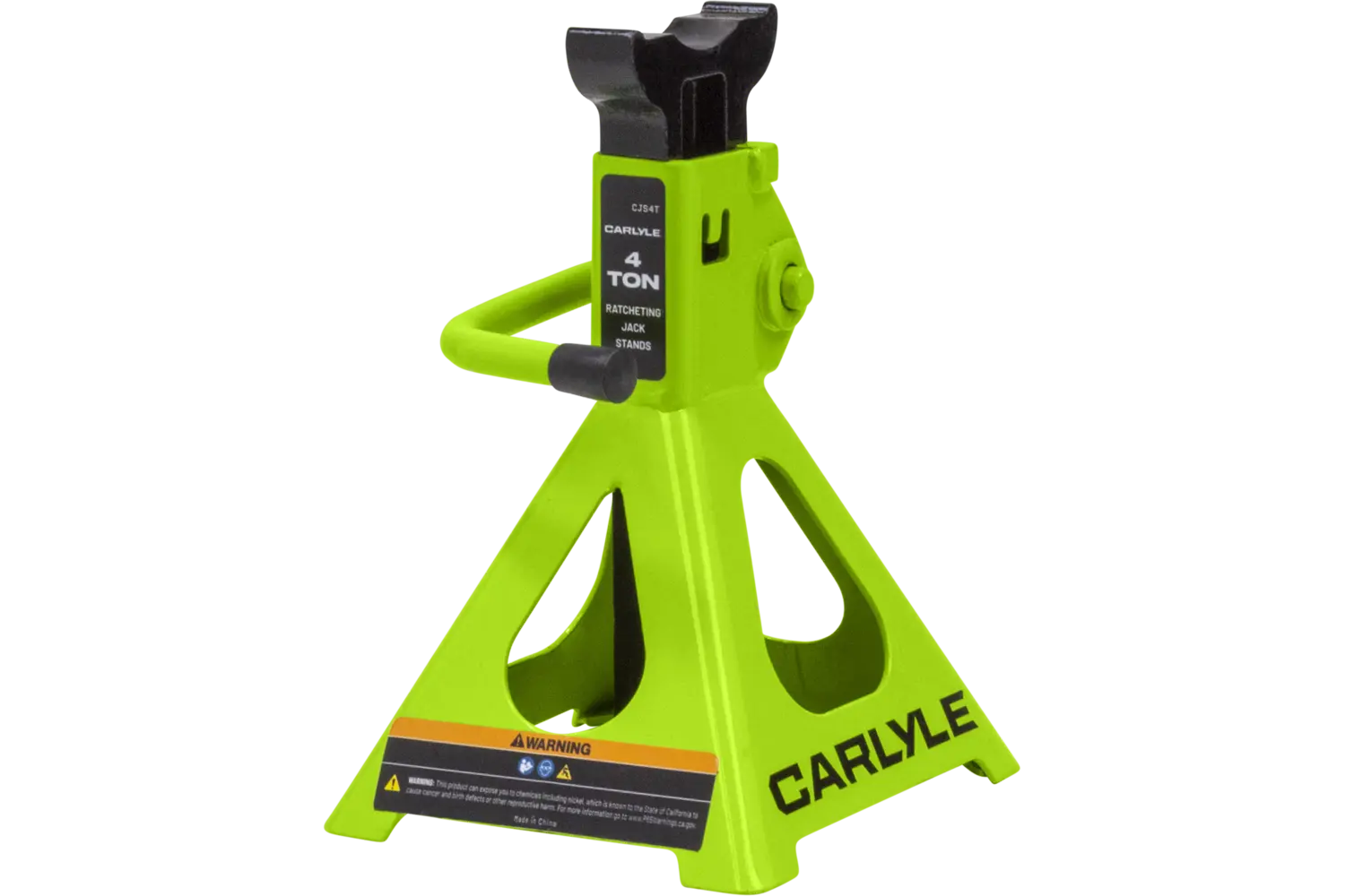 The Carlyle Ratcheting Jack Stand is a practical tool for lifting and supporting vehicles. Designed with a dual-purpose handle, it allows for easy transport and adjustments. The ratchet action height adjustment provides flexibility for different tasks. Crafted from a formed steel frame, this stand is built for stability and durability, making it a reliable addition to any garage.