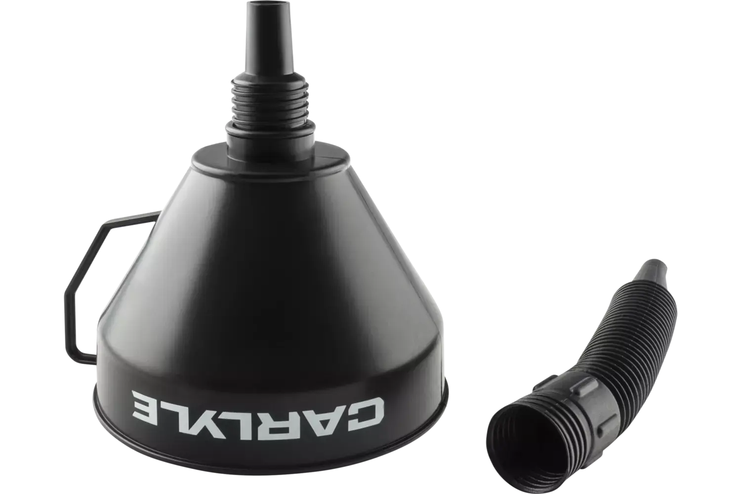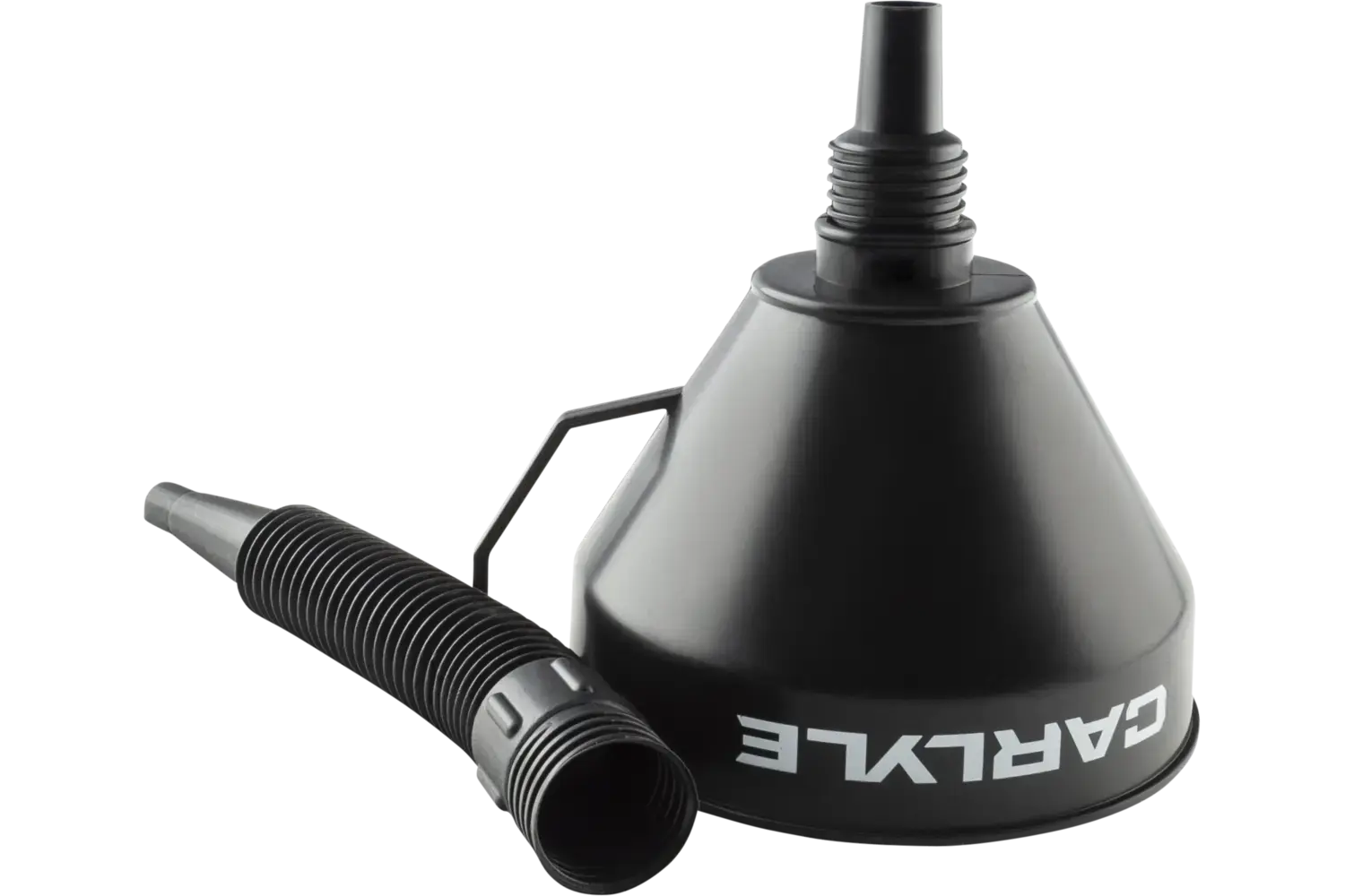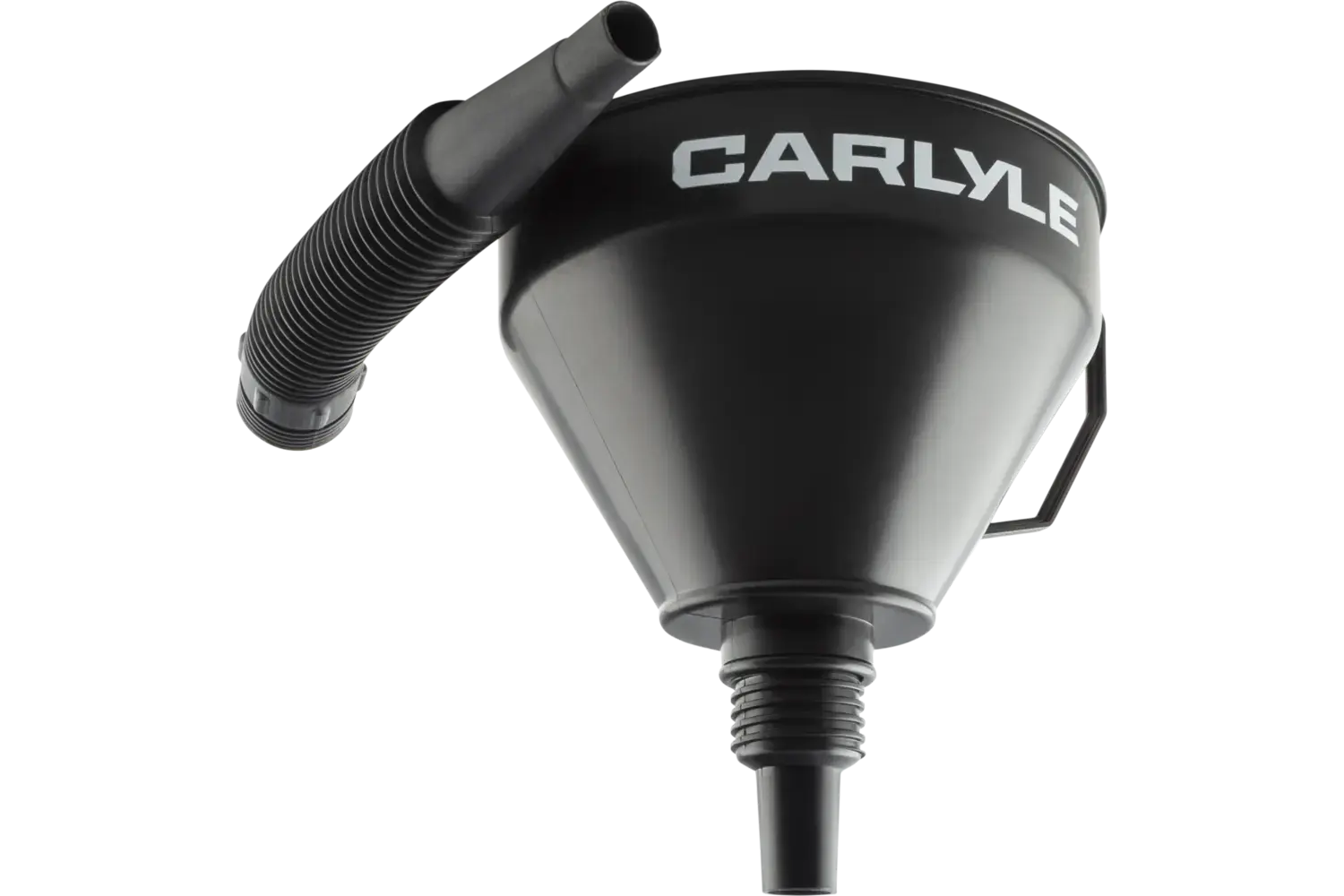 The Carlyle Funnel with Spout is built tough from high-density polyethylene that stands up to oil, fuel, and many acids, making it a reliable workhorse in any garage. Featuring a fitted handle for easy carrying and pouring, it comes equipped with a removable brass filter to keep contaminants out and a flexible, removable 2-step spout designed to fit smaller diameter unleaded filler necks with ease. This funnel gets the job done clean and precise, even in tight or tricky spots.