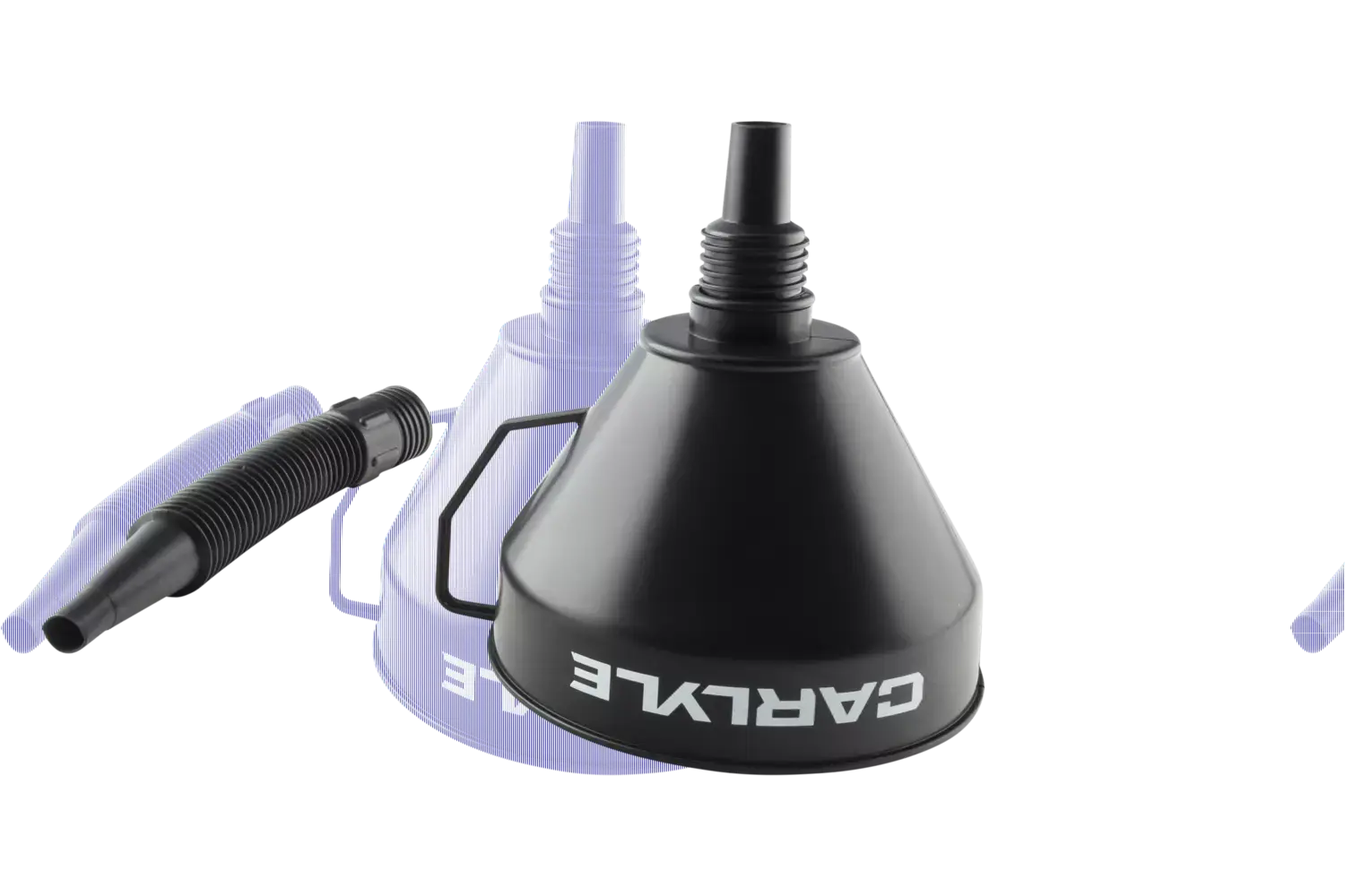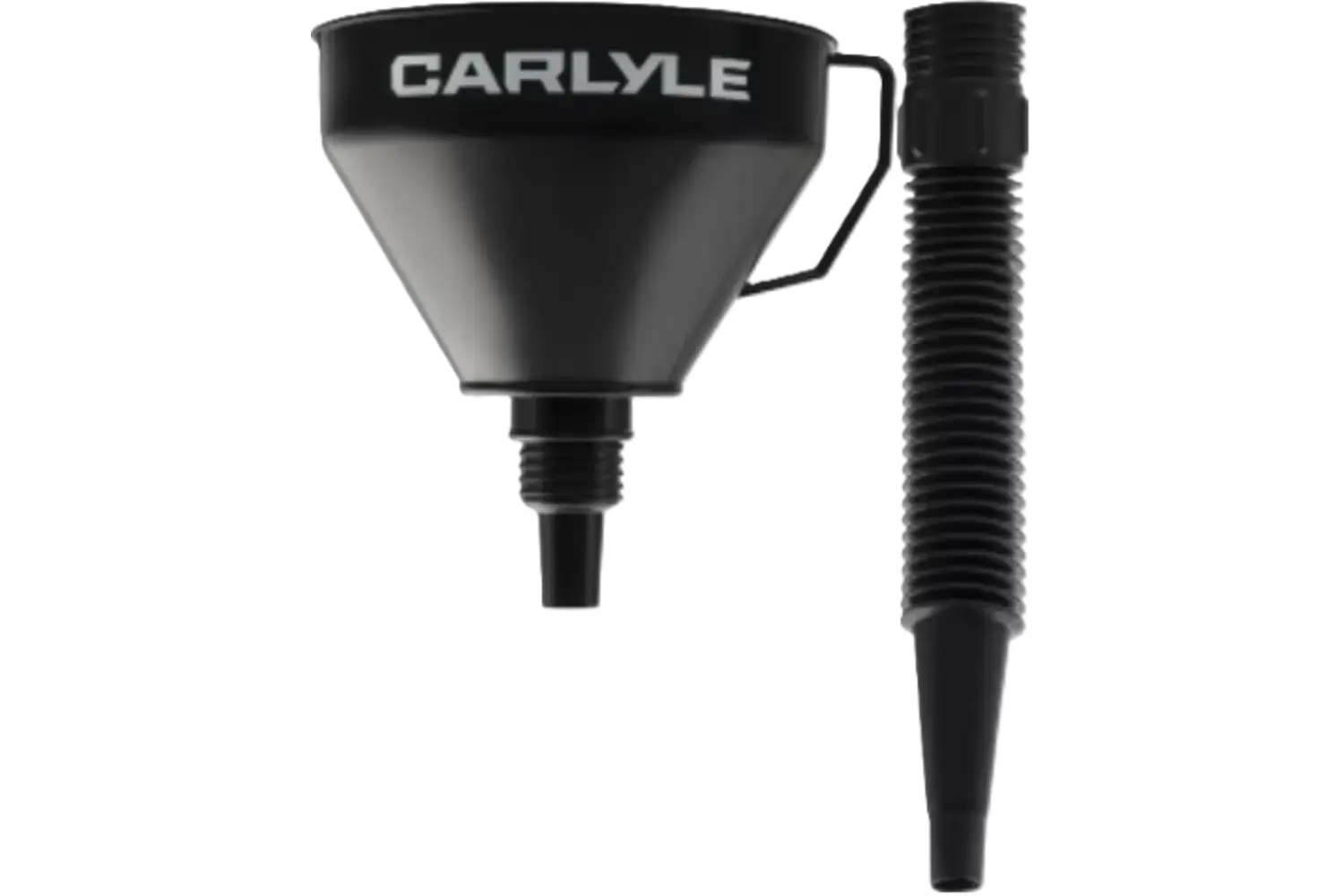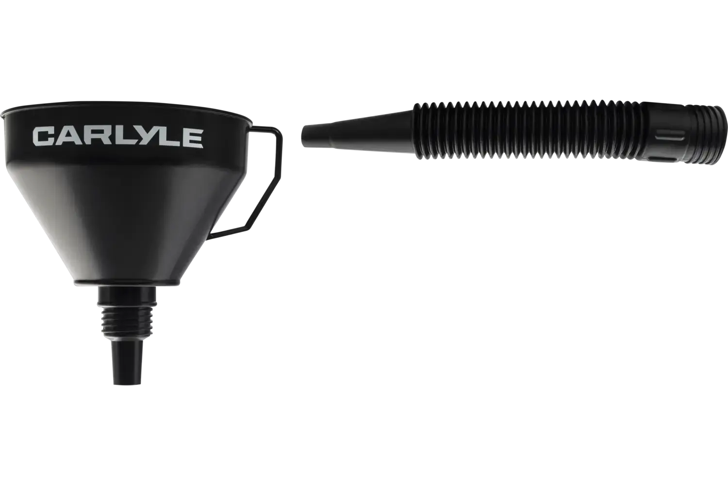 The Carlyle Funnel with Spout is built tough from high-density polyethylene that stands up to oil, fuel, and many acids, making it a reliable workhorse in any garage. Featuring a fitted handle for easy carrying and pouring, it comes equipped with a removable brass filter to keep contaminants out and a flexible, removable 2-step spout designed to fit smaller diameter unleaded filler necks with ease. This funnel gets the job done clean and precise, even in tight or tricky spots.