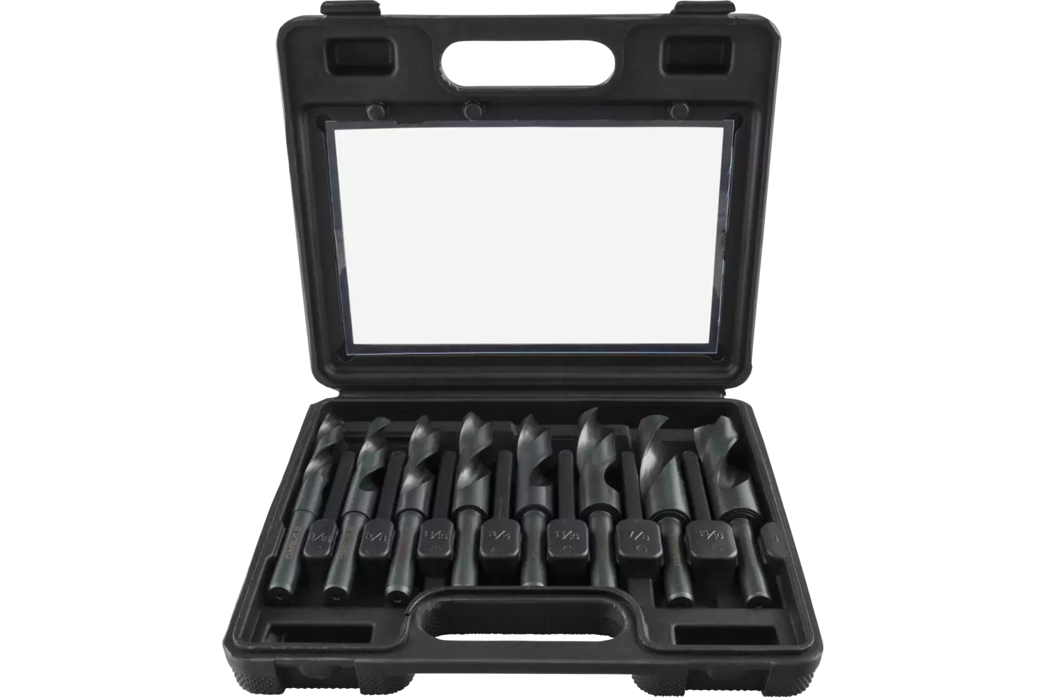 The Carlyle 8 Piece Silver & Deming Drill Bit Set is crafted for general-purpose drilling with precision and strength. Featuring a 118° point and high-speed steel construction, these bits are ideal for materials like mild steel, aluminum, plastic, and wood. The robust steel construction offers durability, making this set a dependable choice for both professionals and DIY enthusiasts tackling a variety of tasks.
