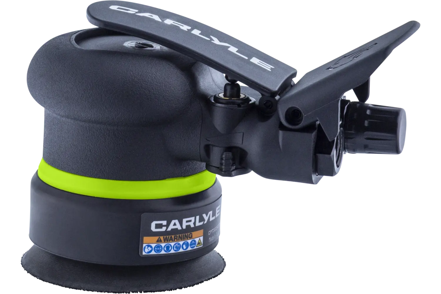 The Carlyle Random Orbital Sander is built for durability, precision, and all-day comfort, making it a go-to tool for pros and DIYers alike. Powered by an efficient 0.3 HP oil-free motor, it delivers extended use with minimal maintenance, while the variable speed throttle gives you ultimate control for precision sanding. Designed with low-noise technology, it operates at less than 85 dB, helping protect your ears during long jobs. The integrated wrist support offers comfort during extended applications, and the Kevlar-impregnated rotor blades boost the lifespan by 50%, making it as tough as the jobs you tackle. Available in 3/16-inch or 3/32-inch orbits and 6-inch or 3-inch sizes, this sander is ready for any project that demands rugged performance and flawless results.