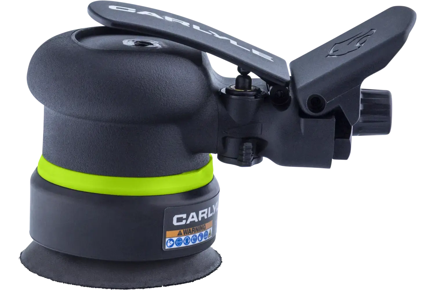 The Carlyle Random Orbital Sander is built for durability, precision, and all-day comfort, making it a go-to tool for pros and DIYers alike. Powered by an efficient 0.3 HP oil-free motor, it delivers extended use with minimal maintenance, while the variable speed throttle gives you ultimate control for precision sanding. Designed with low-noise technology, it operates at less than 85 dB, helping protect your ears during long jobs. The integrated wrist support offers comfort during extended applications, and the Kevlar-impregnated rotor blades boost the lifespan by 50%, making it as tough as the jobs you tackle. Available in 3/16-inch or 3/32-inch orbits and 6-inch or 3-inch sizes, this sander is ready for any project that demands rugged performance and flawless results.