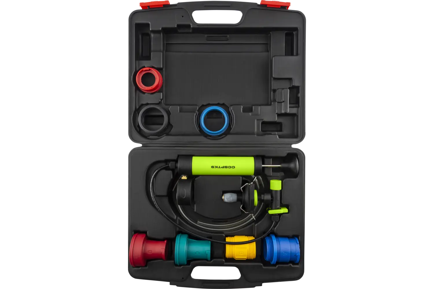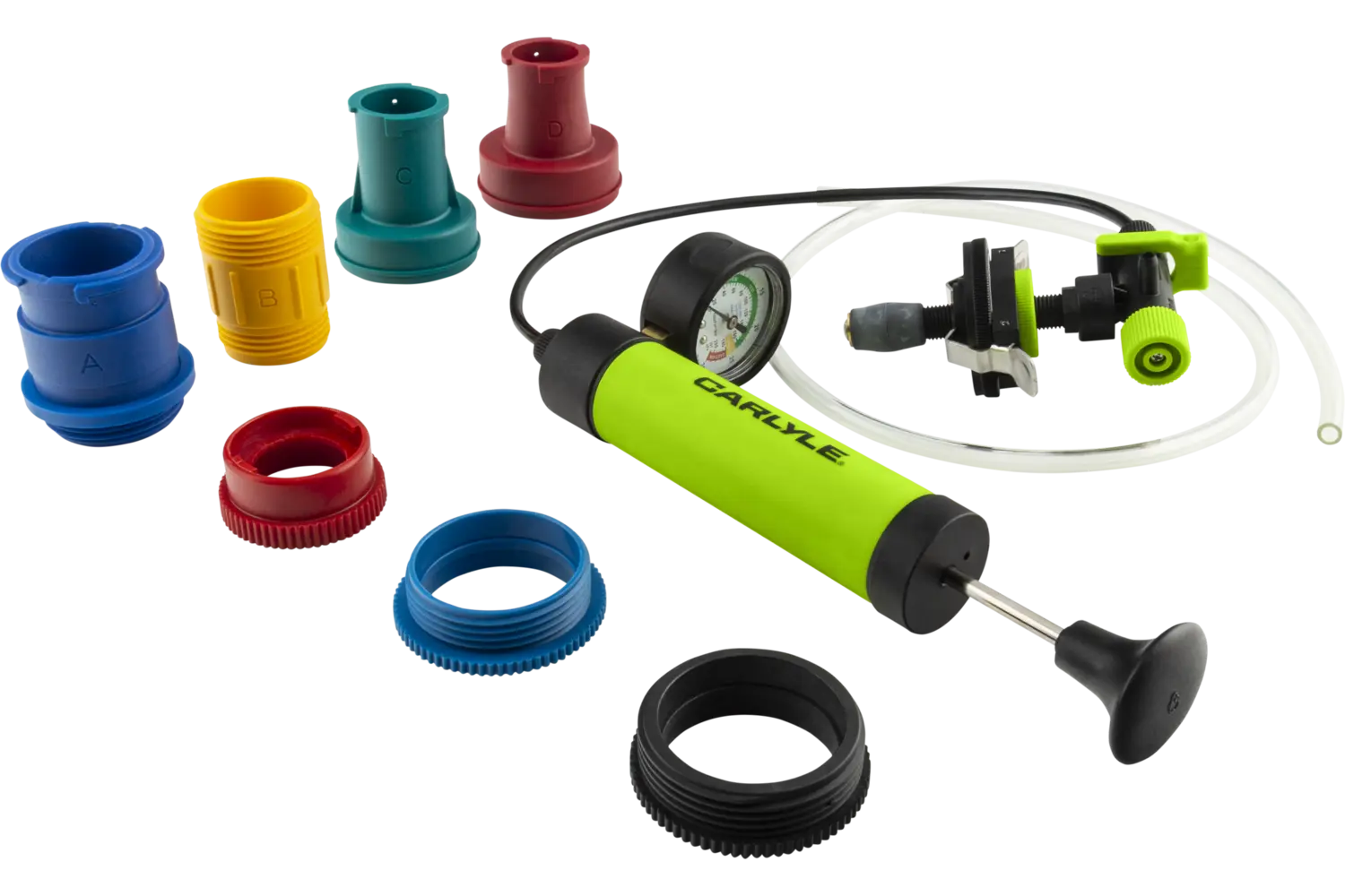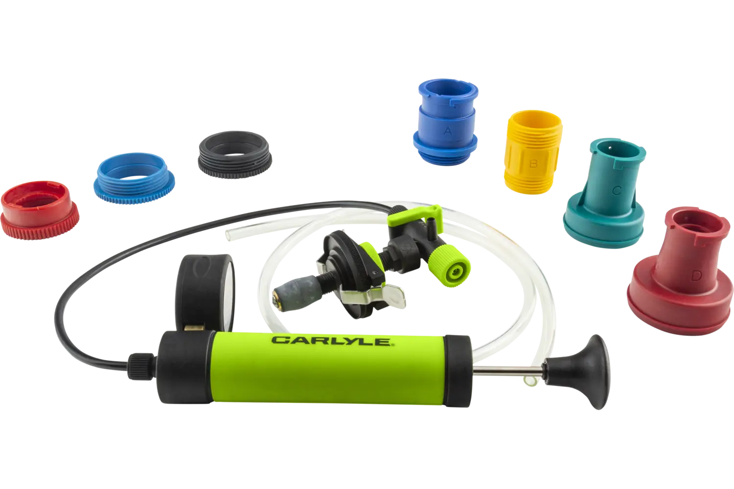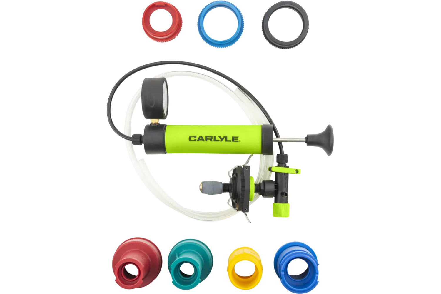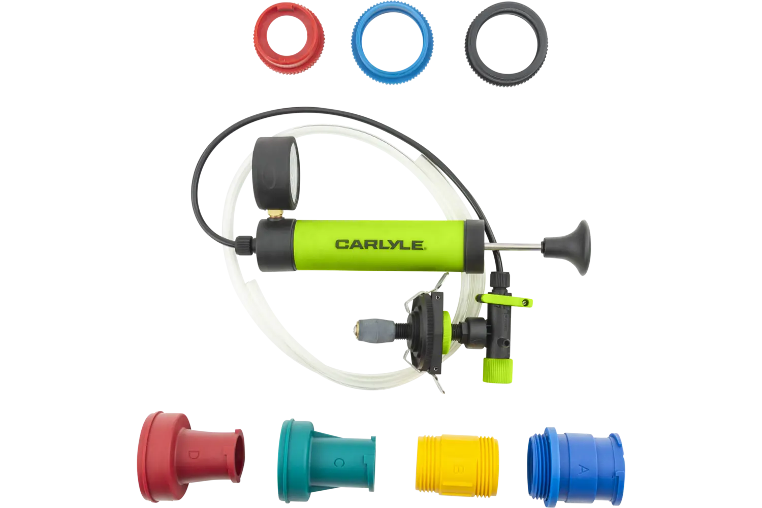 For the pro mechanics and DIY enthusiasts who demand nothing but the best in toughness and ruggedness, the Carlyle Cooling System & Cap Pressure Test Kit stands as the ultimate tool in your arsenal. This universal pressure tester, featuring an innovative inflatable bladder, seamlessly attaches to radiator or header tanks, accommodating both bayonet and threaded filler necks. Designed for versatility, it excels in automotive, commercial, heavy-duty, marine, and motorcycle applications. With a fluid drain tube that allows coolant to be returned to the reservoir or safely collected for recycling, this kit not only identifies cooling system pressure leaks with precision but also supports sustainable practices. Whether you're tackling a routine check or a complex diagnosis, this kit means you're equipped to handle it all with confidence.