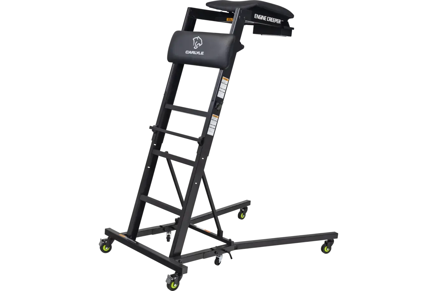 The Carlyle Engine Bay Creeper is built tough for the grind, featuring a knee pad that gives solid support when you need it most and a quick action latch for blazing-fast adjustments. Its pivoting frame and 1-inch wide lockable casters deliver smooth, controlled mobility that moves with you, not against you. The sliding bed, crafted from breathable perforated fabric, keeps comfort front and center, while the rapid, tool-free bed height adjustment lets you find the perfect position without ever needing to hop off. When folded, it tucks away clean and easy, making storage a breeze. Designed to handle the rough and rugged demands of the shop, this creeper stands up to heavy static and dynamic loads, positioning you just right to own the job.