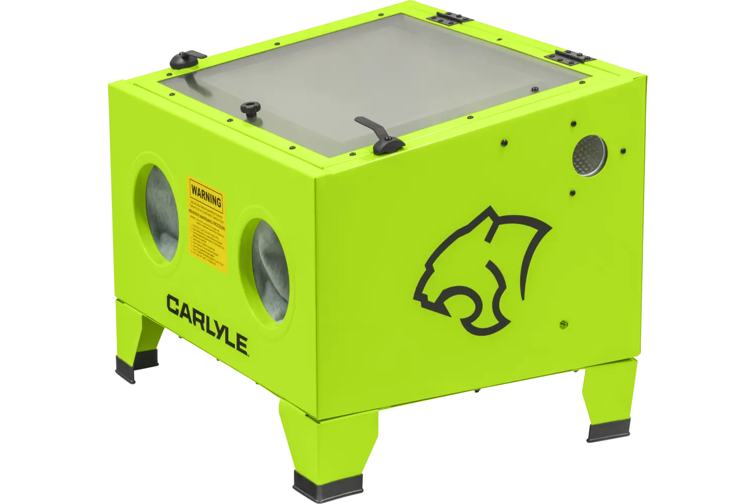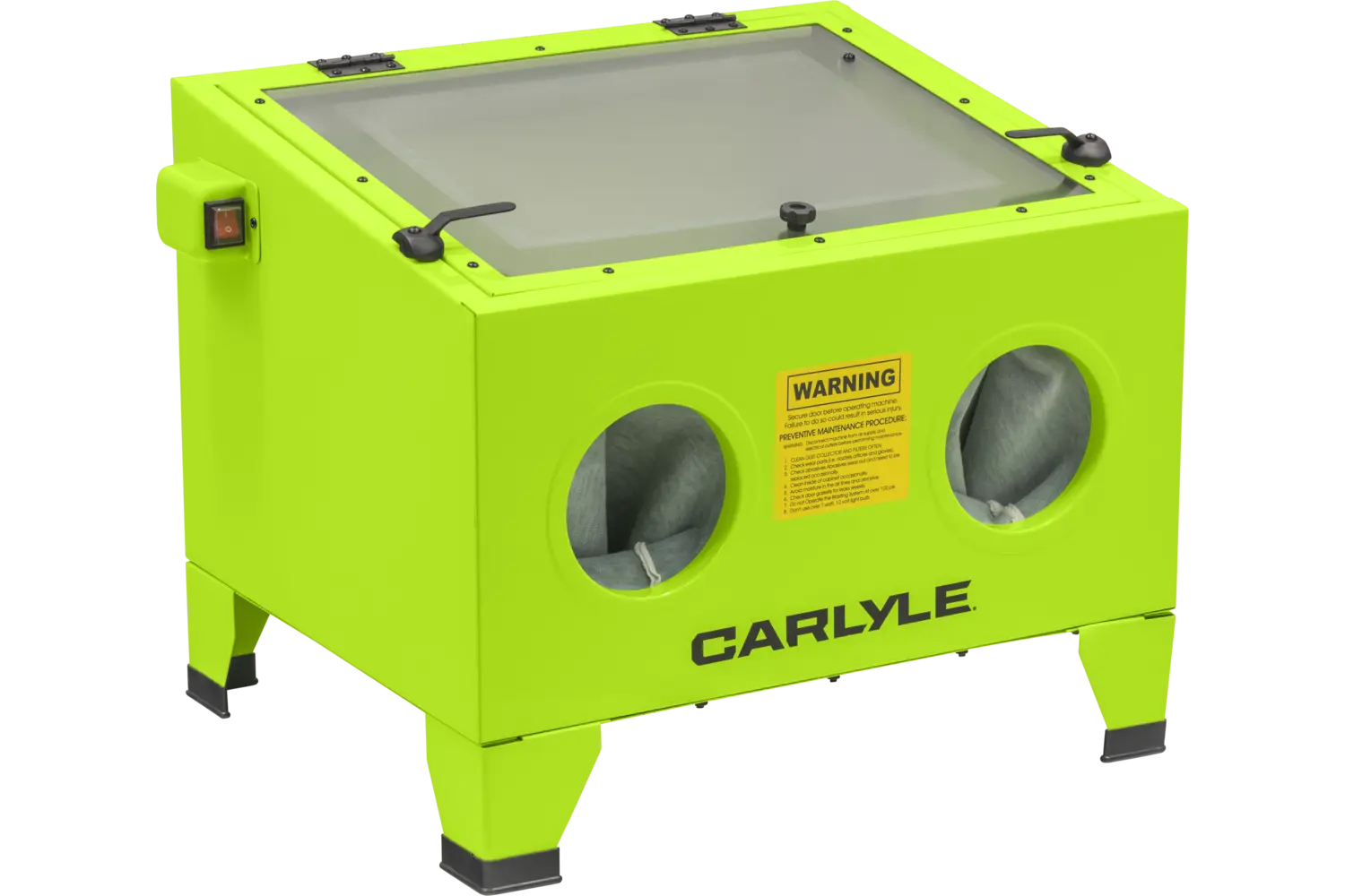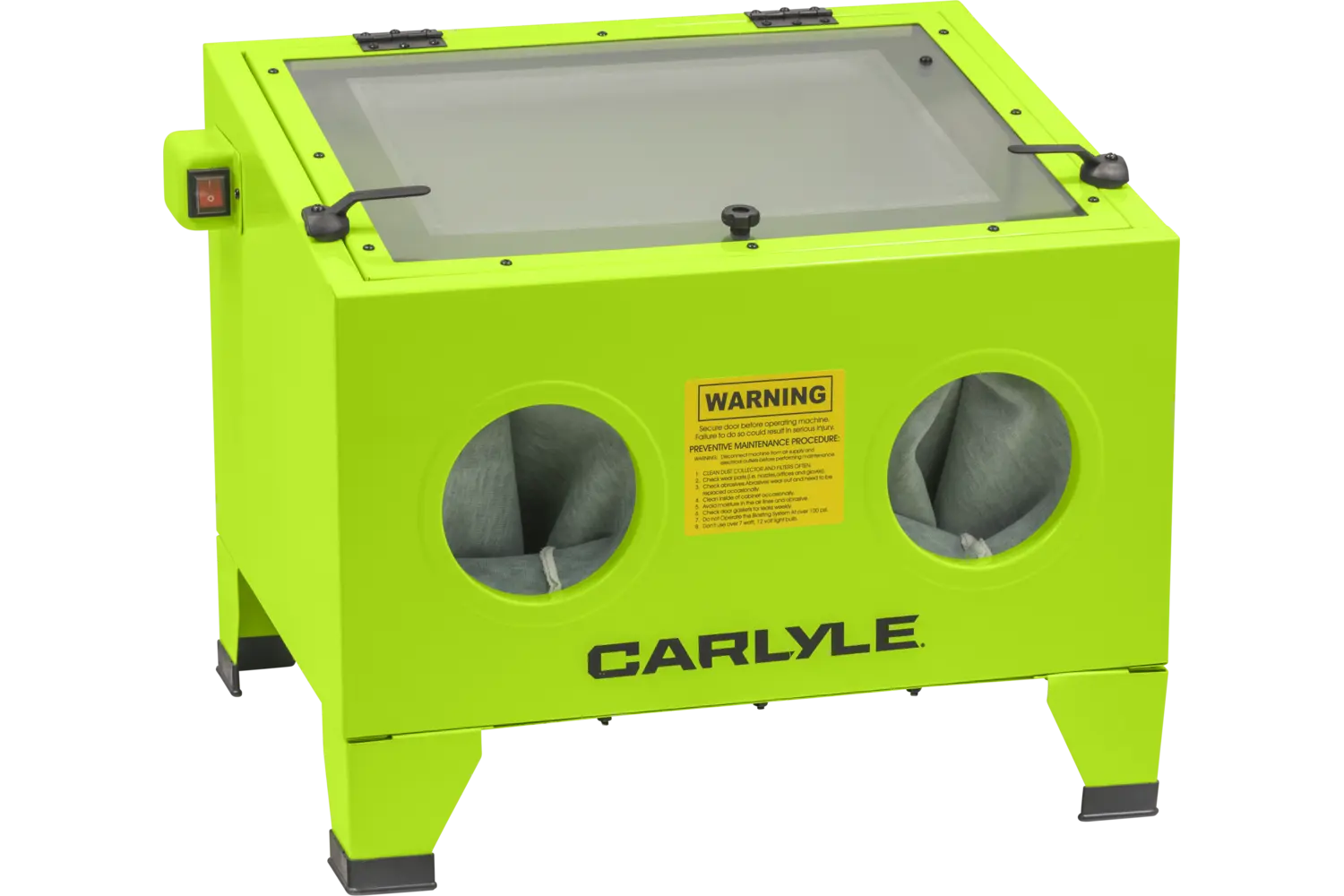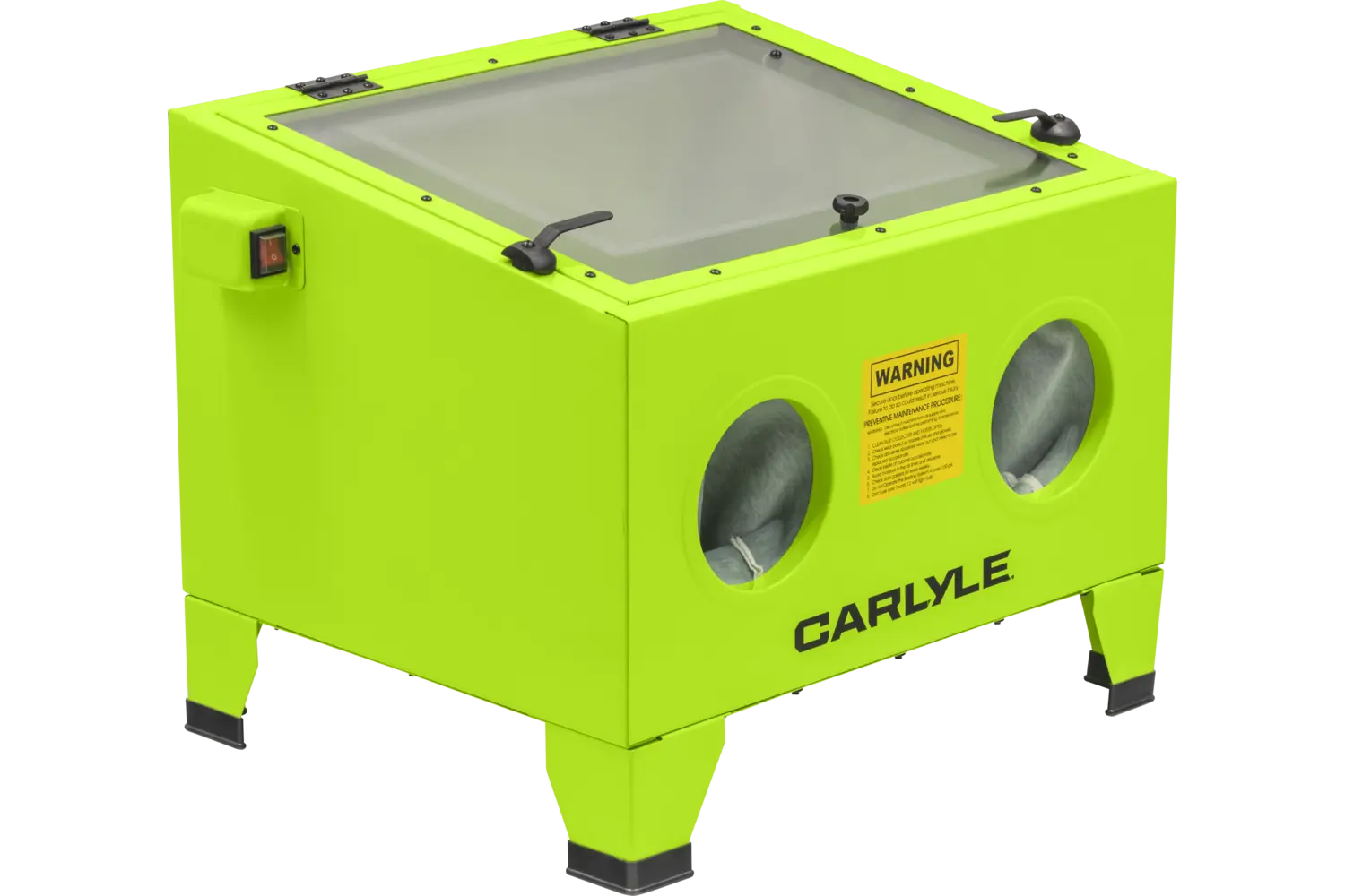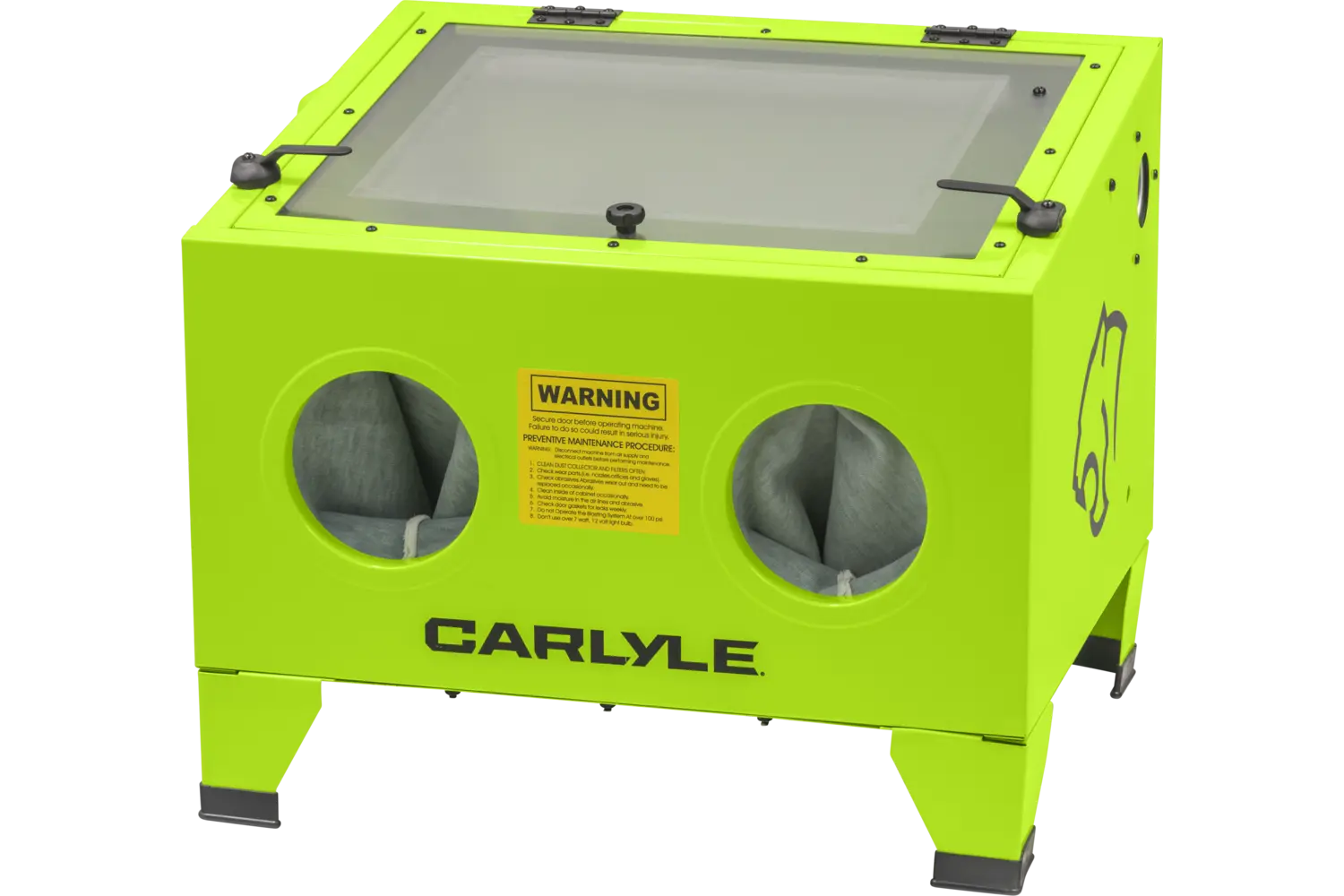 The Carlyle Sandblast Cabinet is built tough for pros who demand durability and performance in every job. Featuring a solid steel design, it prevents leaks and offers long-lasting durability, making it ideal for cleaning automotive parts and more. Equipped with 4 ceramic nozzles (4 mm, 5 mm, 6 mm, and 7 mm), it offers unmatched versatility for a variety of blasting tasks. The wide side door opening and large viewing window, paired with 10 protective window covers, provide maximum visibility and user protection while working. The removable mesh-design work surface tray makes cleanup a breeze and extends the life of the unit. Available in Mini Vertical or Bench Top styles, this sandblast cabinet is ready to handle whatever you throw at it.