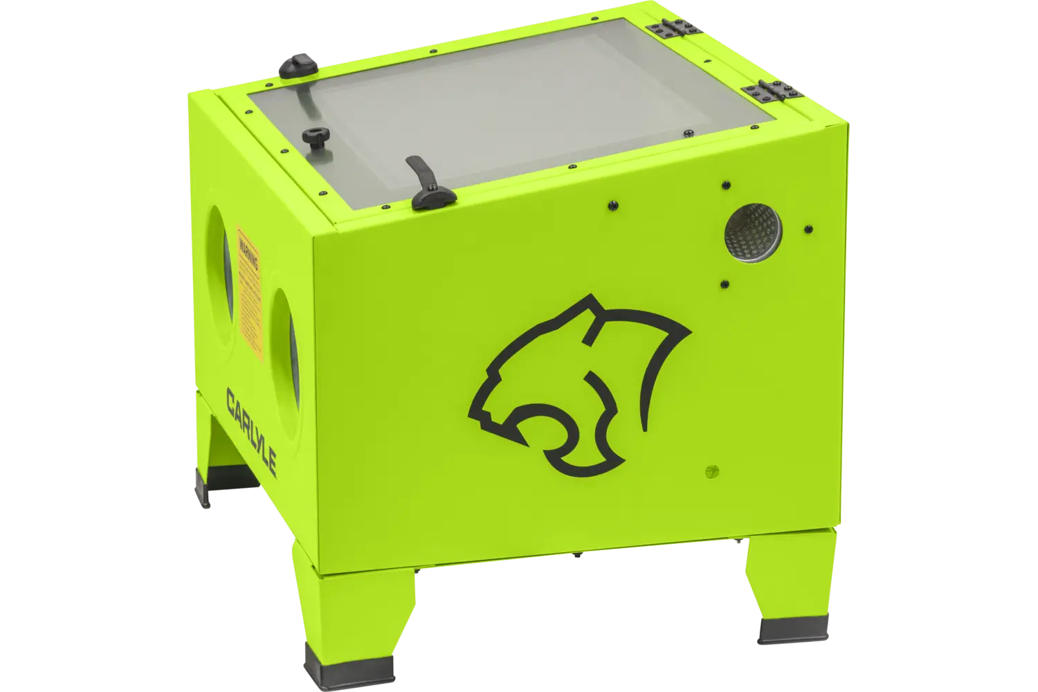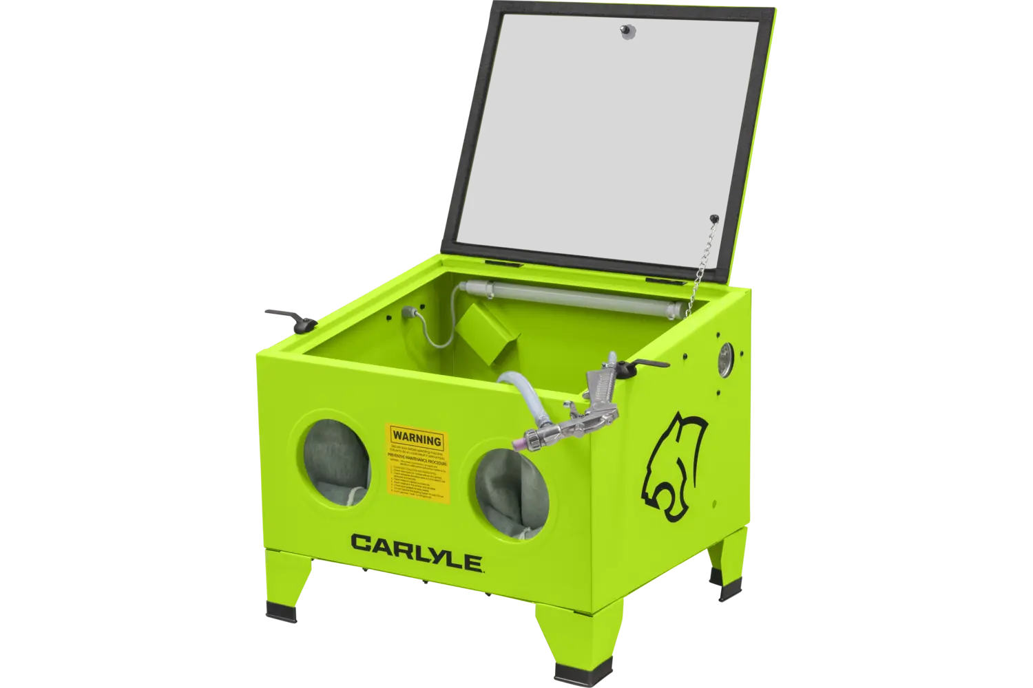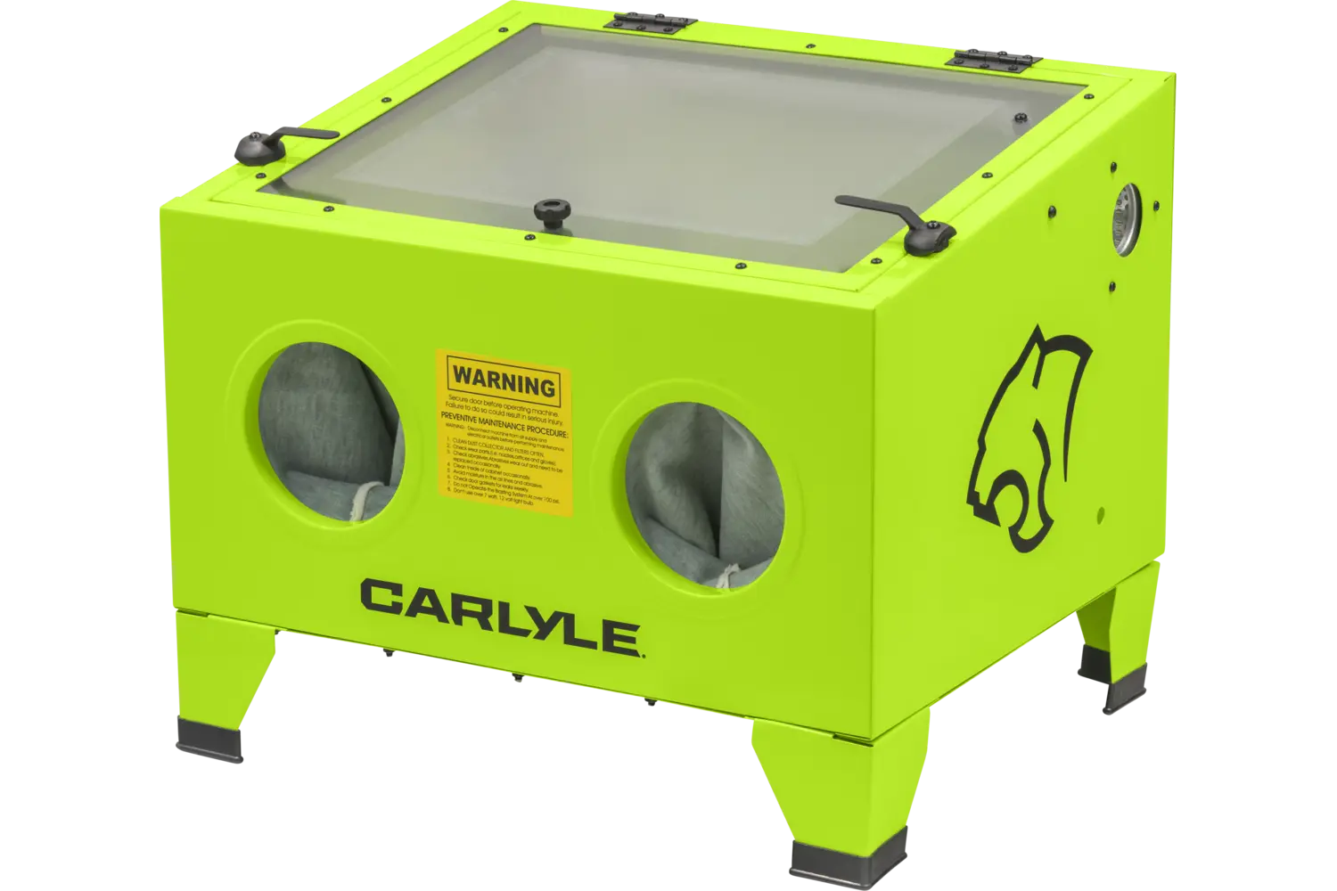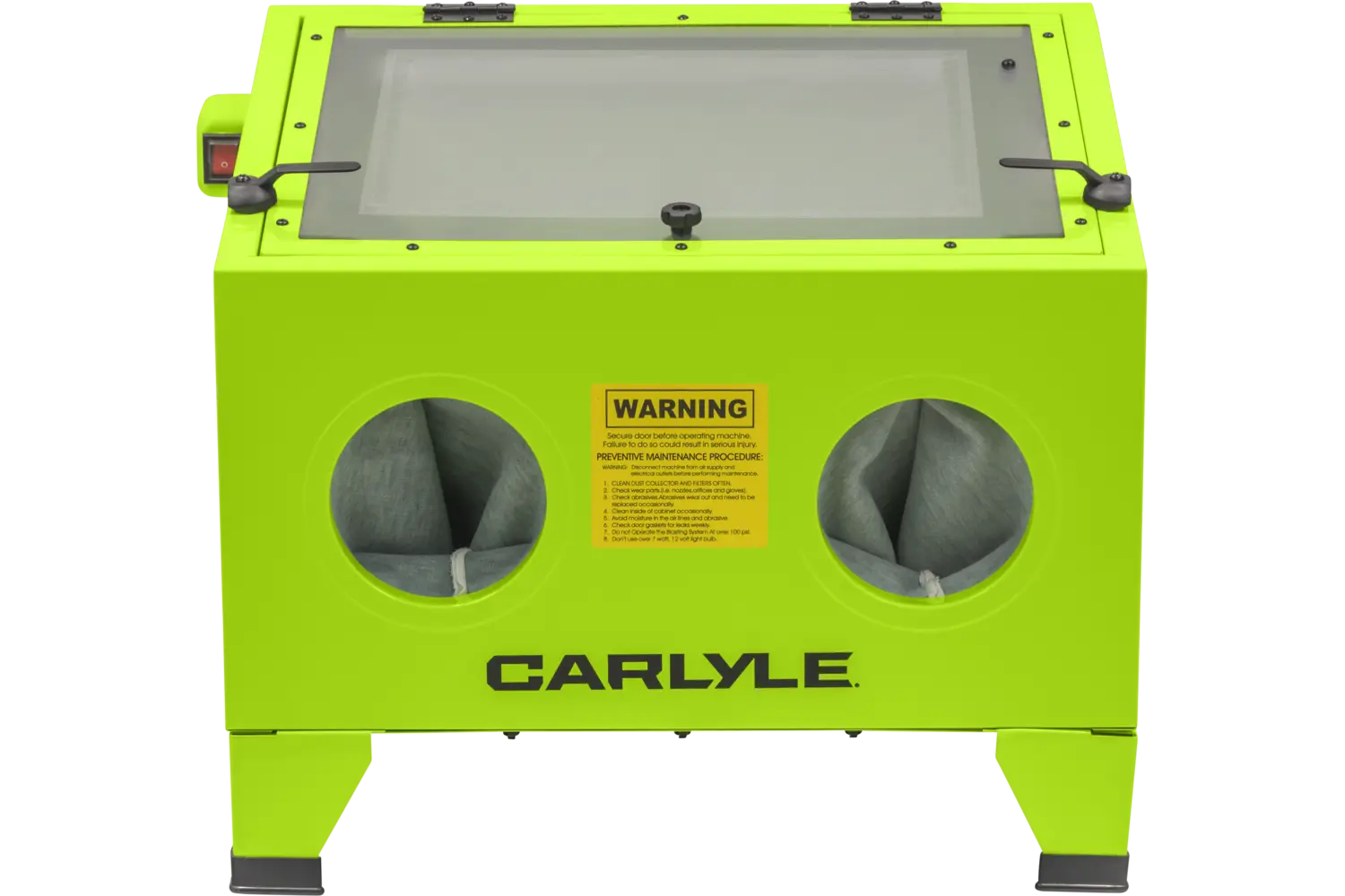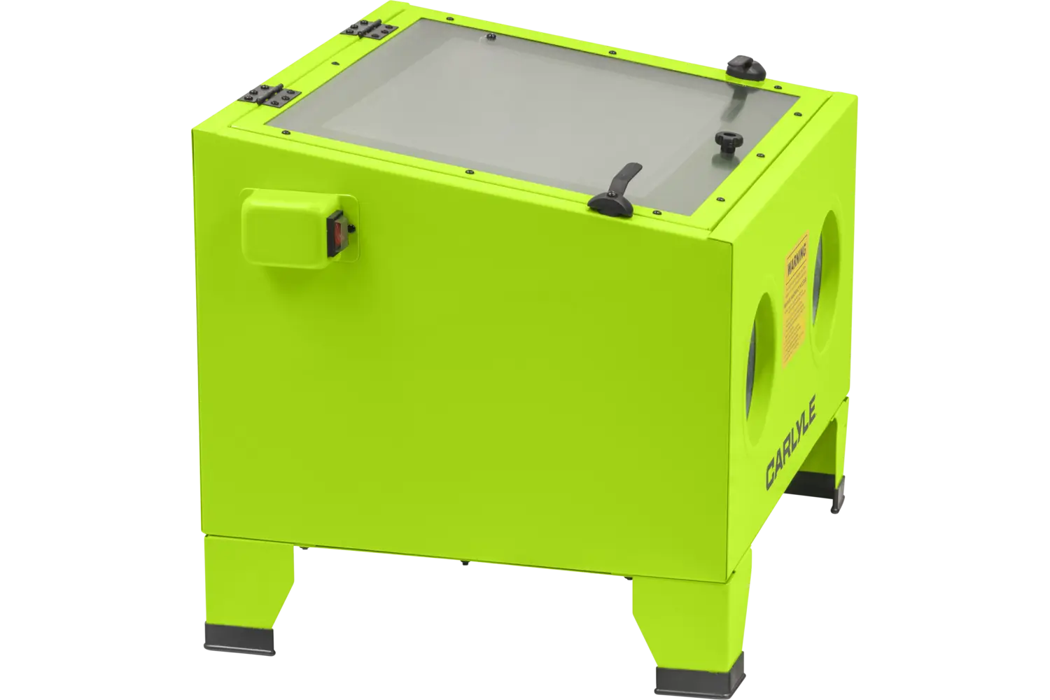 The Carlyle Sandblast Cabinet is built tough for pros who demand durability and performance in every job. Featuring a solid steel design, it prevents leaks and offers long-lasting durability, making it ideal for cleaning automotive parts and more. Equipped with 4 ceramic nozzles (4 mm, 5 mm, 6 mm, and 7 mm), it offers unmatched versatility for a variety of blasting tasks. The wide side door opening and large viewing window, paired with 10 protective window covers, provide maximum visibility and user protection while working. The removable mesh-design work surface tray makes cleanup a breeze and extends the life of the unit. Available in Mini Vertical or Bench Top styles, this sandblast cabinet is ready to handle whatever you throw at it.