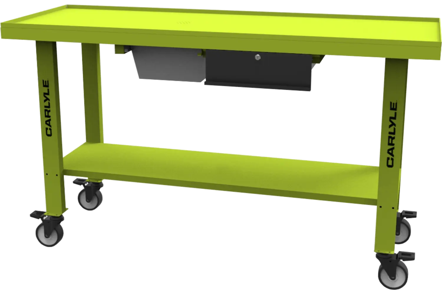The Carlyle Workbench is built for those who demand toughness and versatility in their workspace. Designed to handle the rigors of daily use, it’s available in a range of configurations to suit your needs: the 72” Tear Down Table with a single drawer and drain for quick cleanup, the 60” Workbench with an open bottom for flexible storage, the 79” Workbench with a single drawer for streamlined organization, or the 79” Workbench with a 3-drawer split top for maximum functionality. Whether you’re tearing down engines, organizing tools, or tackling your next big project, this workbench delivers the rugged performance and durability you need to get the job done.