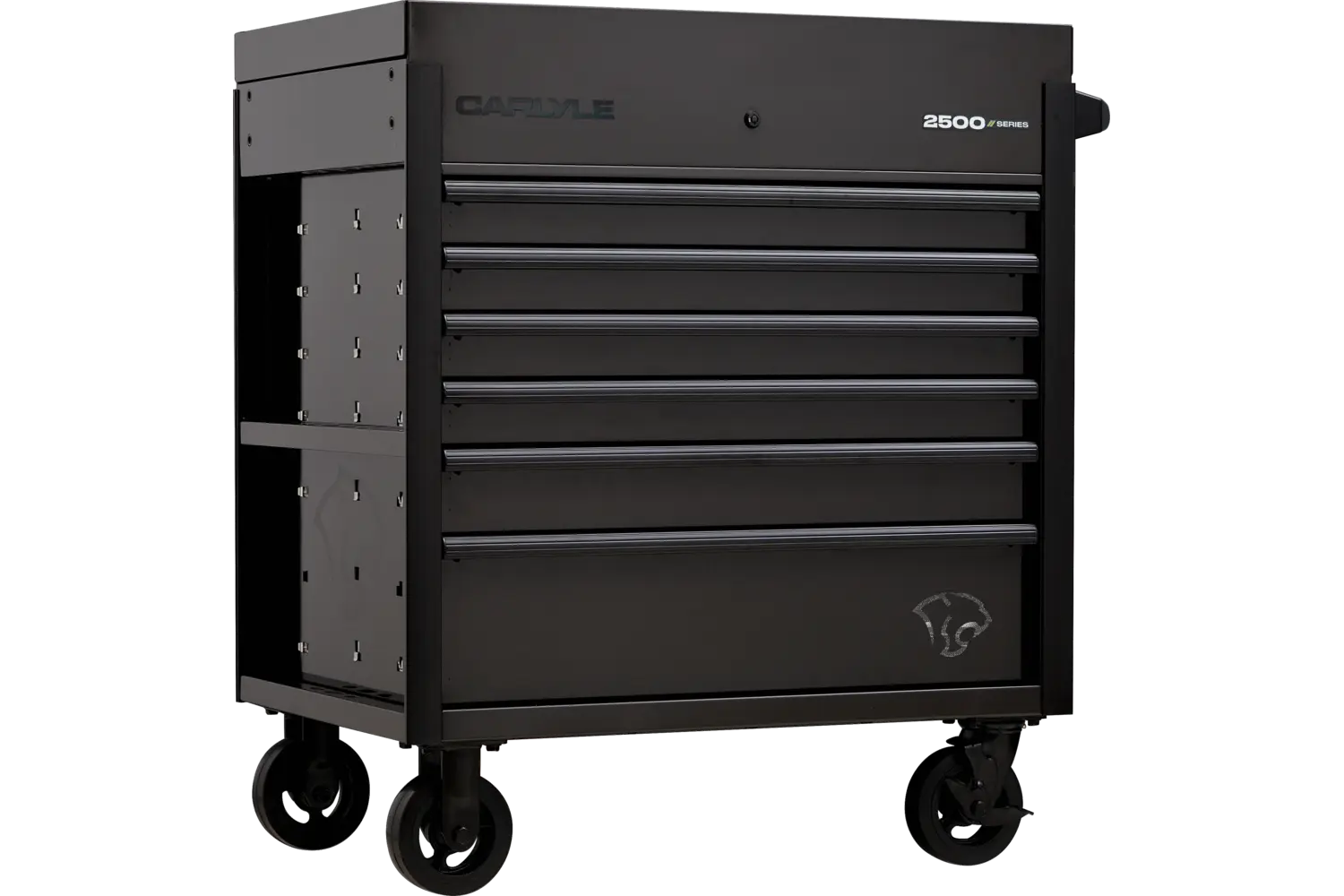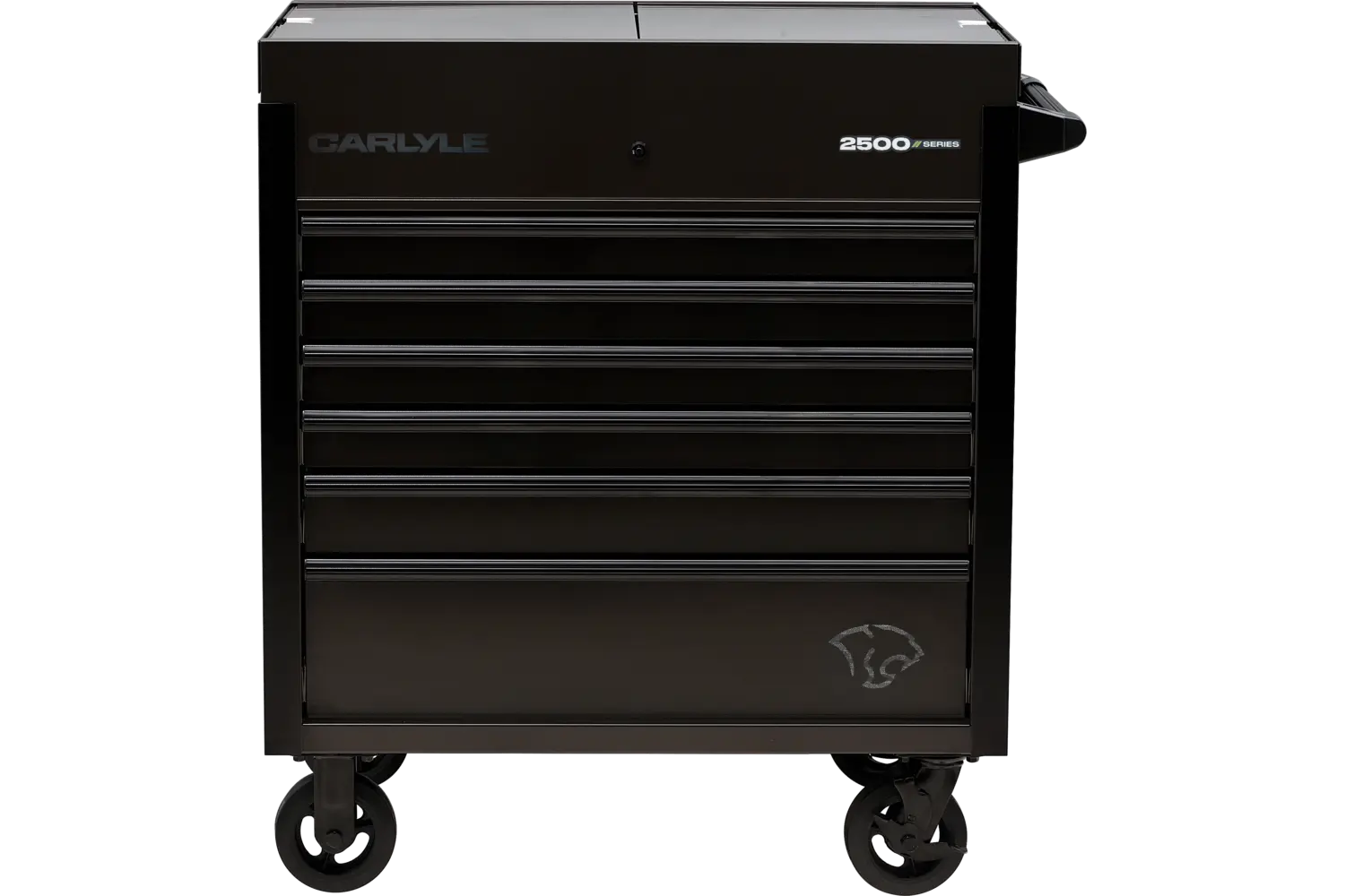 The Carlyle 2500 Series Service Cart is built for those who demand toughness and versatility in their workspace. This 36-inch, 6-drawer slide-top service cart is designed to handle the grind of daily use, offering rugged durability and smart functionality. The slide-top design provides quick access to your tools while doubling as a sturdy work surface, and the six spacious drawers keep your gear organized and ready to go. Available in bold, eye-catching finishes like Gritty Gray, Midnight Oil, or Venom Green, this cart combines rugged performance with a sleek, professional look that fits right into any shop or garage.