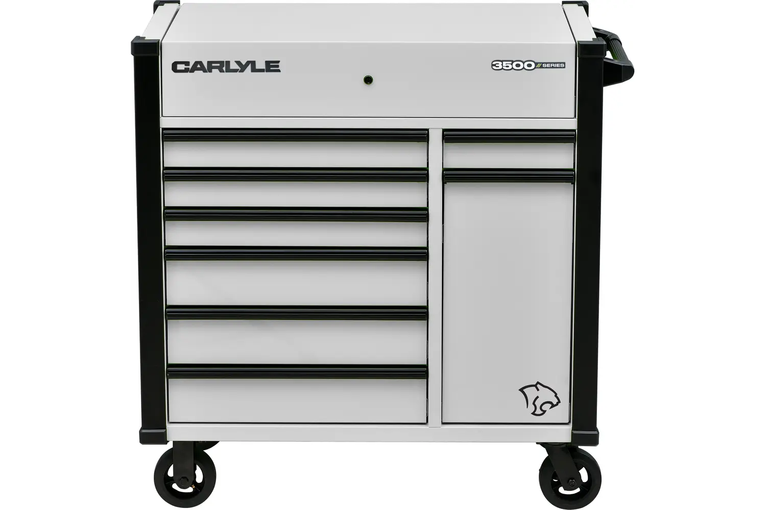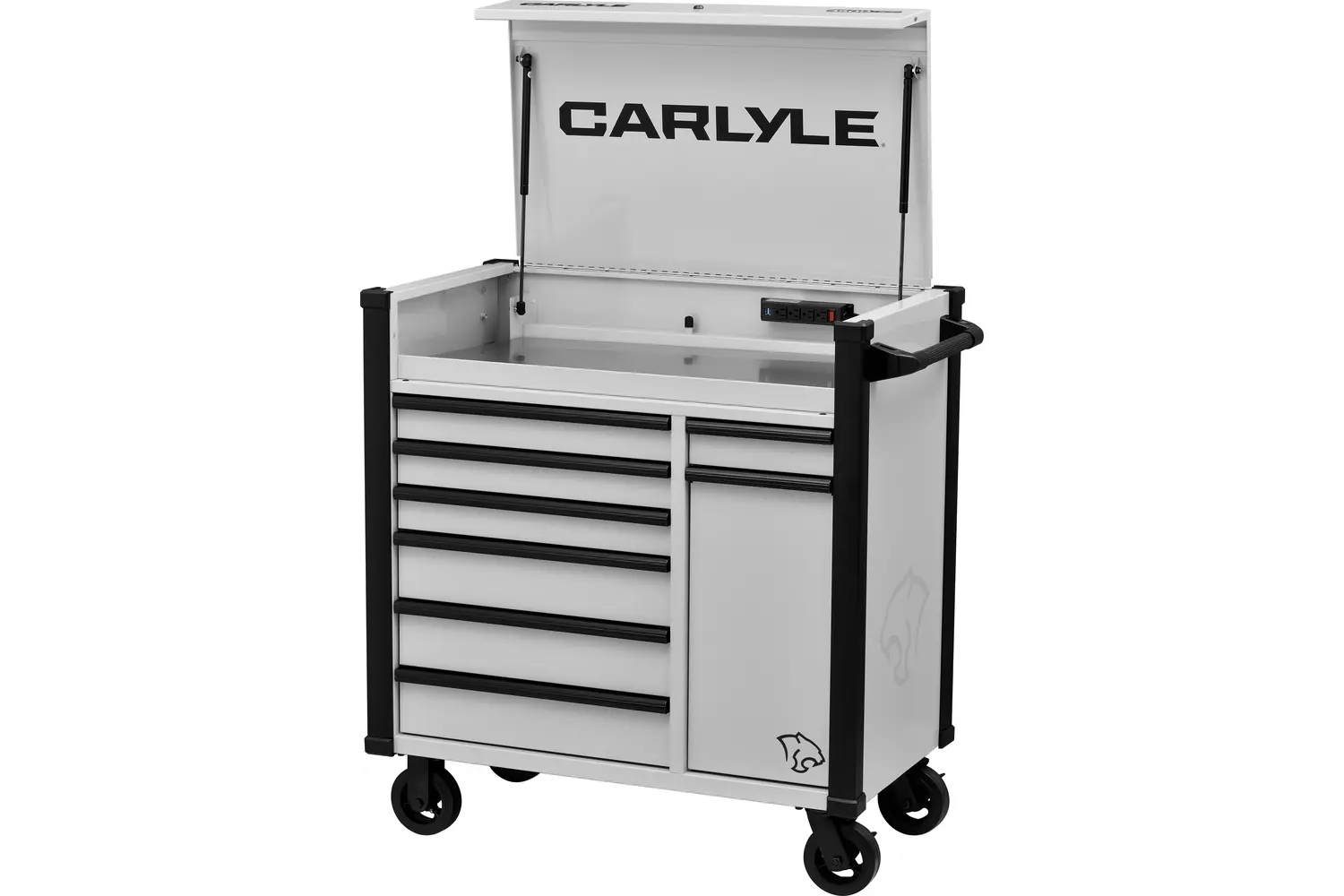 The Carlyle 3500 Series 43” 8-Drawer Power Tool Service Cart is built for those who demand toughness and functionality in their workspace. Designed to handle the daily grind, this cart offers eight spacious drawers to keep your tools organized and within reach, while its integrated power strip lets you charge and power your tools on the go. Built with durability in mind, it’s ready to take on the heaviest workloads without breaking a sweat. Available in bold, standout finishes—Gritty Gray, Midnight Oil, or Venom Green—it’s a rugged, reliable workhorse that looks as sharp as it performs.