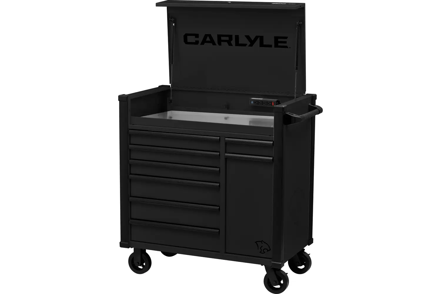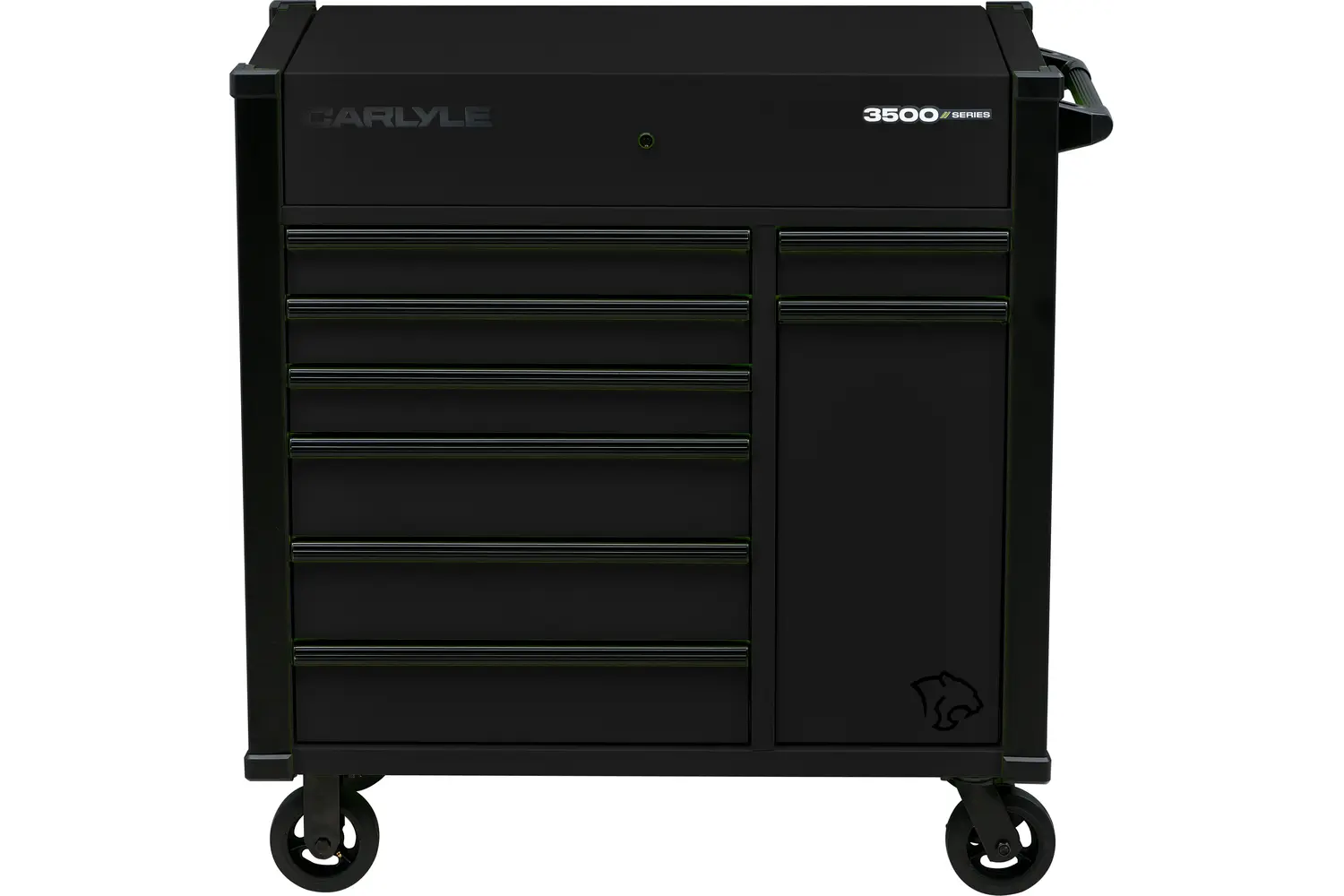 The Carlyle 3500 Series 43” 8-Drawer Power Tool Service Cart is built for those who demand toughness and functionality in their workspace. Designed to handle the daily grind, this cart offers eight spacious drawers to keep your tools organized and within reach, while its integrated power strip lets you charge and power your tools on the go. Built with durability in mind, it’s ready to take on the heaviest workloads without breaking a sweat. Available in bold, standout finishes—Gritty Gray, Midnight Oil, or Venom Green—it’s a rugged, reliable workhorse that looks as sharp as it performs.