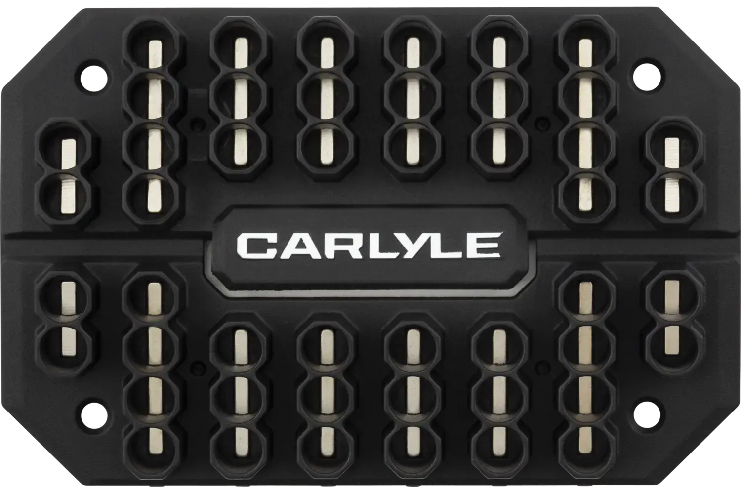The Carlyle Magnetic Bit Holder is built tough to keep your bits organized and within easy reach, designed with durable construction that stands up to heavy use. Its low-profile design fits neatly in tight spaces, while mounting holes allow for quick attachment to tool carts, lifts, or any ferrous surface. Combining rugged reliability with efficient storage, this bit holder keeps your essentials ready for action and your workspace clutter-free.